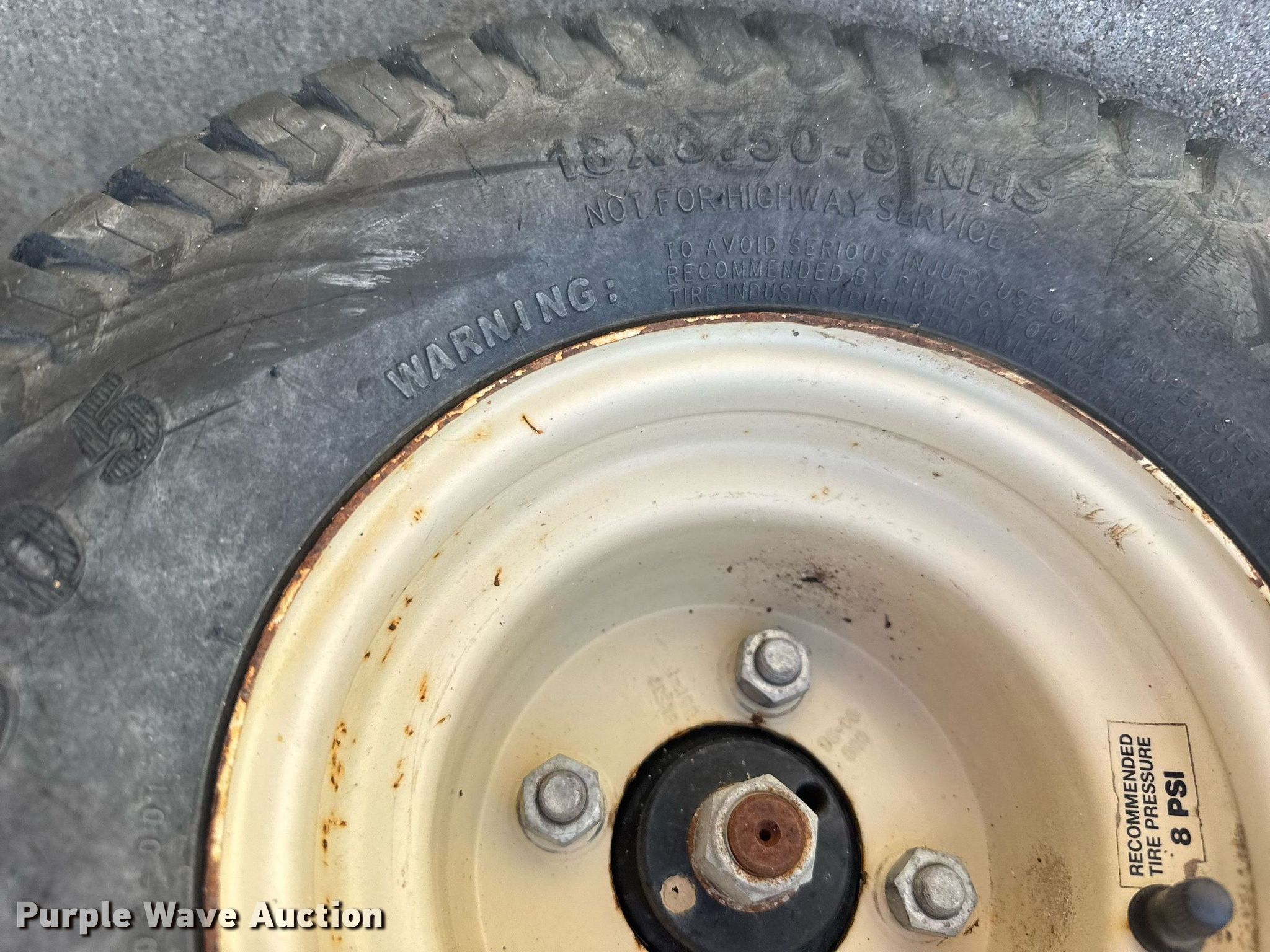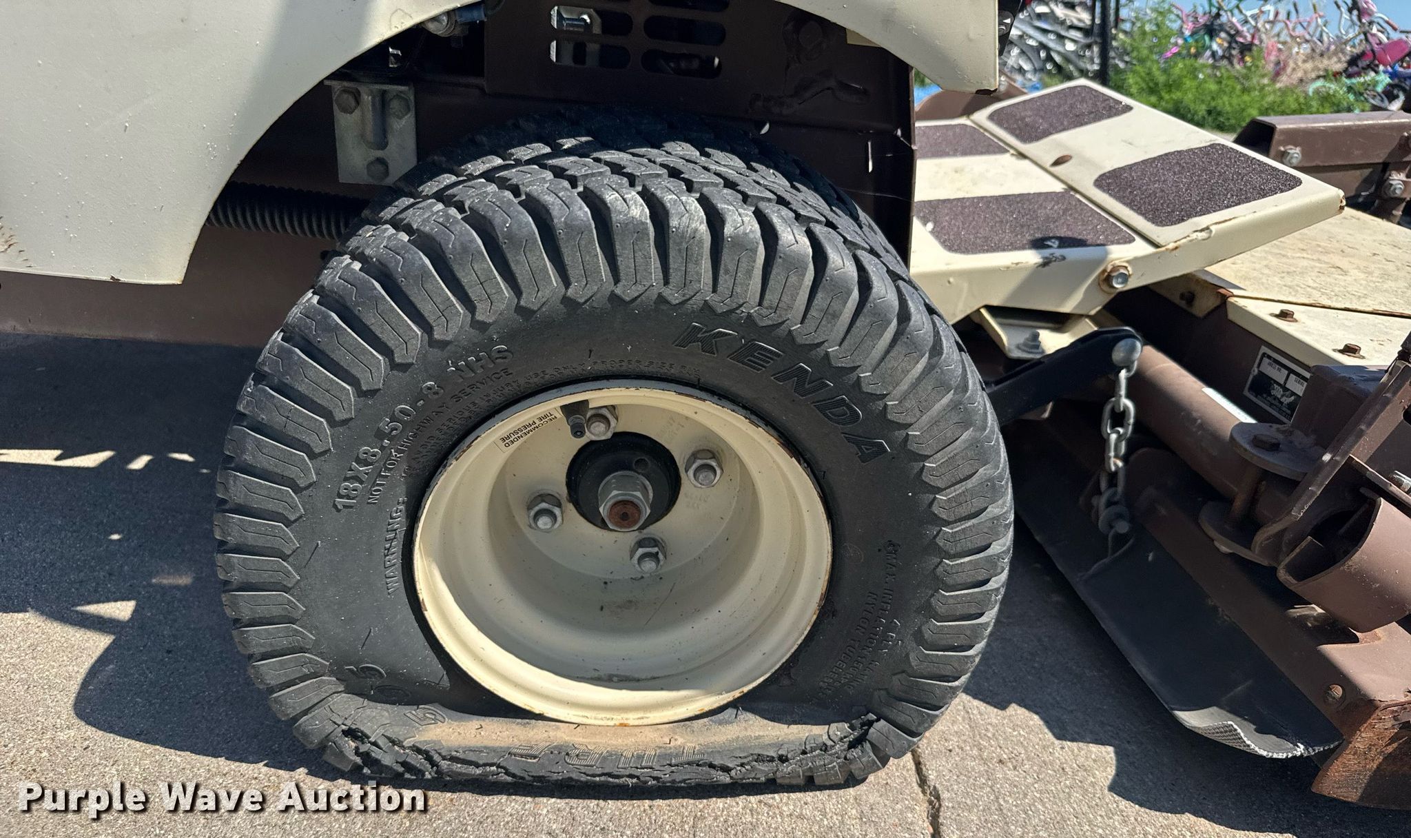 1996 Grasshopper 614 ZTR lawn mower. Cutting width: 42", Serial: 466697. Engine Cylinders: 2, Fuel type: Gas. Transmission Hydrostatic. Tires Front: Unknown, Rear: 18x5.50-8. Notes Flat tires, Non-operational unit. Norton, KS 67654