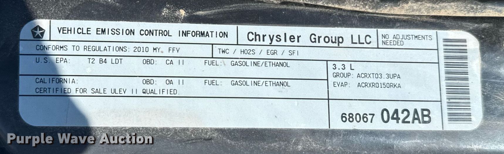2010 Dodge Grand Caravan van. Miles: 205,970 on odometer, VIN: 2D4RN4DE6AR396550. Engine Displacement: 3.3L V6 OHV, Cylinders: 6, Fuel type: Gas. Transmission Automatic. Interior AC, Heat, Power windows, Power locks, Cruise control. Tires Size: 215/75R16. Notes Dash warning indicator: Check engine, TPMS. Kansas title. Seller is a government entity who will be assigning and distributing the title. Please contact the seller for distribution questions. Title distribution may be delayed up to 14 days from verification of funds. Norton, KS 67654
