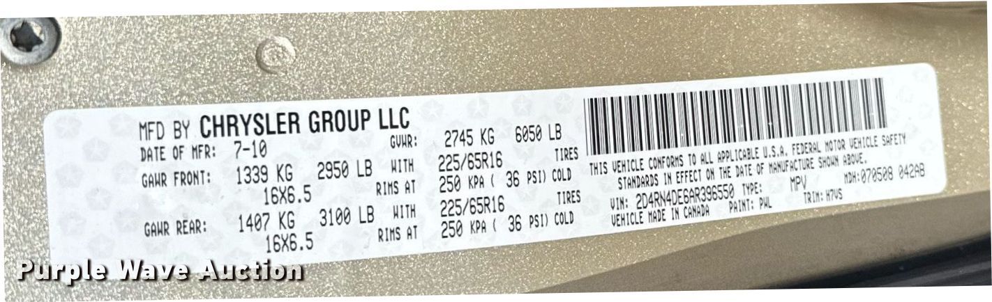 • VIN: 2D4RN4DE6AR396550