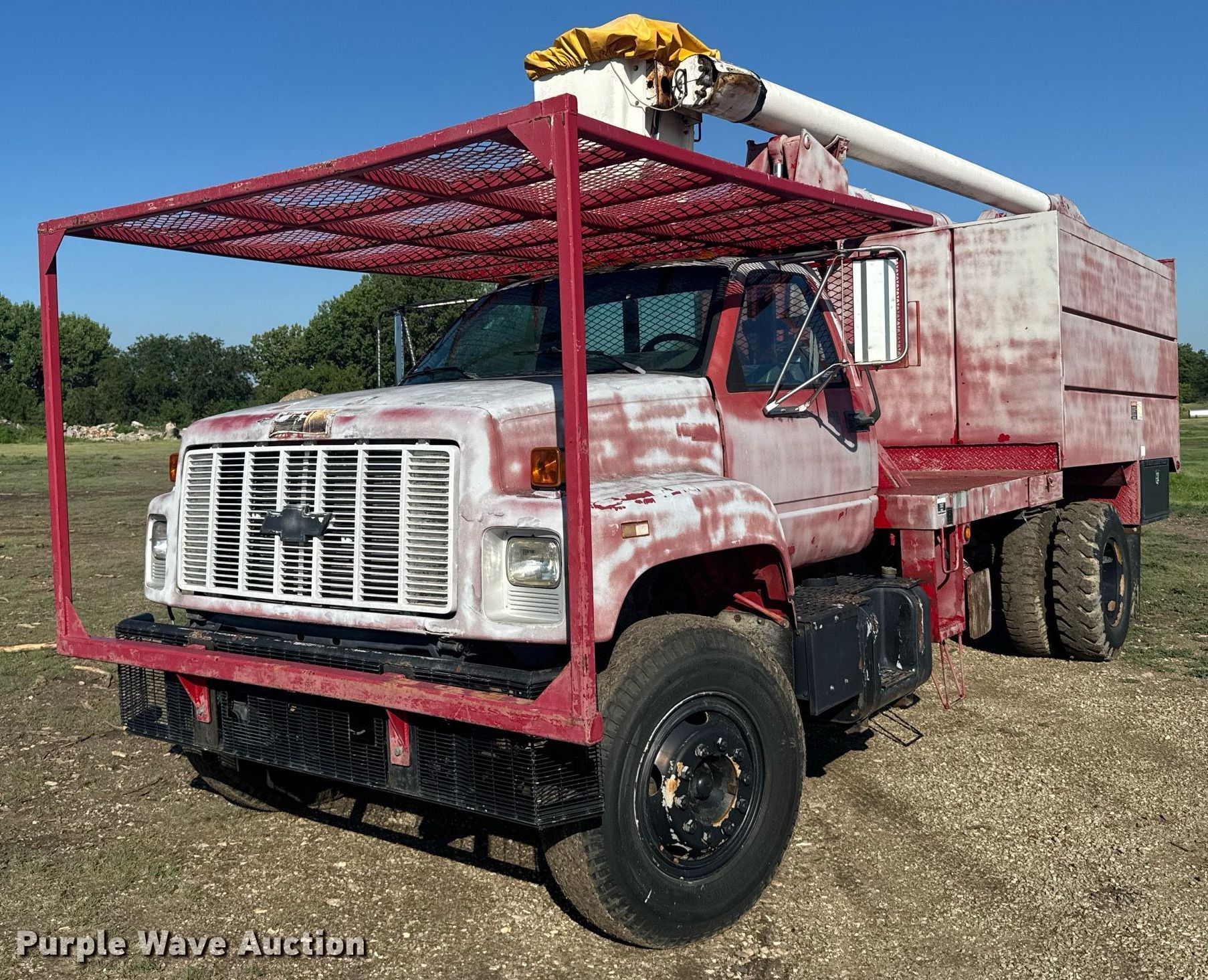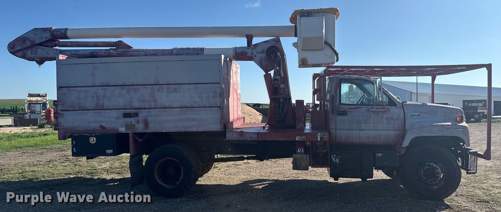 Purple Wave is selling a used Bucket Truck in Kansas. This item is a 1992 Chevrolet Kodiak C6500 forestry bucket truck with the following: Miles: 92,898 on odometer, Hours: 4,592 on meter, VIN: 1GBL7H1J5NJ107517
