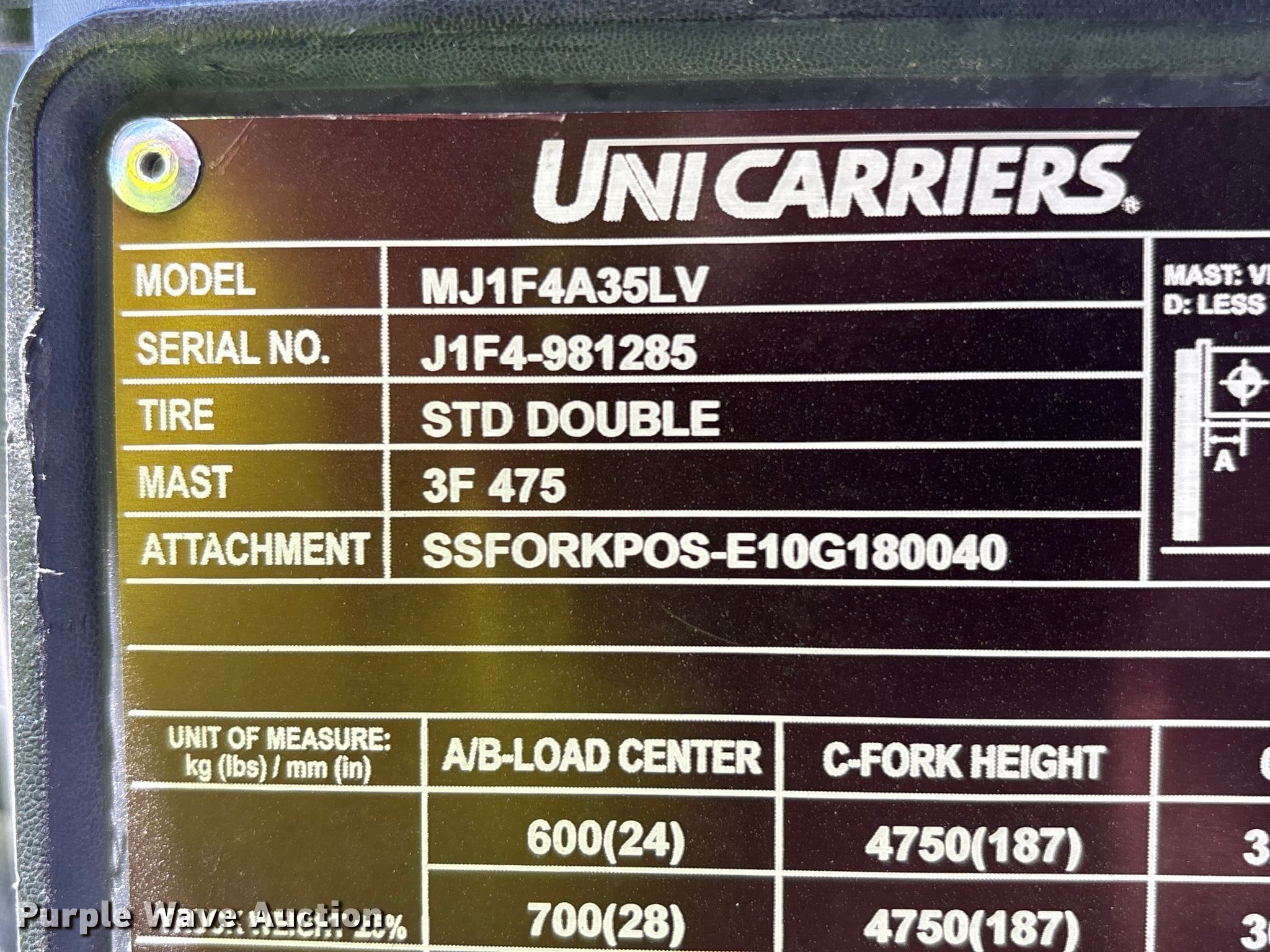 Purple Wave is selling a used Cushion Tire or Pneumatic Forklift in Arizona. This item is a 2015 Nissan PF80YLP forklift with the following: Hours: 3,312 on meter, Serial: J1F4-981285, Unit #: SFS2278