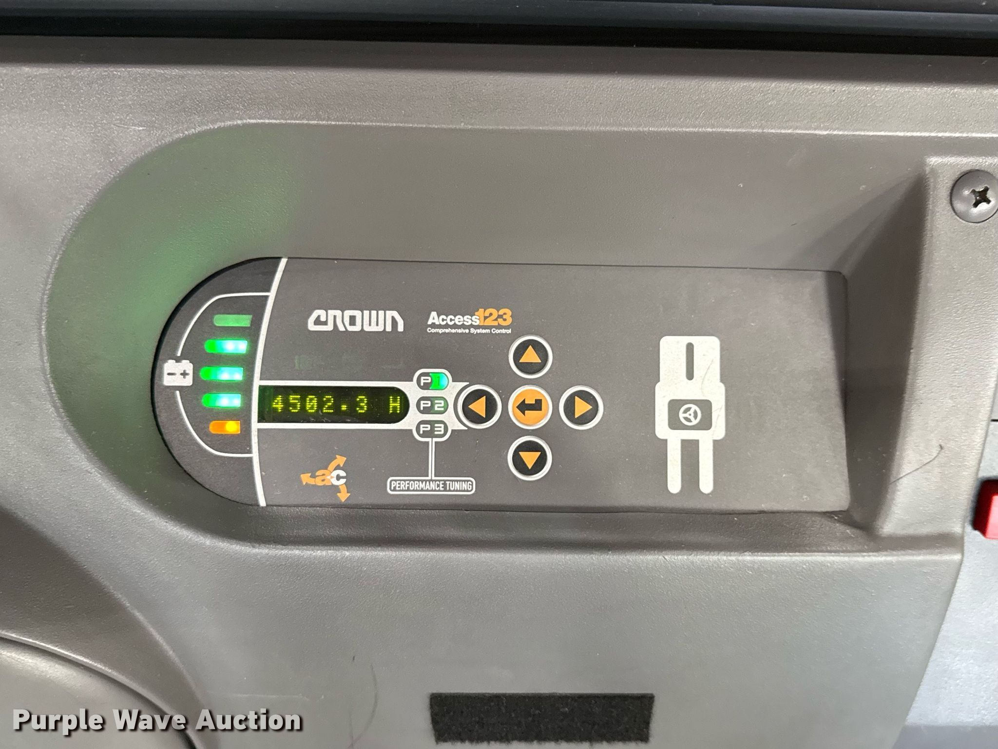 Purple Wave is selling a used Warehouse Forklift in Texas. This item is a 2017 Crown SP3520-30 order picker with the following: Hours: 4,502 on meter, Miles or hours may vary, unit still in use, Serial: 1A515466, Unit #: SFS2071