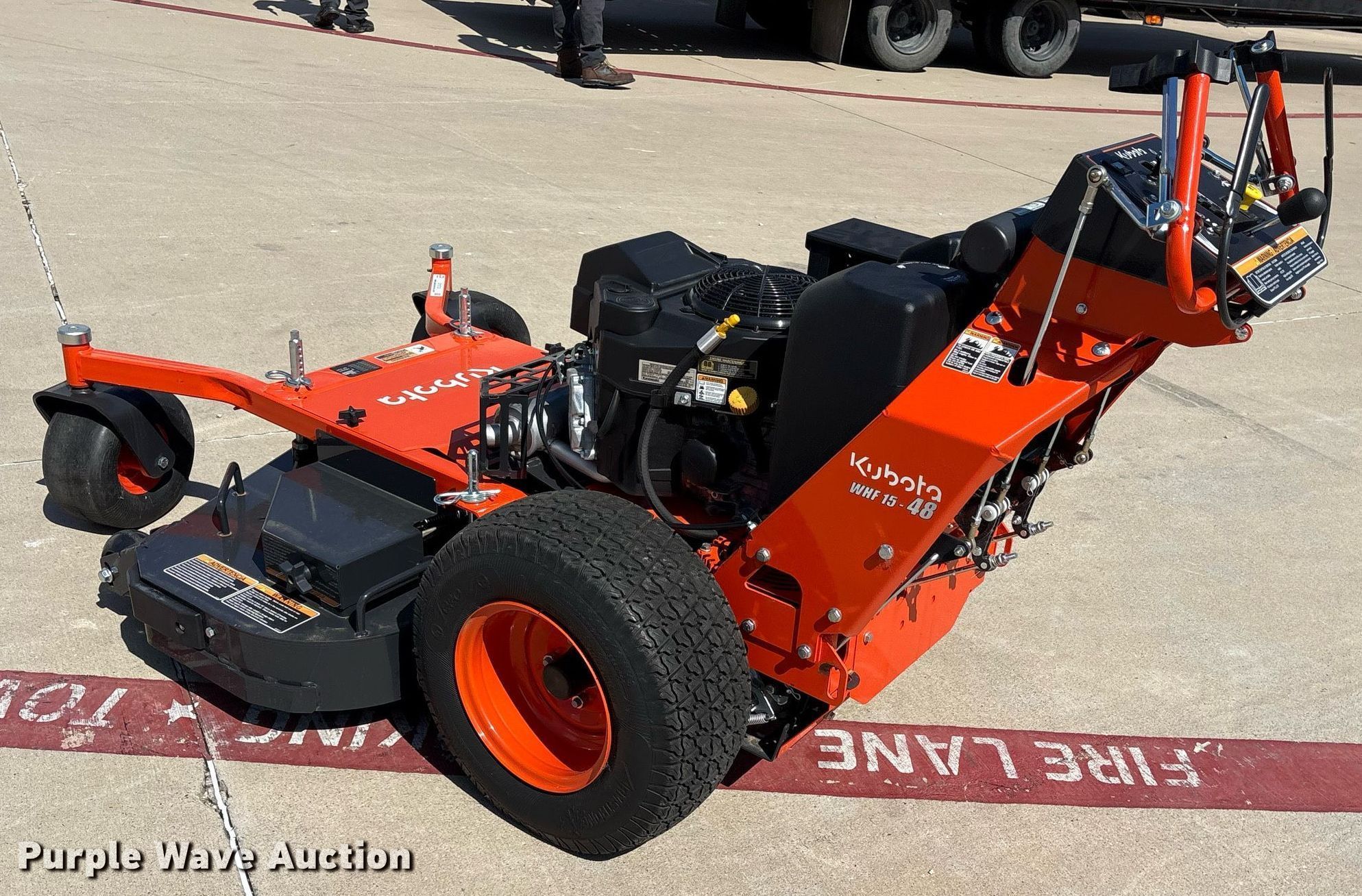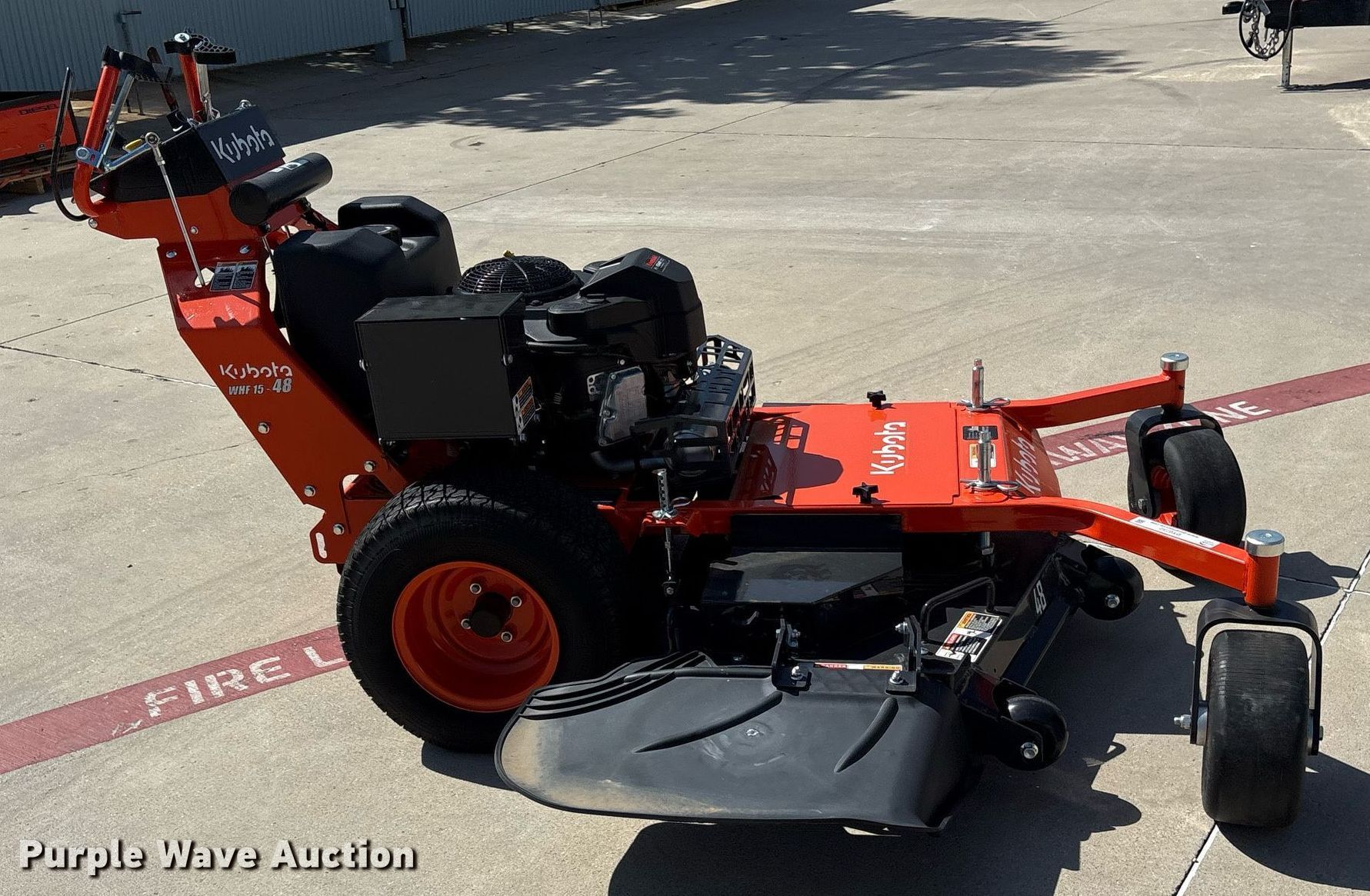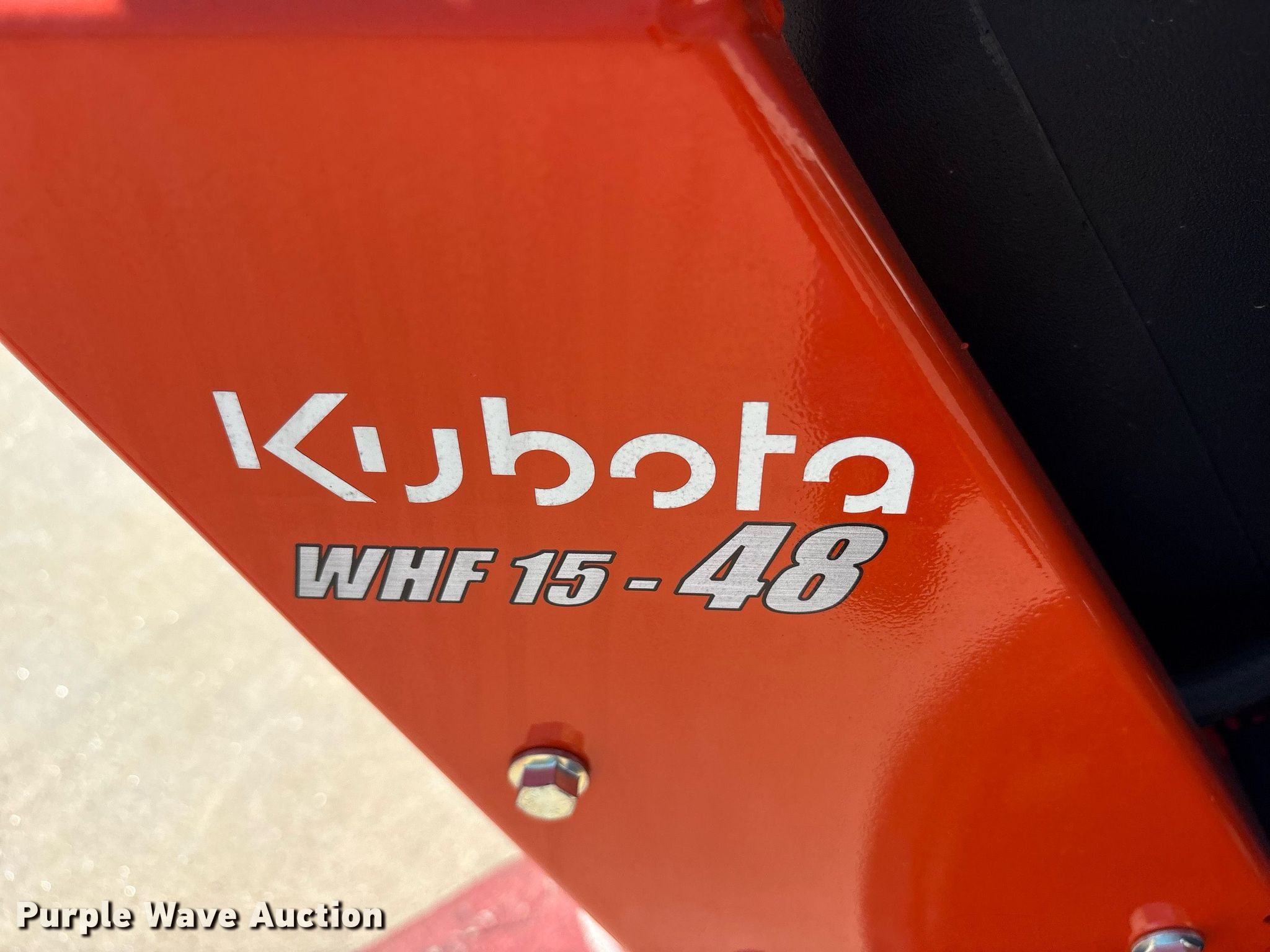 Purple Wave is selling a used Lawn Mower in Texas. This item is a 2023 Kubota WHF15-48-2 lawn mower with the following: Hours: 3 on meter, Cutting width: 48", Serial: 14756