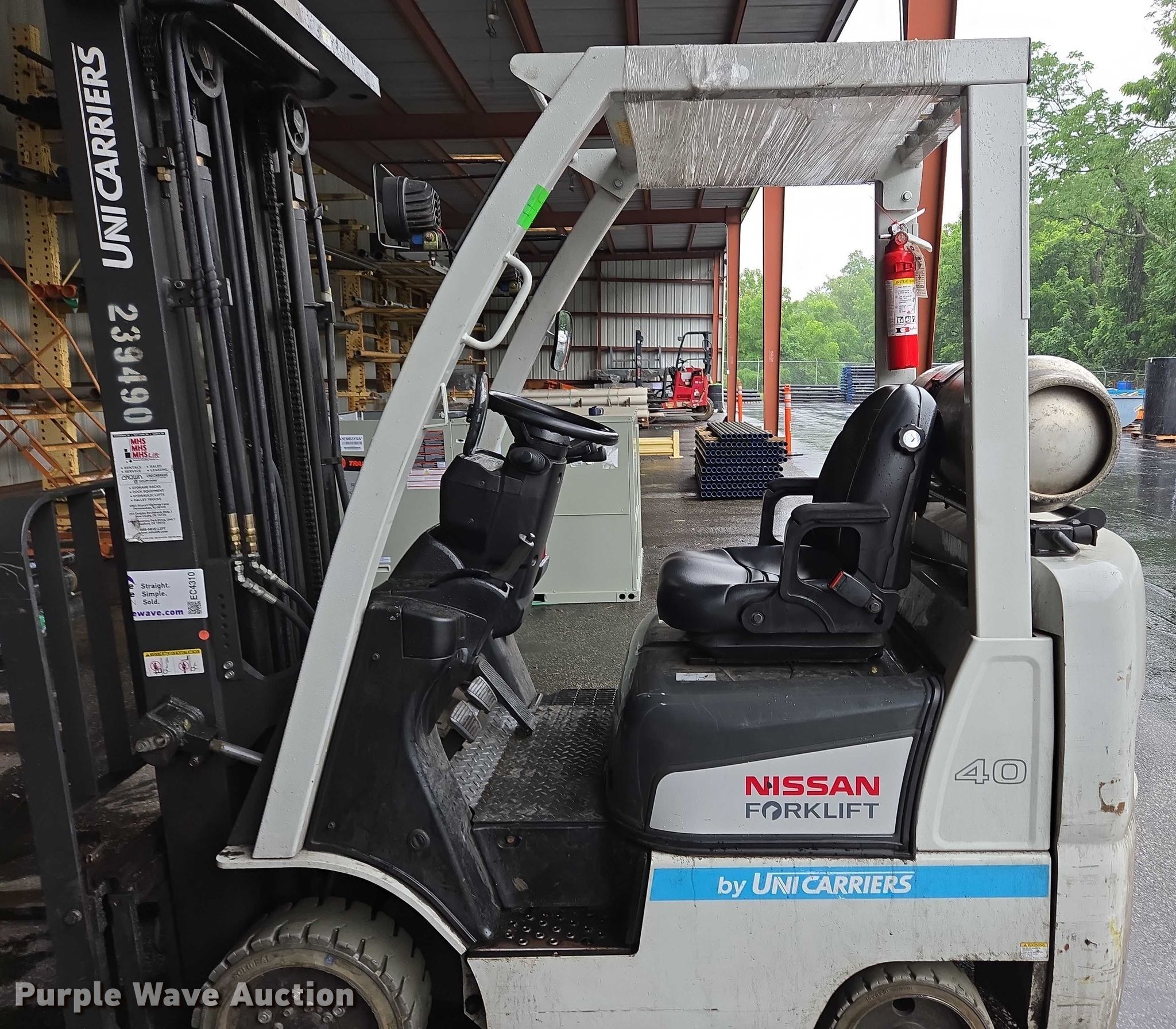 Purple Wave is selling a used Warehouse Forklift in Pennsylvania. This item is a 2015 Nissan CF50LP forklift with the following: Hours: 1,216 on meter, Miles or hours may vary, unit still in use, Serial: CP1F1-9N4963, Unit #: SFS2293