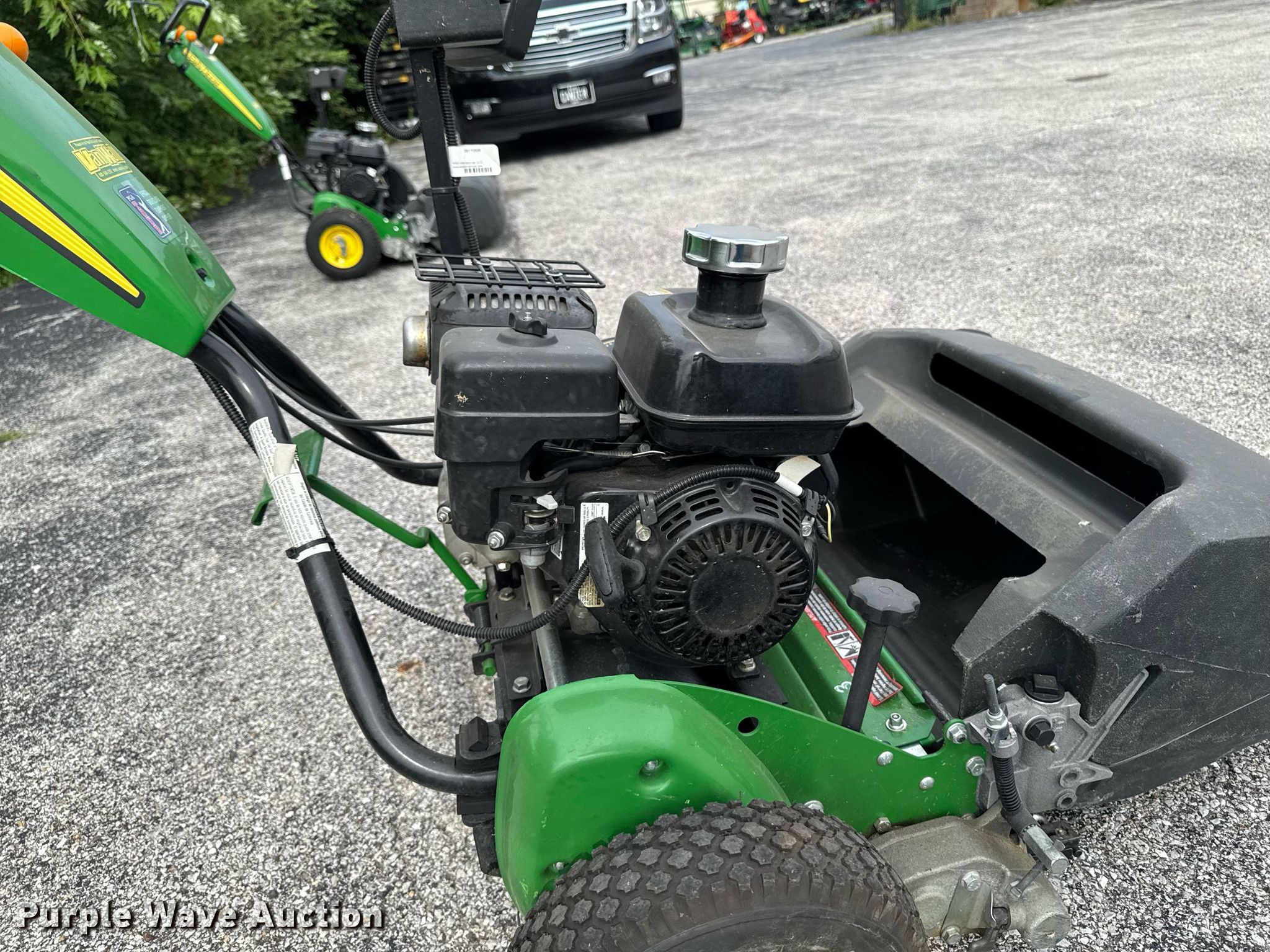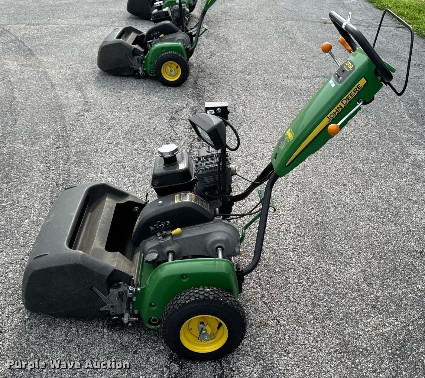 2020 John Deere 220 SL greens mower. Cutting width: 22", Serial: 1M0220SATLM100006. Engine Honda, Displacement: 119 cc, Cylinders: 1, Fuel type: Gas. Features Self- propelled, Grass bagger. Tires Size: 4.10-6, Brand: Carlstar. Van Wall Golf and Turf. Rock Island, IL 61201