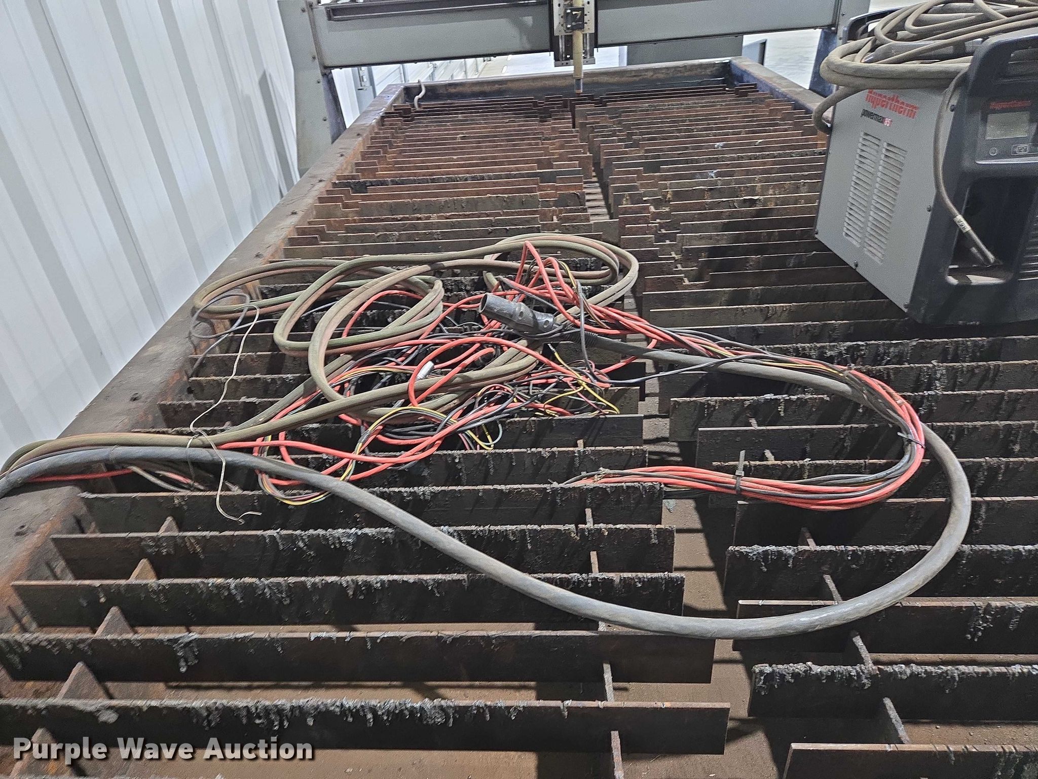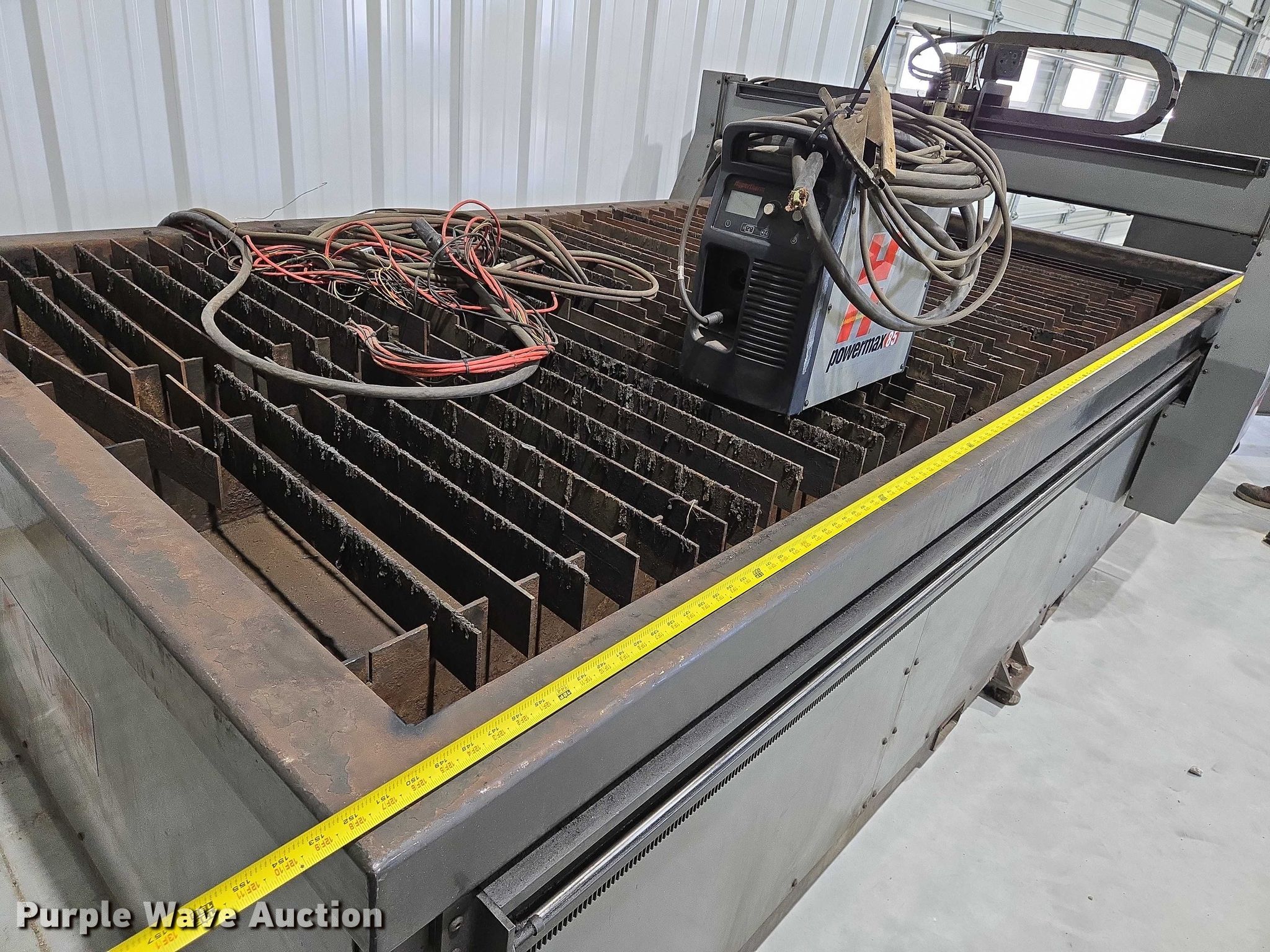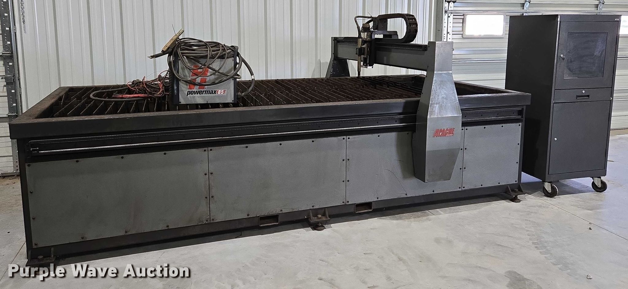 Purple Wave is selling a used Cutting Systems in Kansas. This item is a Apache Industries plasma cutting system with the following: Control station, Monitor, Keyboard, Hypertherm Powermax 85 plasma cutter, Serial: 85026811, Volts: 90/143, Operators manual, Cutting table, 12' 8" L x 72" W