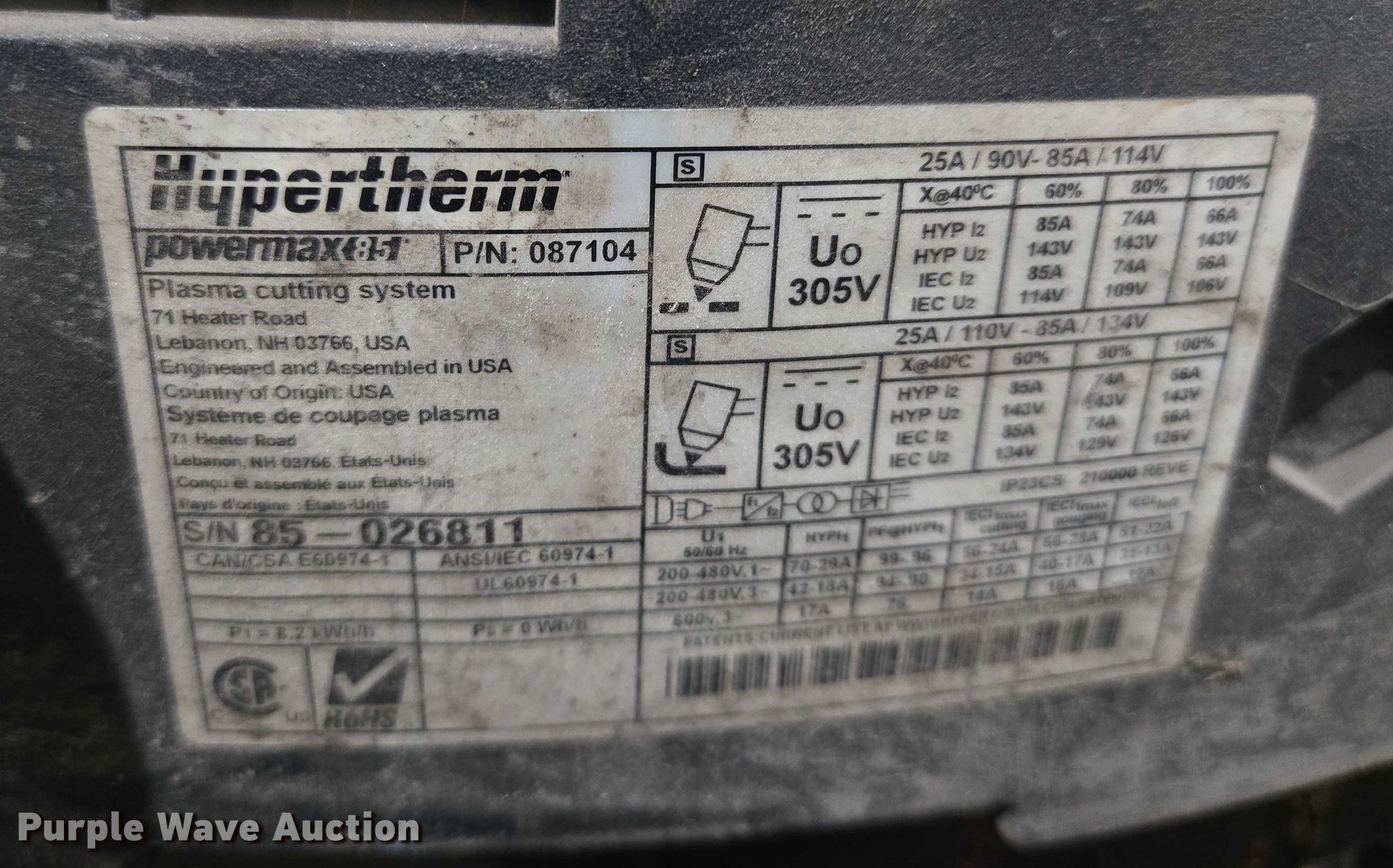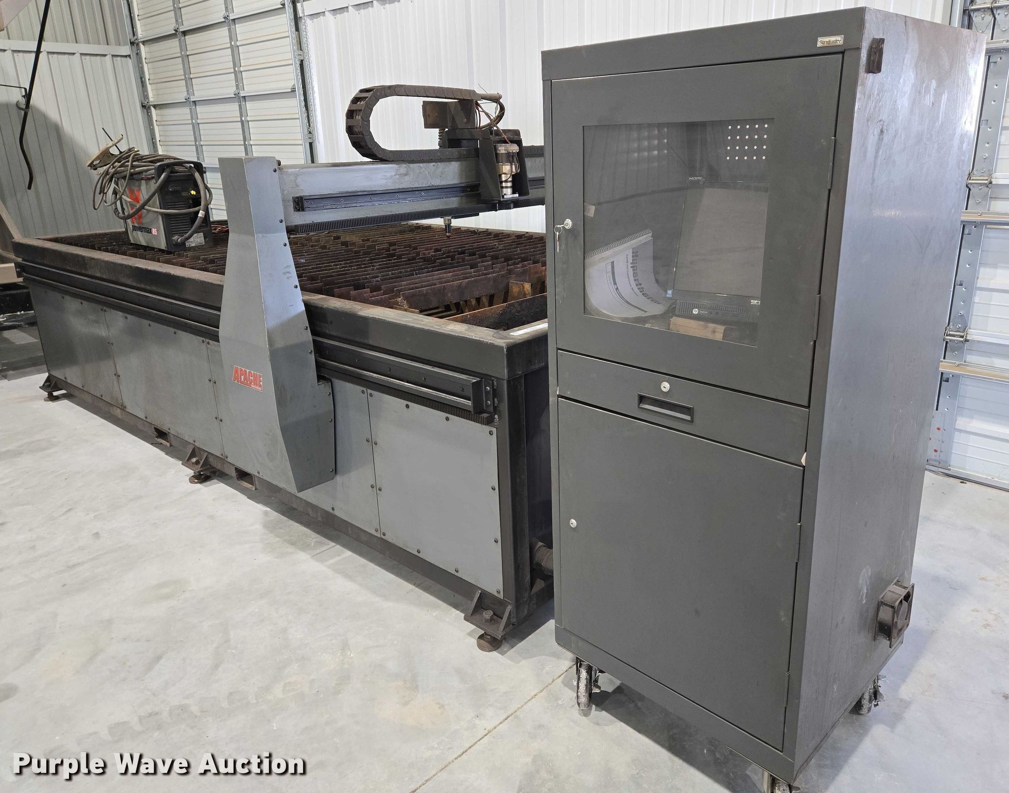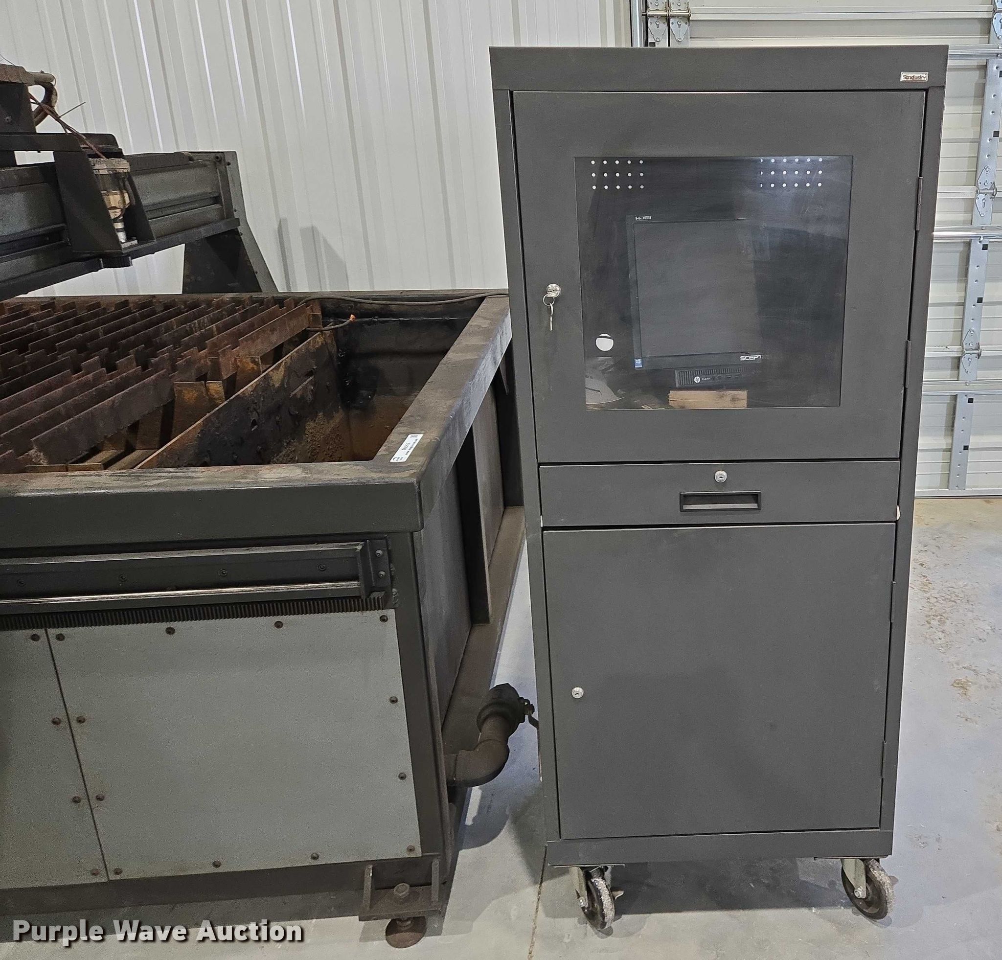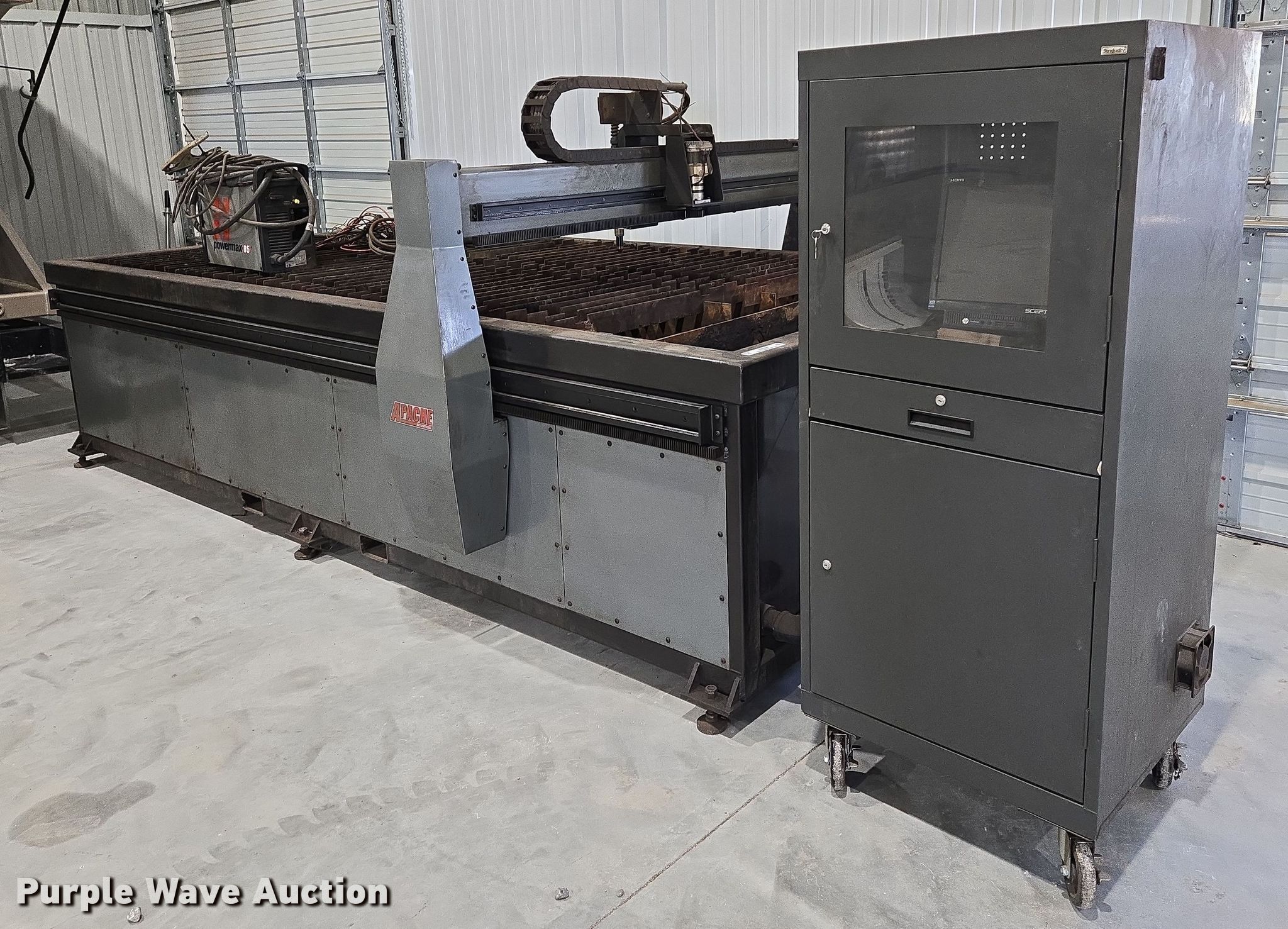 Purple Wave is selling a used Cutting Systems in Kansas. This item is a Apache Industries plasma cutting system with the following: Control station, Monitor, Keyboard, Hypertherm Powermax 85 plasma cutter, Serial: 85026811, Volts: 90/143, Operators manual, Cutting table, 12' 8" L x 72" W
