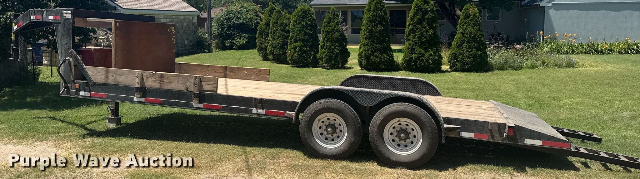 2000 Neal equipment trailer. VIN: 4A0DA2224Y1000964. Dimensions Overall: 28' x 102" W, Deck: 20' x 84" W, Tail length: 2', Ramps: Manual Length: 60". Features Deck type: Steel, Wood. Chassis Hitch: Gooseneck, Landing gear: Single, Suspension: Spring, Brakes: Electric, Axles: Tandem, GVWR: 12,000 lbs, GAWR: 6,000 lbs. Tires Steel wheels, Size: 235/85R16. Kansas non-highway not intnd for road use title. Title distribution may be delayed up to 30 days from verification of funds. Ransom, KS 67572