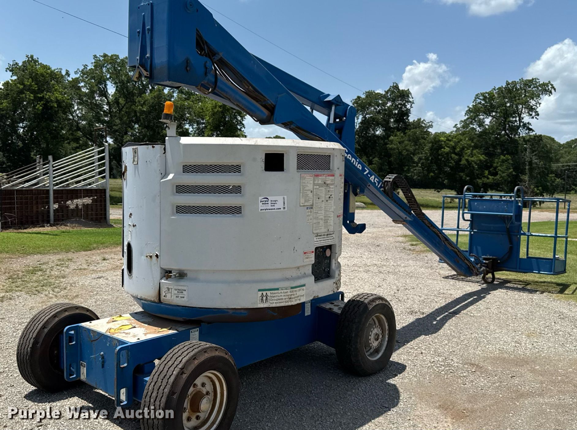 1993 Genie Z-45/22 boom lift. Hours: 5,234 on meter, Actual hours unknown, Serial: Z-45-001001. Engine Cylinders: 4, Fuel type: Gas. Features Rough terrain, Boom type: Articulating, Telescopic, Maximum lift capacity: 500 lbs, Maximum reach length: 44', Platform: 70" L x 26" W, AC power outlet, Controls: Platform, Ground. Tires Tire size: 9-14 5LT. Notes Non-operational hour meter. This is worksite support equipment and will not come with a title. Transfer of ownership documentation will be a bill of sale. Stillwater, OK 74074