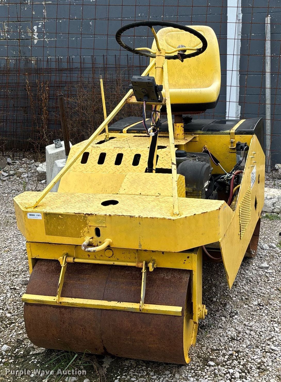 Double drum roller. Engine. Predator, Displacement: 420 cc, Fuel type: Gas. Transmission Hydrostatic. Features Drum: Smooth, Front drum Width: 28", Diameter: 18", Rear drum Width: 34", Diameter: 22", Drum scrapers: Front, Rear, Water spray applicator: Front, Rear. Notes Dead battery, Non-operational unit. Roberts Asphalt. Owensboro, KY 42301