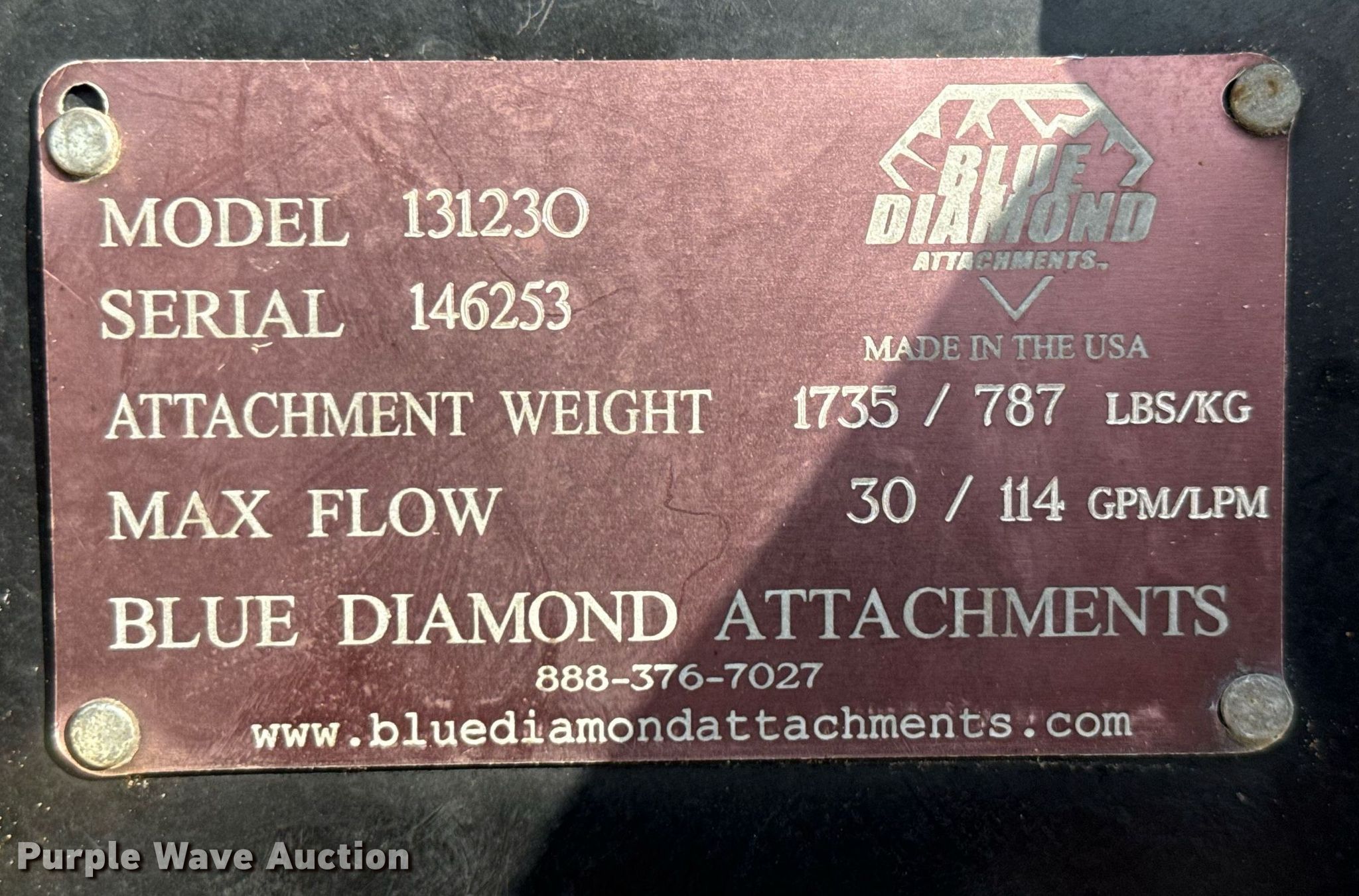 Purple Wave is selling a used Skid Steer Attach. in Texas. This item is a Blue Diamond 131230 skid steer trencher with the following: Serial: 146253, Unit #: 1298396, Width: 6", Length: 48", Manual crumber, Adjustable depth plate