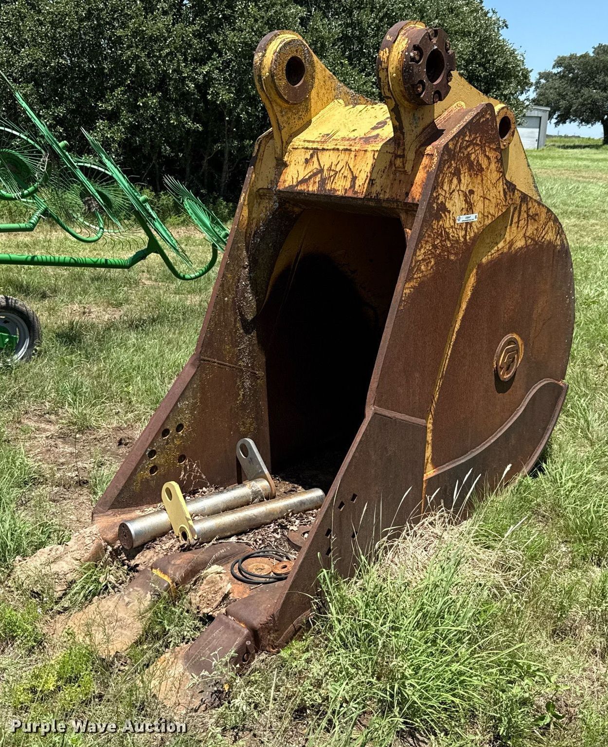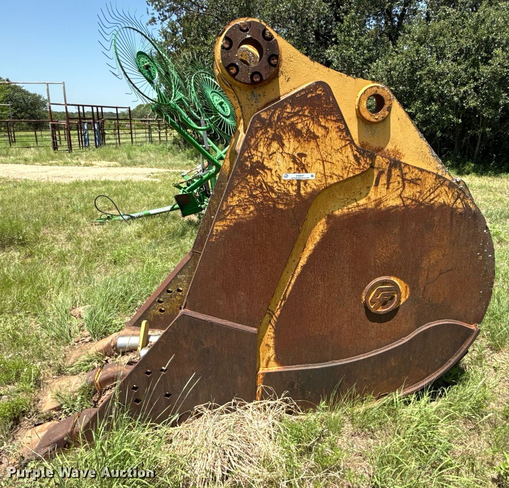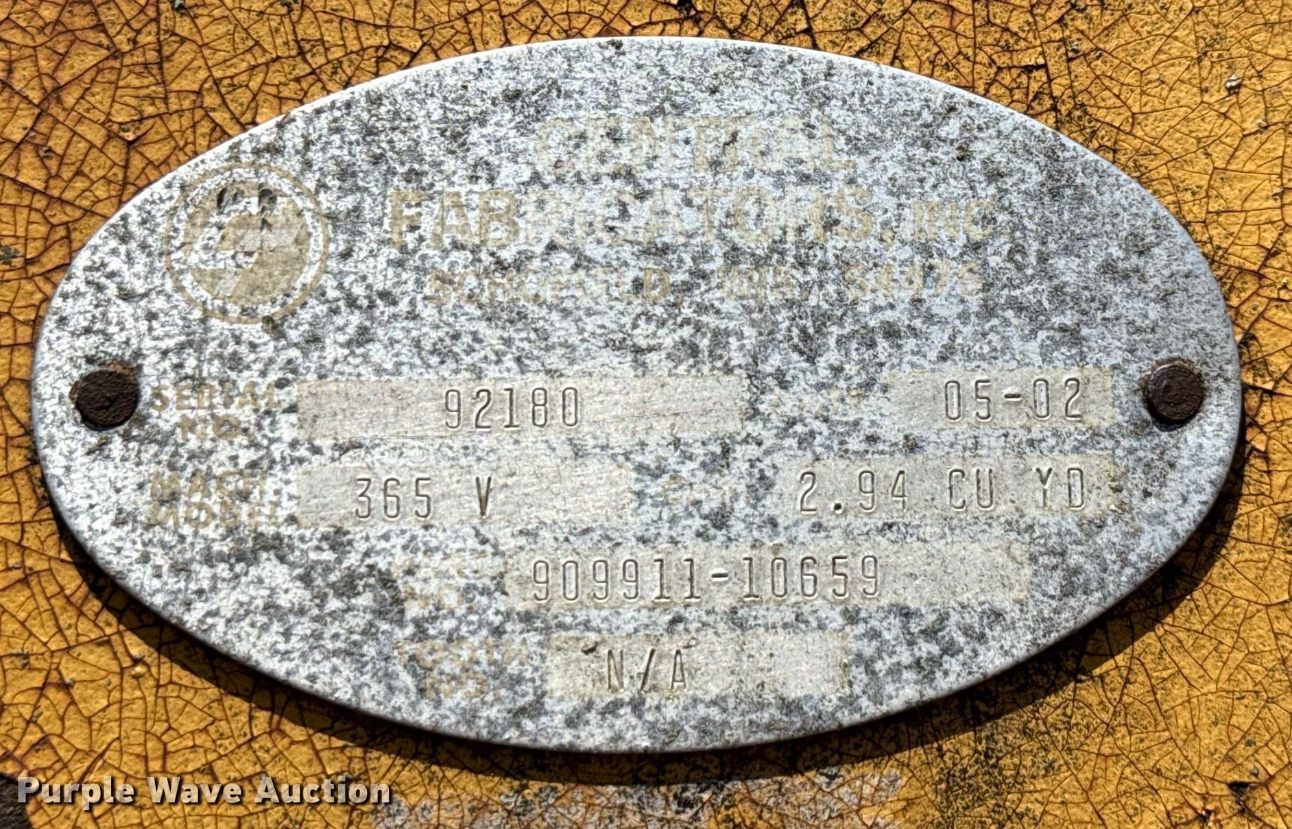Purple Wave is selling a used Excavator Attach. in Texas. This item is a Central Fabricstors 365 V excavator bucket with the following: Serial: 92180, Capacity: 2.94 cu.yd., Width: 44", Teeth: 3, (2) pins