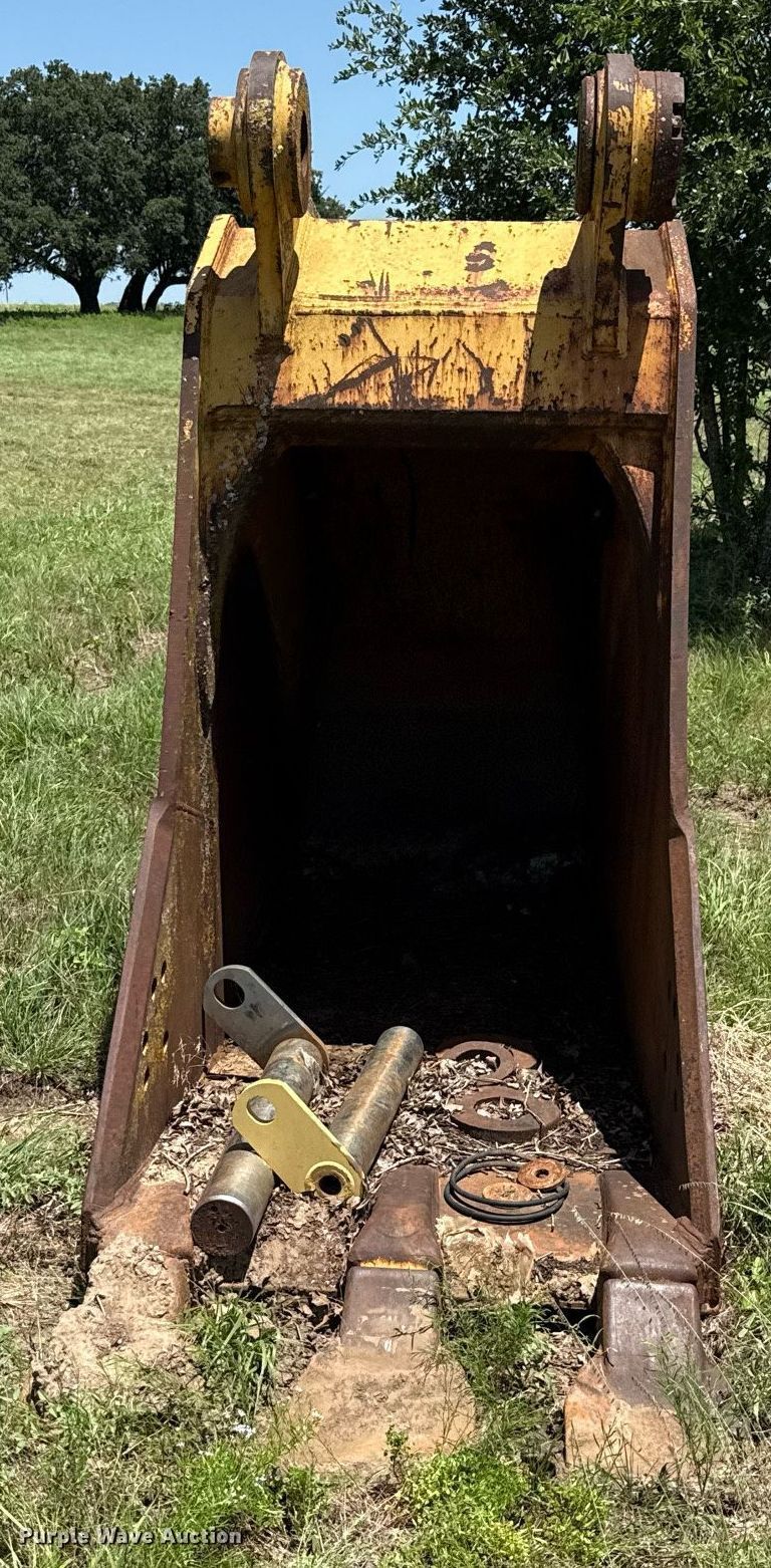 Central Fabricstors 365 V excavator bucket. Serial: 92180, Capacity: 2.94 cu.yd., Width: 44", Teeth: 3, (2) pins. Hico, TX 76457