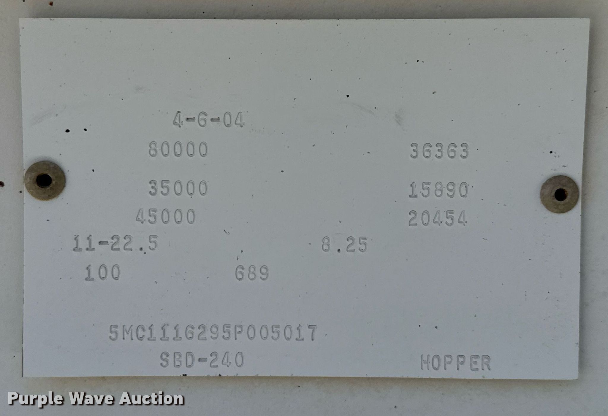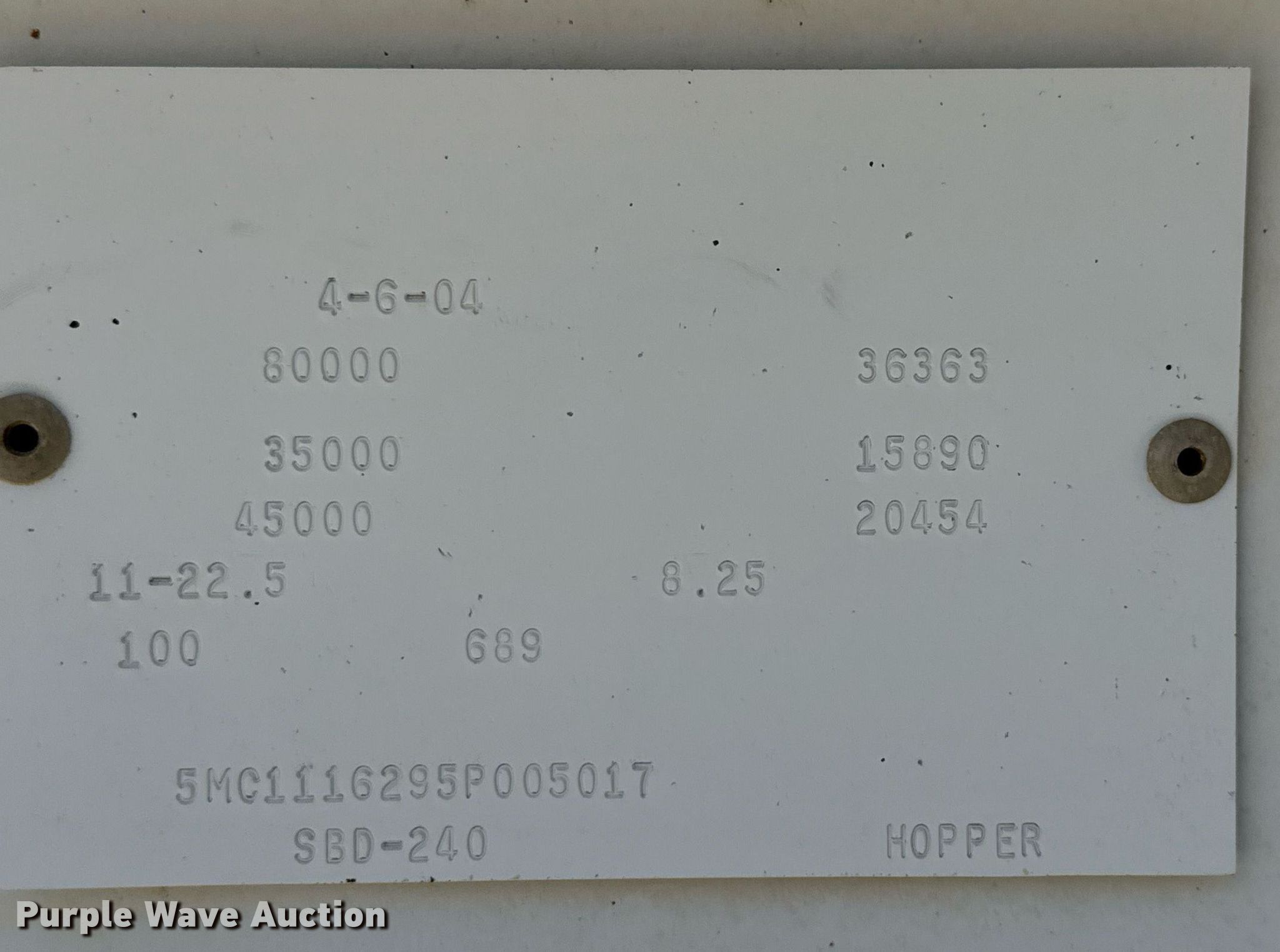 Purple Wave is selling a used Bottom Dump Trailer in Texas. This item is a 2005 CPS SBD-240 bottom dump trailer with the following: VIN: 5MC1116295P005017