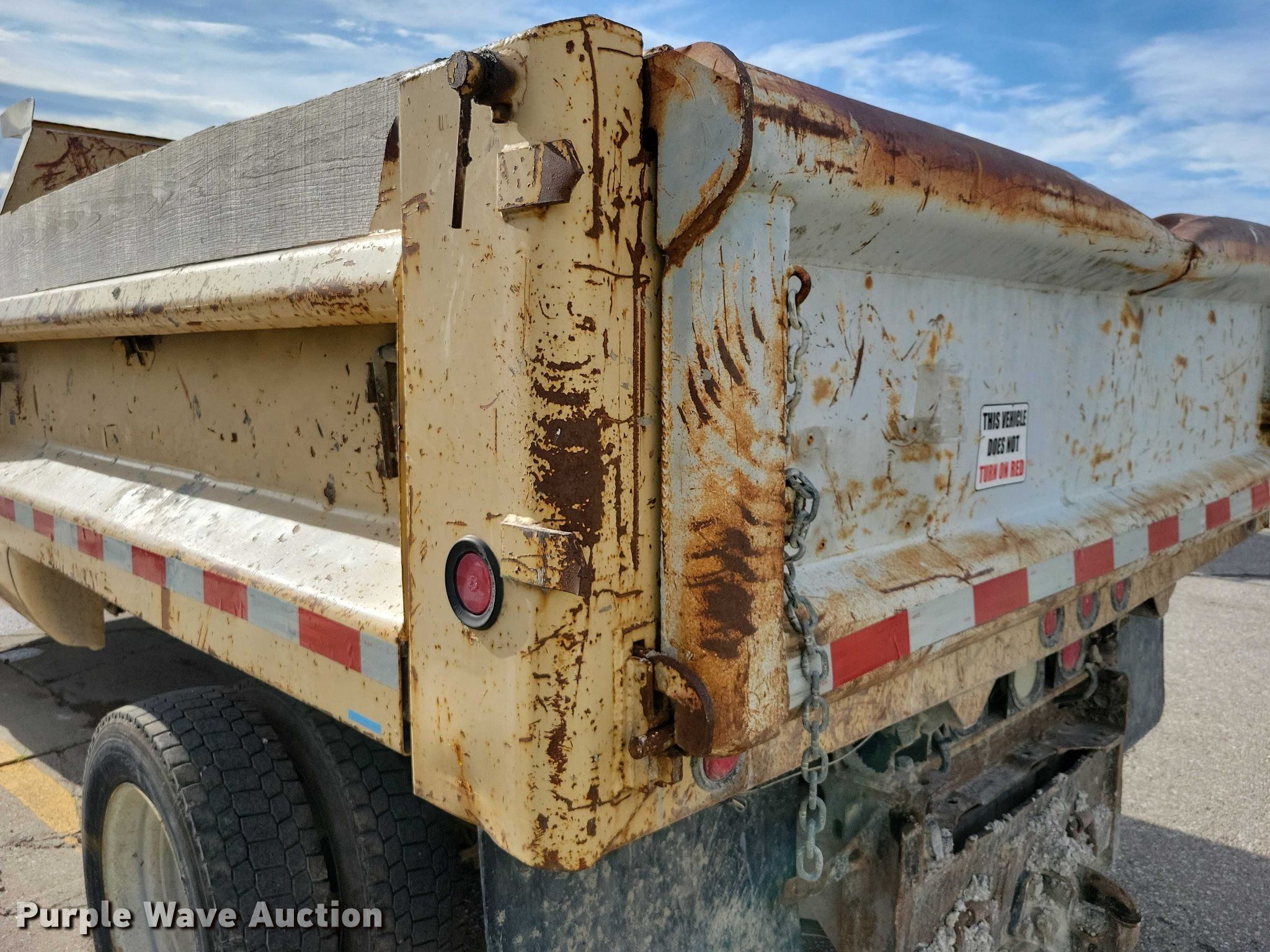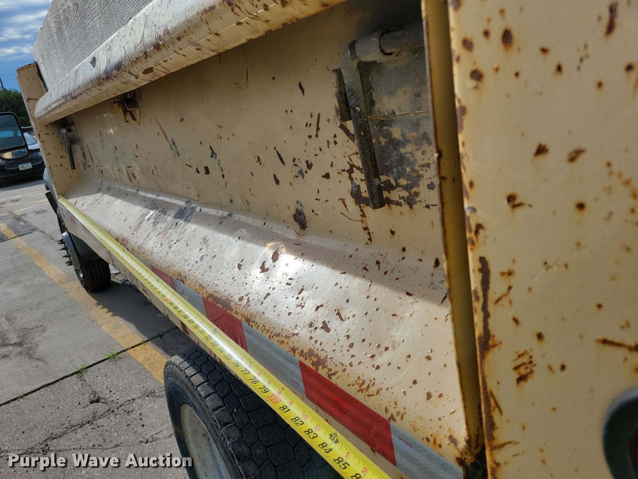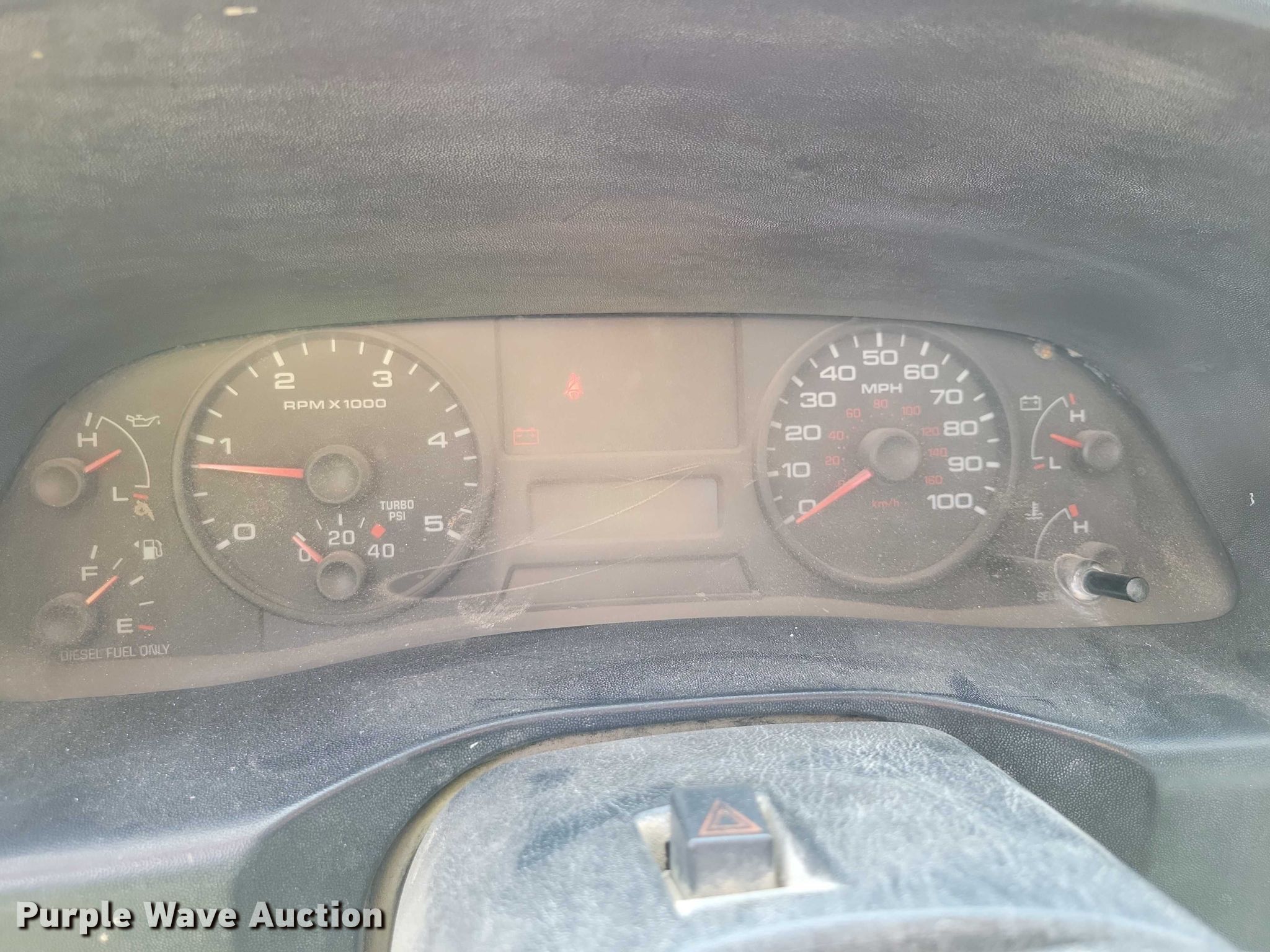 2005 Ford F550 dump truck. Miles: 158,954 on odometer, VIN: 1FDAF56P35EC86162. Engine Displacement: 6.0L V8 OHV, Cylinders: 8, Fuel type: Diesel. Transmission Manual, Speed: 6. Chassis Axles: Single, Suspension: Spring, Brakes: Hydraulic, GVWR: 17,950 lbs FAWR: 5,200 lbs, RAWR: 13,660 lbs. Interior AC, Heat, Brake controller. Features Dump bed Heil, Capacity: 3 cu.yd., 9' L x 96" W, Side height: 20", Side board height: 8", Fold down sides, Bed type: Steel, Ram: Single, End gate: Manual. Tires Size: 225/70R19.5. Notes Engine issues, head gasket needs replaced , Coolant issues, coolant in oil, Compression issues, Dash warning indicator: Low voltage. Iowa title. Rasmussen Group. Des Moines, IA 50313