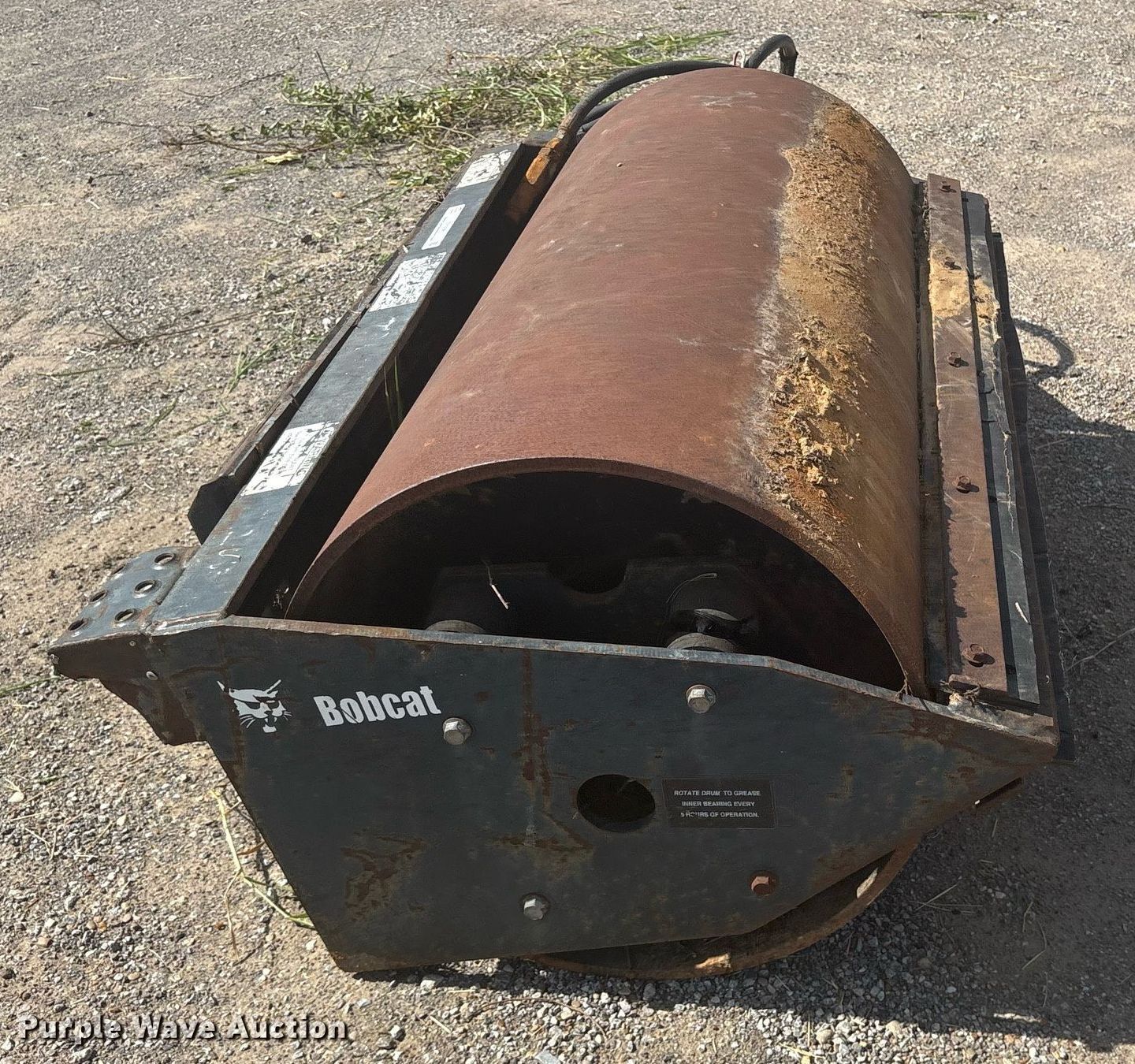Purple Wave is selling a used Skid Steer Attach. in Texas. This item is a Bobcat 48" W skid steer vibratory roller with the following: Vibratory system issues, grommets broken
