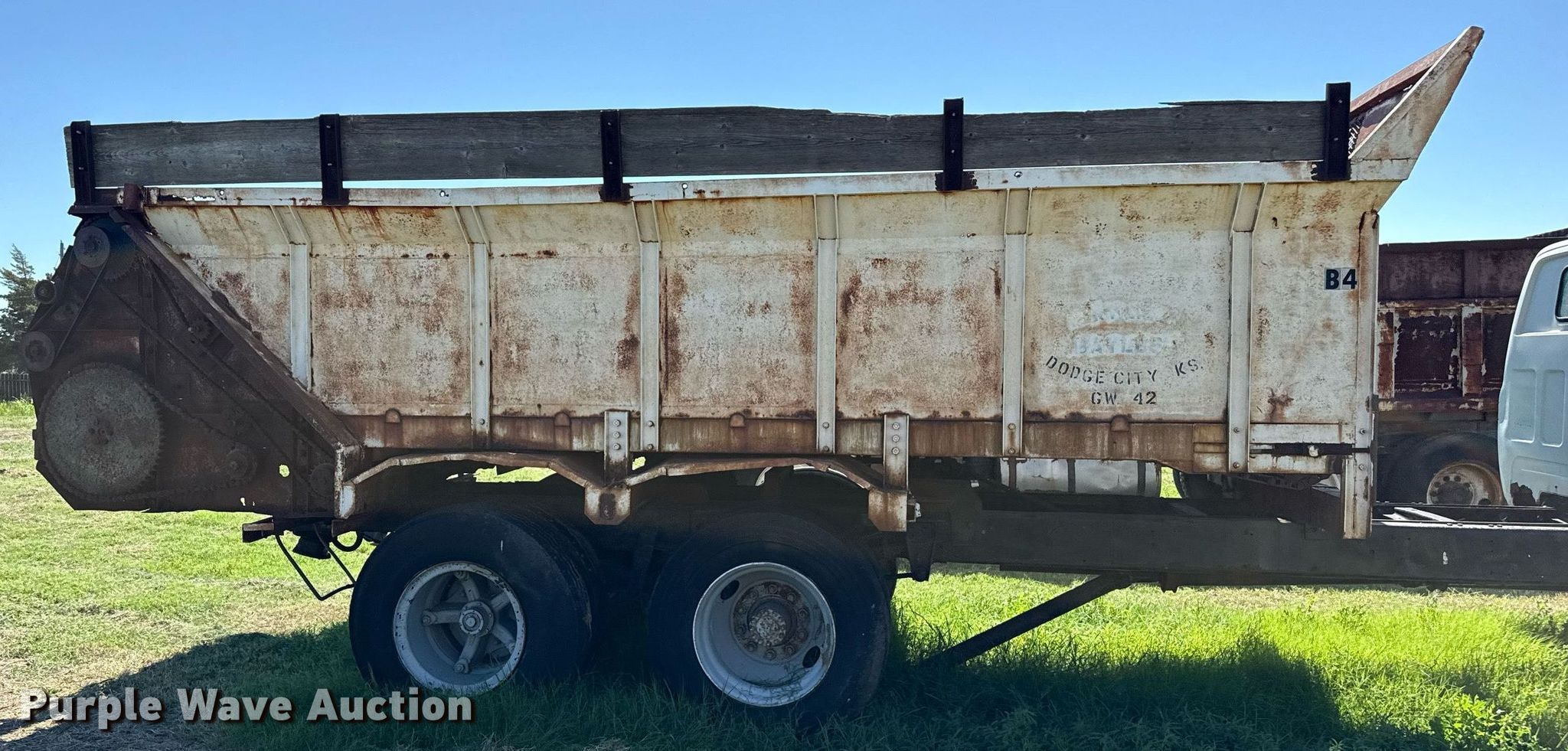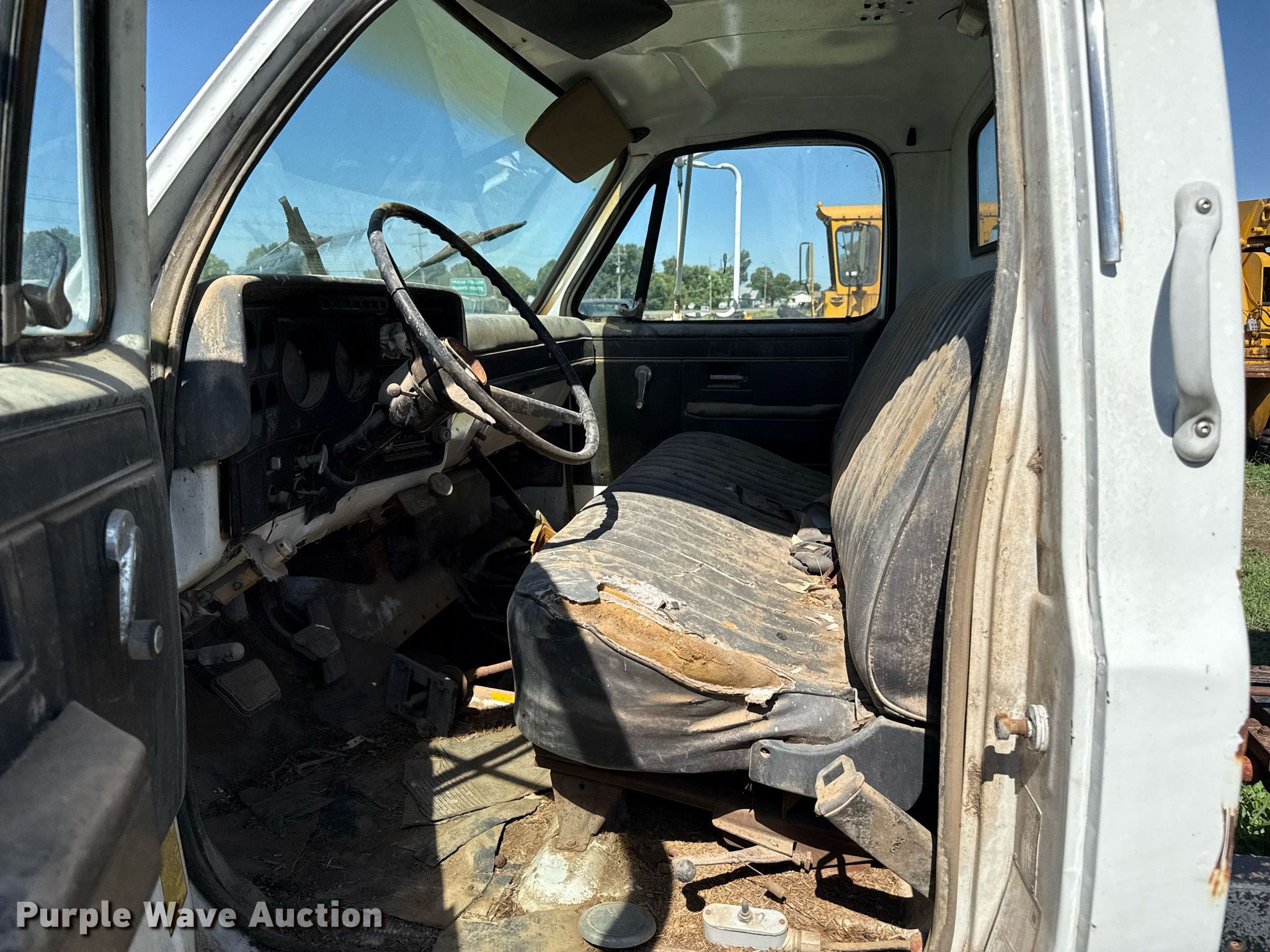 1985 GMC C6000 manure spreader truck. Miles: 28,625 on odometer, VIN: 1GDL7D1B7FV512006. Engine Displacement: 6.0L, Cylinders: 8, Fuel type: Gas. Transmission Manual. Chassis Axles: Tandem, Suspension: Spring, Brakes: Hydraulic, GVWR: 27,500 lbs. Interior Heat. Features Manure spreader bed 19' L x 80" W, Side height: 45", Chain driven floor, Rear beaters: Horizontal. Tires Size: 10.00R20. Notes Bed damage Rust damage, Holes, Unknown operating condition. Transfer of ownership documentation will be an Kansas antique bill of sale TR-312. This form is the only ownership documentation that will be provided and is sufficient for an Kansas buyer to apply for an Kansas title. Bidders are responsible for verifying if this is sufficient to obtain title in their jurisdiction prior to bidding. Dodge City, KS 67801