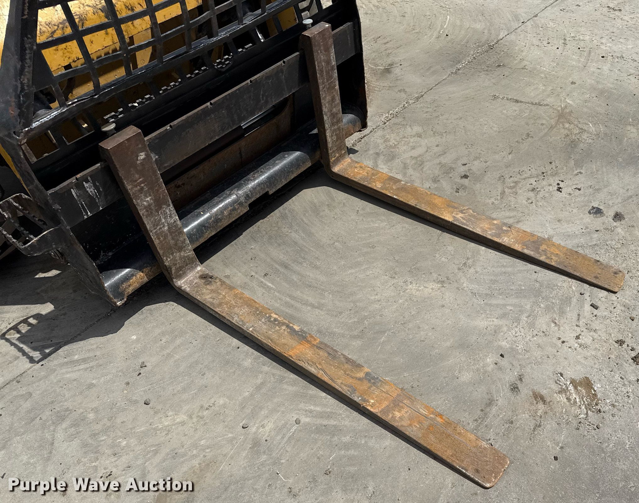 2018 Caterpillar 262D skid steer loader. Hours: 4,145 on meter, Serial: CAT0262DEDTB07919. Engine Caterpillar C3.3B, Displacement: 3.3L, Cylinders: 4, Fuel type: Diesel. Transmission Hydrostatic, Two speed travel. Operators station Enclosed cab, AC, Heat, Bucket control: Hand, Electronic Monitoring System panel. Features Auxiliary hydraulics, Auxiliary electrical outlet, Quick coupler: Hydraulic, Bucket Width: 74", Cutting edge: Bolt-on, Forks Length: 44". Tires Size: 33x12-20, Solid. American West Construction. Denver, CO 80221