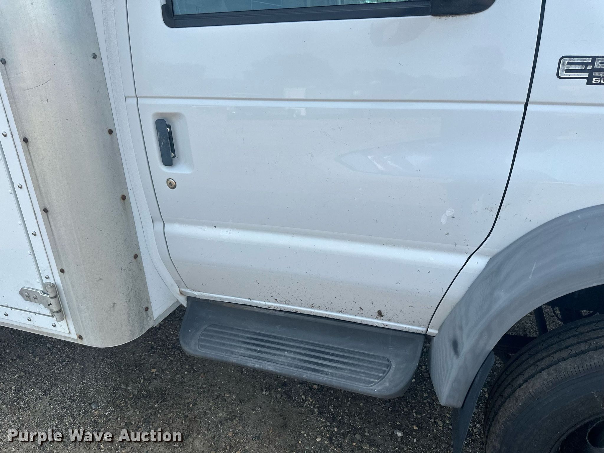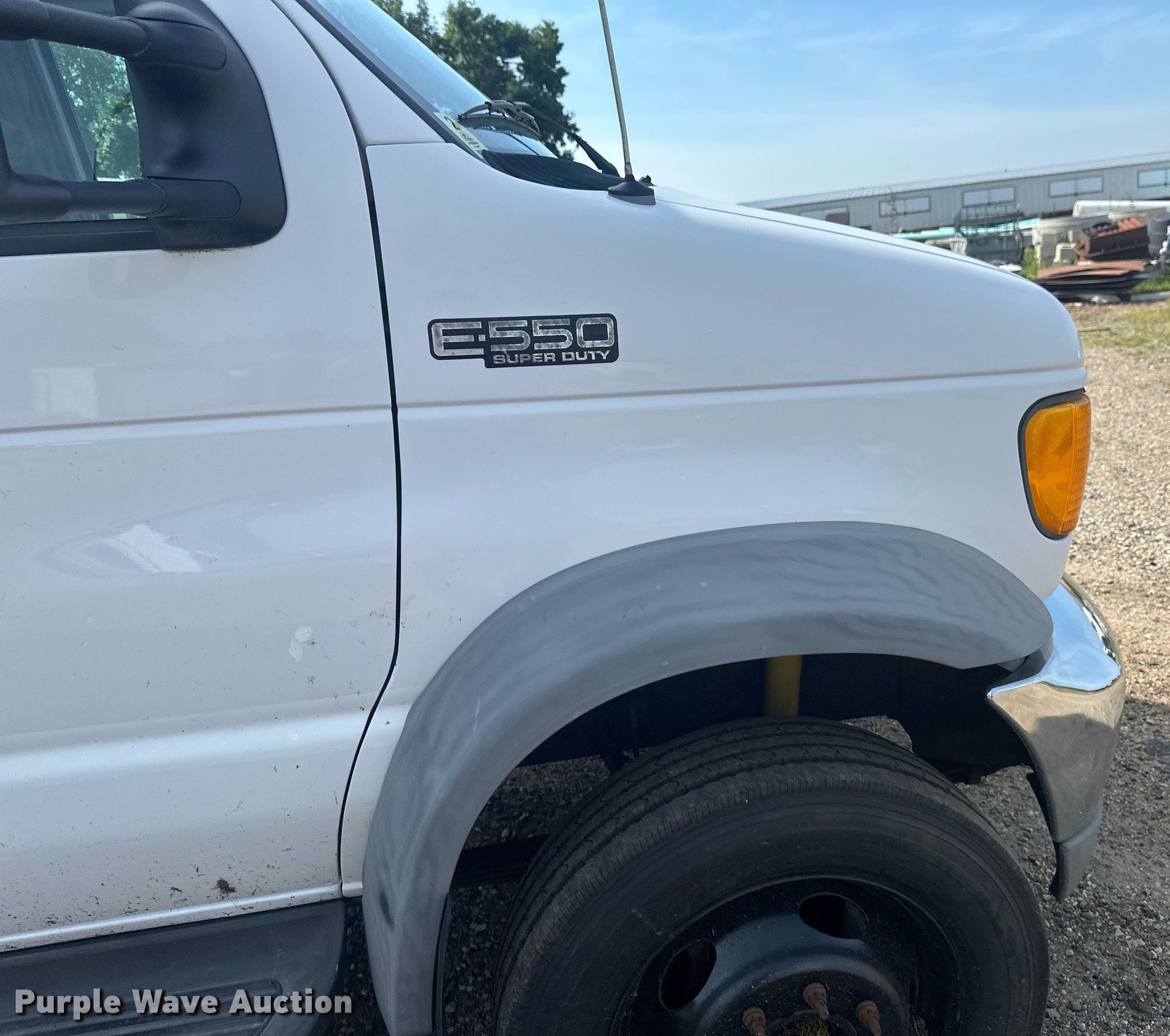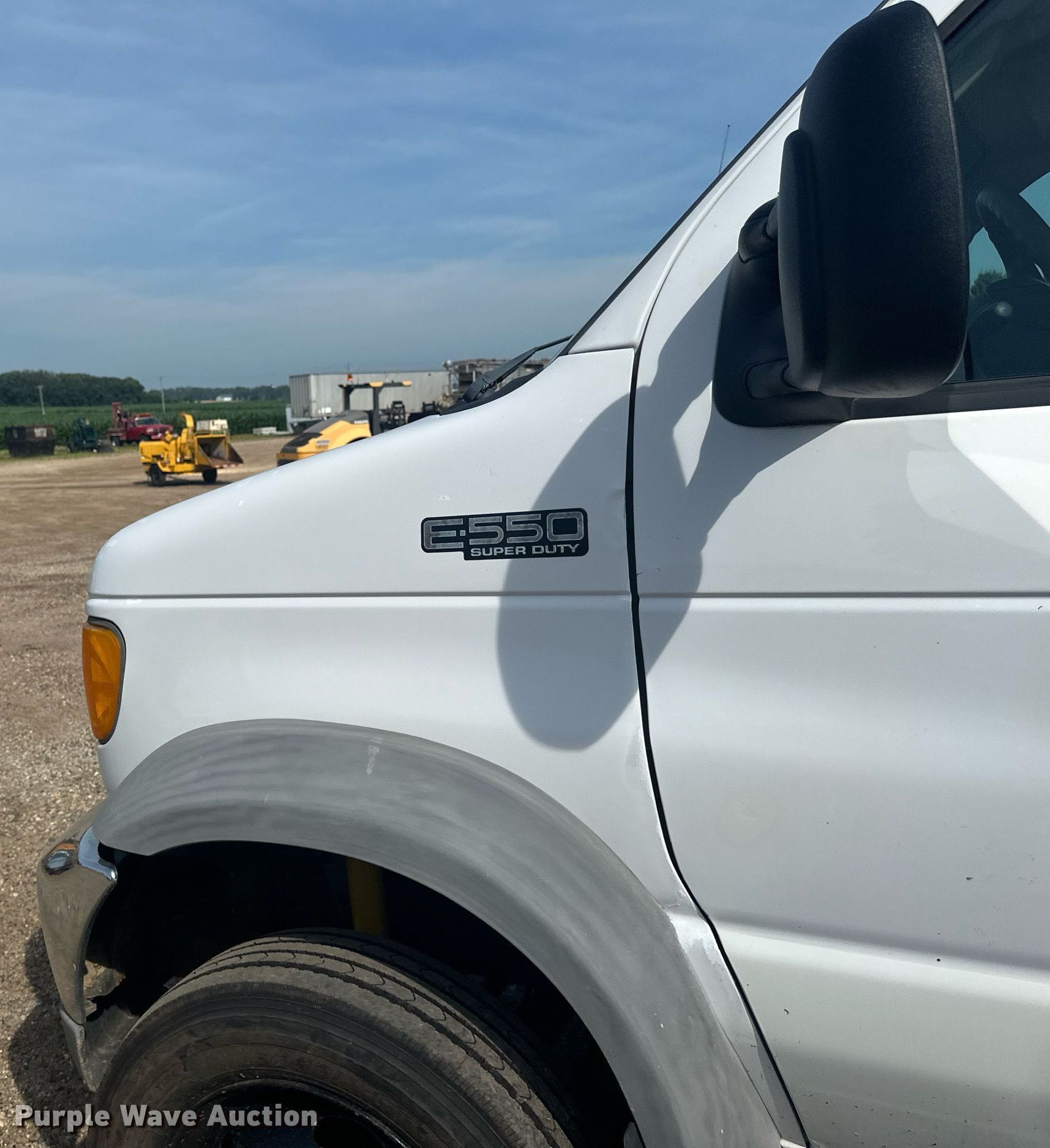 2003 Ford E550 utility / service truck. Miles: 188,811 on odometer, VIN: 1FDAE55FX3HA74642. Engine Displacement: 7.3L, Cylinders: 8, Fuel type: Diesel. Transmission Automatic. Chassis Axles: Single, Suspension: Spring, Brakes: Hydraulic. Interior AC, Heat, Cruise control. Features Bed Utility bed, Length: 14', Width: 8' 6". Tires Size: 225/70R19.5. Notes Vehicle inspection report available upon request at [email protected]. View repairs. Minnesota title. Title distribution may be delayed up to 14 days from verification of funds. JJD Companies LLC. Blooming Prairie, MN 55917