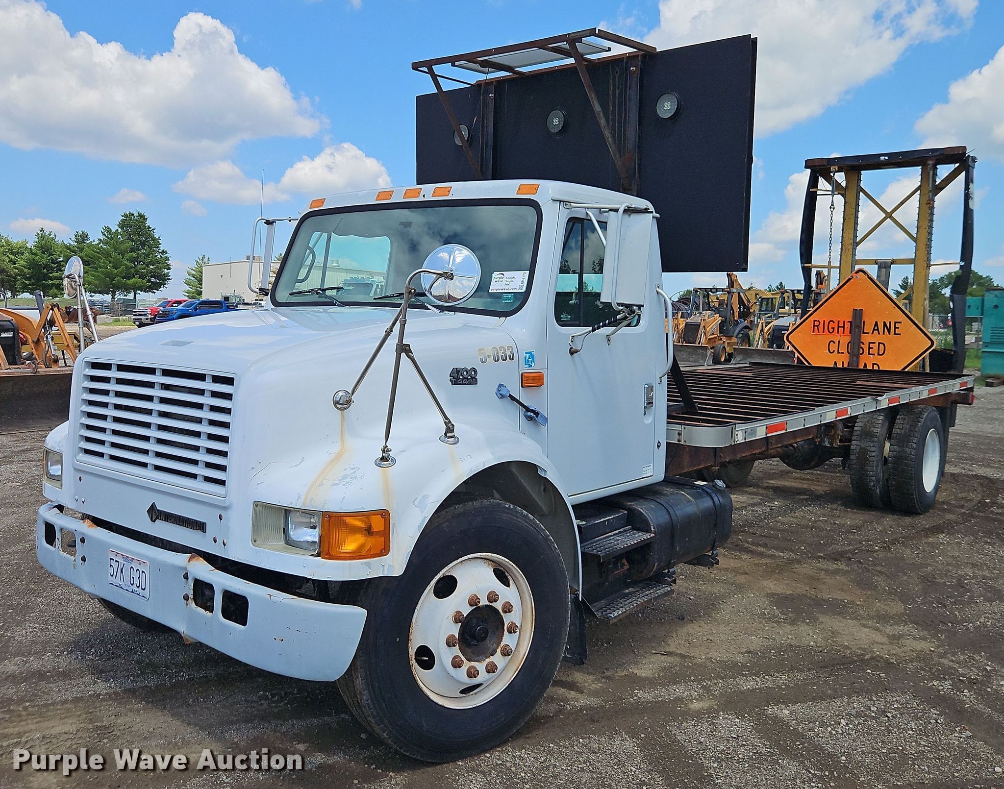1999 International 4700 flatbed truck with crash attenuator | SOLD! August 14 Construction Equipment Auction