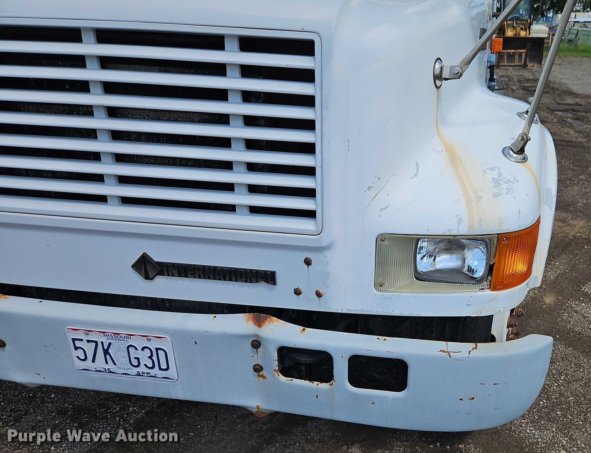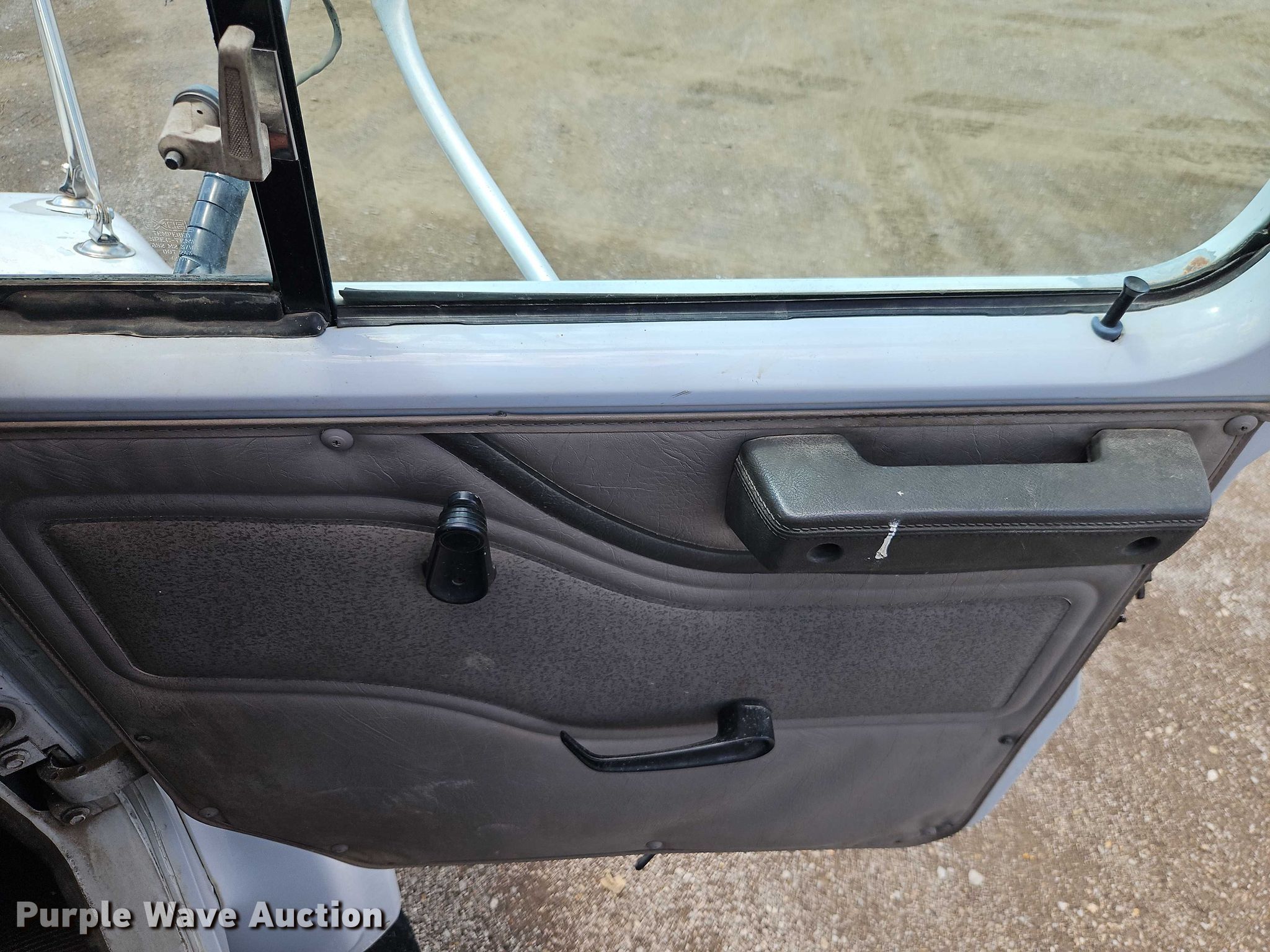 1999 International 4700 flatbed truck with crash attenuator. Miles: 120,369 on odometer, VIN: 1HTSCABM0XH653822, Unit #: 5-033. Engine International, Displacement: 7.3L, Cylinders: 8, Fuel type: Diesel. Transmission Spicer, Manual, Speed: 5. Chassis Axles: Single, Suspension: Spring, Brakes: Hydraulic, GVWR: 25,500 lbs, Wheelbase: 254". Interior AC, Heat, Heated mirrors, Cruise control. Features Flatbed 20' 6" L x 96" W. Tires Size: 295/75R22.5. Missouri title. Title distribution may be delayed up to 30 days from verification of funds. Emery Sapp & Sons, Inc.. Bucyrus, KS 66013