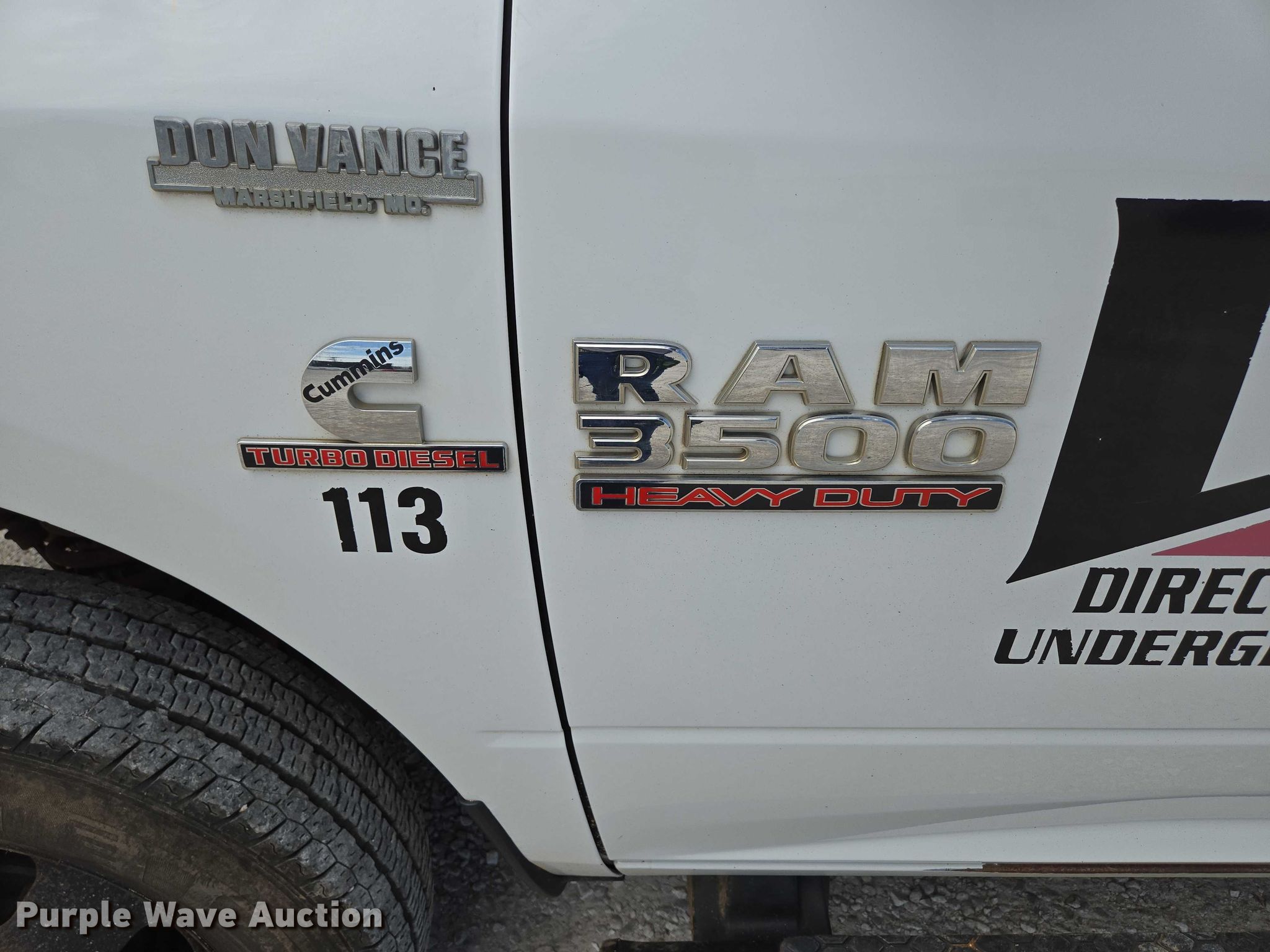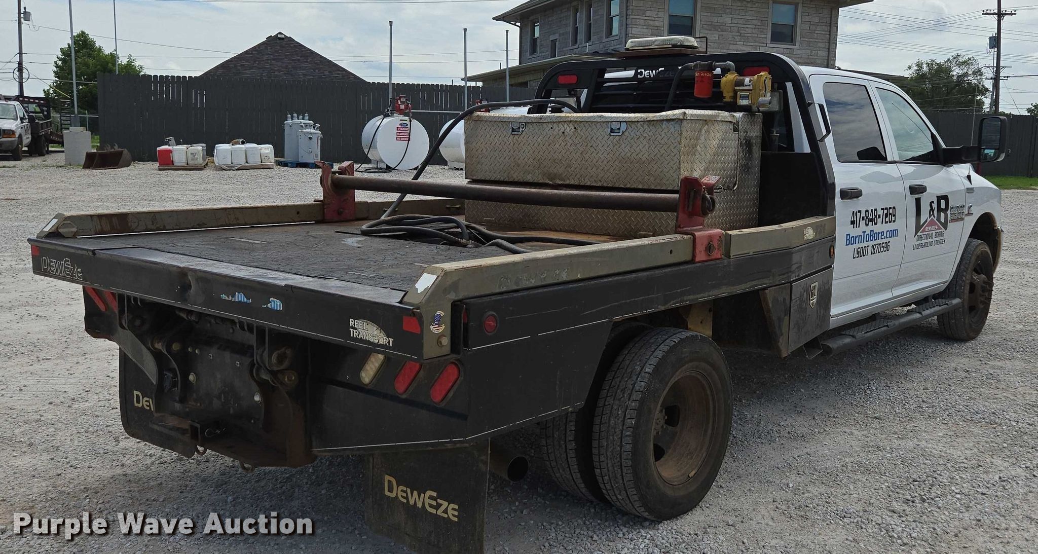 2014 Dodge Ram 3500 Crew Cab flatbed pickup truck. Miles: 163,258 on odometer, Hours: 7,276 on meter, VIN: 3C7WRTCL4EG312741, Unit #: 113. Engine Displacement: 6.7L L6 OHV, Cylinders: 6, Fuel type: Diesel. Transmission Automatic, Four wheel drive. Interior AC, Heat, Heated mirrors, Power windows, Power locks, Cruise control, Auxiliary controls, Brake controller. Features Flatbed DewEze 784RT Flatbed W/ Hugger 8' x 9'8, 9' 9.5" L x 96.5" W, Reel transport, Electric over hydraulic function. Tires Size: LT235/80R17. Notes EGR deleted, DEF deleted, DPF deleted, Windshield chipped or cracked. Missouri title. Title distribution may be delayed up to 14 days from verification of funds. L&B Services LLC. Springfield, MO 65802