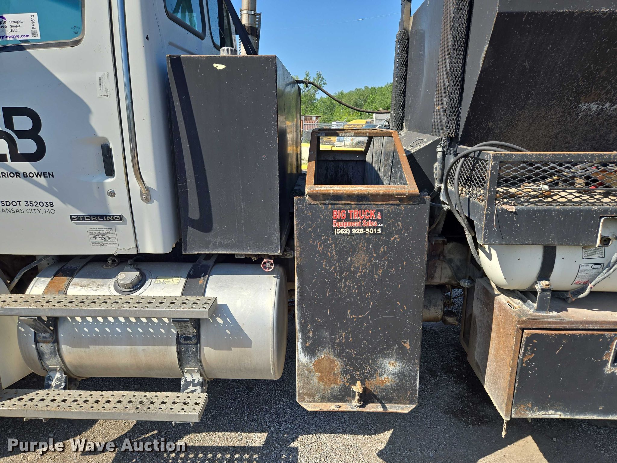 2007 Sterling L7500 Series pothole patcher truck. Miles: 196,609 on odometer, VIN: 2FZAATDC77AY64827. Engine Caterpillar C7, Displacement: 7.2L, Cylinders: 6, Fuel type: Diesel. Transmission Allison, Automatic. Chassis Axles: Single, Suspension: Spring, Brakes: Air, PTO. Features Bed / tank 10' 5" L x 89" W, Unitized asphalt patcher, Rear discharge Width: 18", Conveyor belt width: 16", Torch. Tires Front: 315/80R22.5, Rear: 12R22.5. Notes Dash warning indicator: ABS, Audible air leak, Unknown operating condition Unit must be towed or hauled. Missouri title. Title distribution may be delayed up to 14 days from verification of funds. Superior Bowen Asphalt. Kansas City, MO 64129