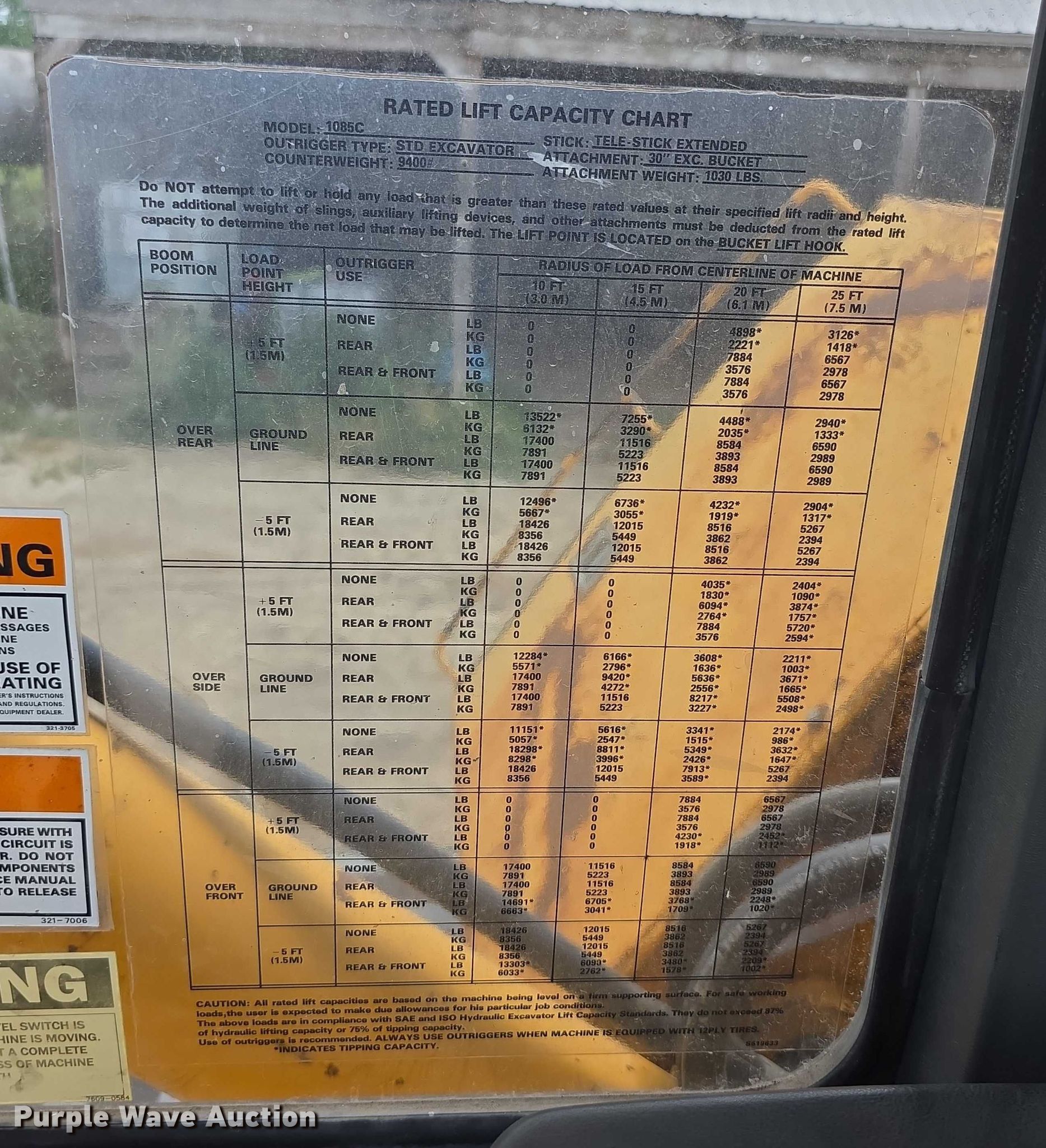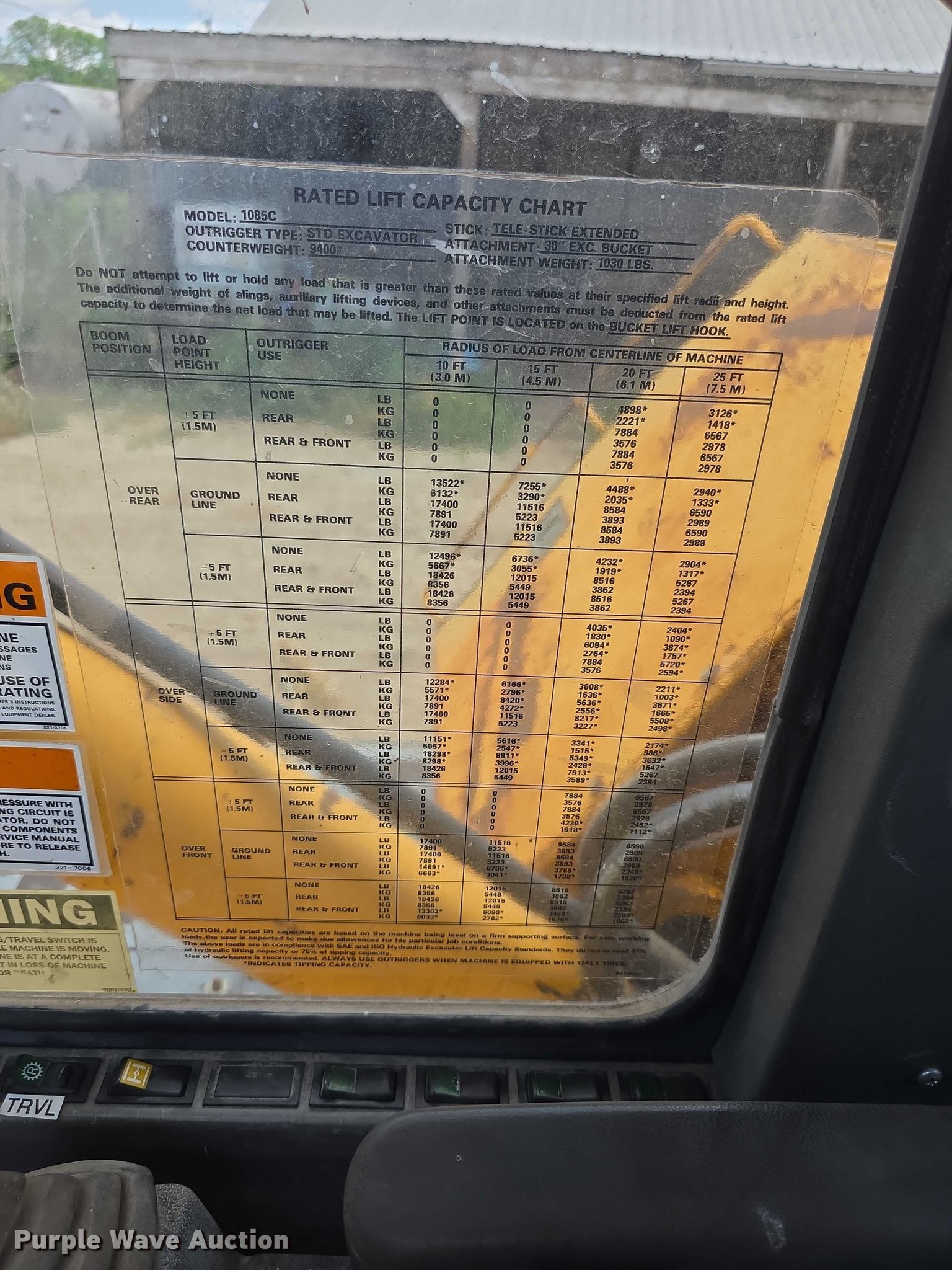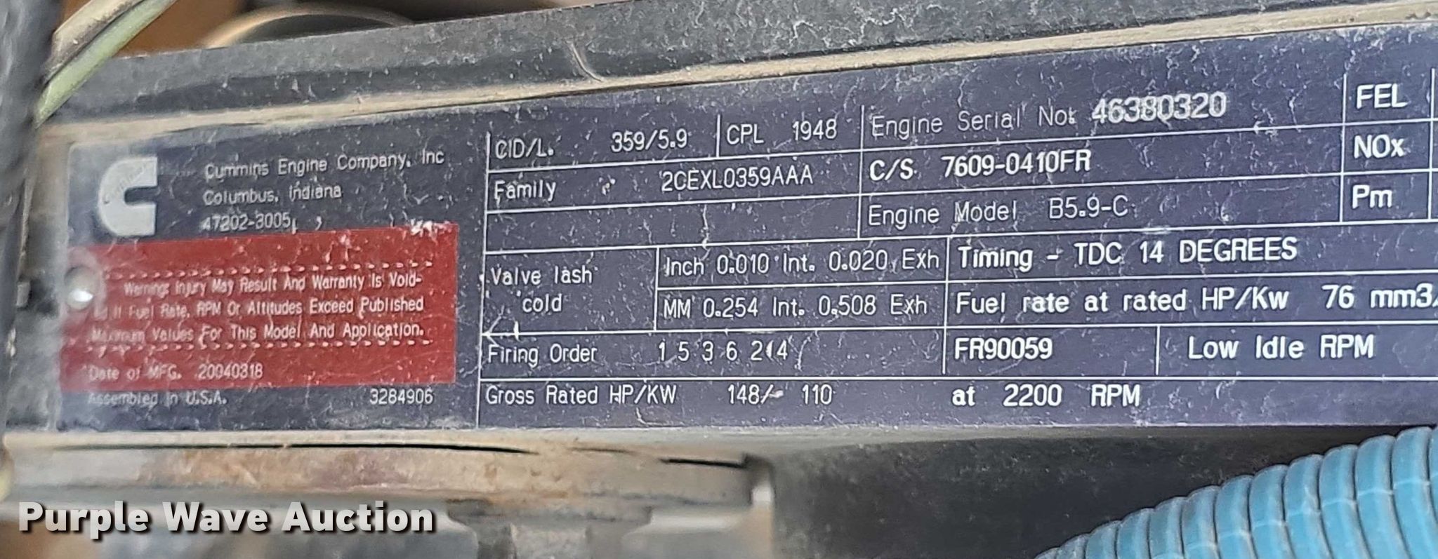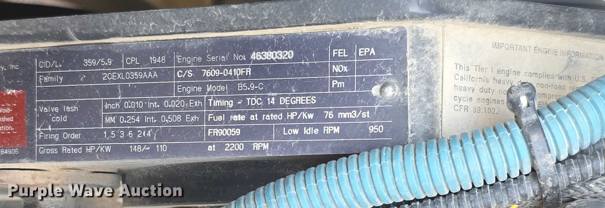 2004 Badger 1085D Cruz-Air wheeled excavator. Hours: 3,766 on meter, Serial: 040501. Engine Cummins B5.9C, Serial: 46380320, Displacement: 5.9L, Cylinders: 6, Fuel type: Diesel. Transmission Powershift. Operators station Enclosed cab, Heat. Features Auxiliary hydraulics Two-way, Counter weights, Boom Standard, Stick Stick length: 11' 6", Thumb: Hydraulic, Bucket Width: 57", Cutting edge: Weld-on. Tires Size: 17.5-25. Notes Glass cracked. Cedar Point, KS 66843