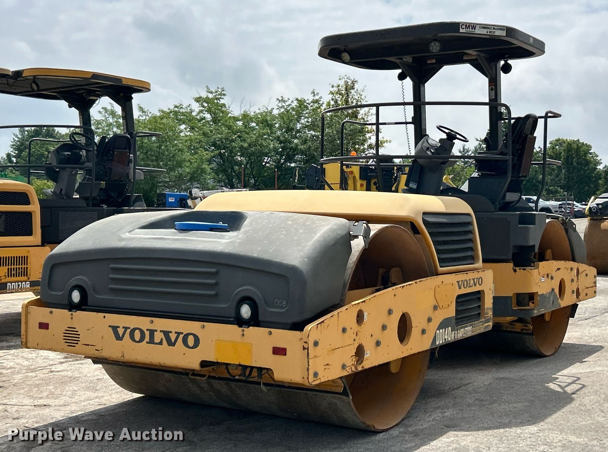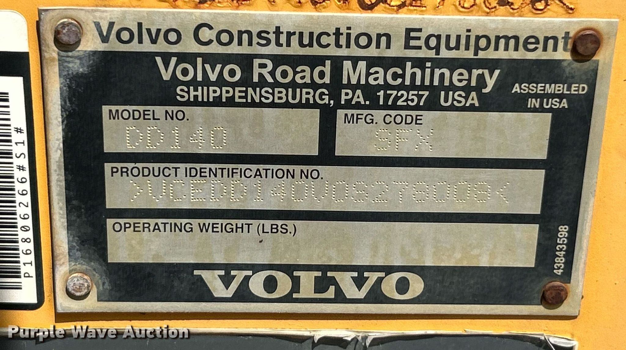 Volvo DD140 HF 8 Amplitude double drum roller. Hours: 2,496 on meter, Serial: VCEDD140V03278008. Engine Displacement: 6.7L, Cylinders: 6, Fuel type: Diesel. Transmission Hydrostatic, Two speed travel. Operators station OROPS. Features Drum: Smooth, Vibratory system: Double, Independent drum controls, Front drum Width: 84", Diameter: 55", Rear drum Width: 84", Diameter: 55", Drum scrapers: Front, Rear, Water spray applicator: Front, Rear. CMW Equipment. Bridgeton, MO 63044