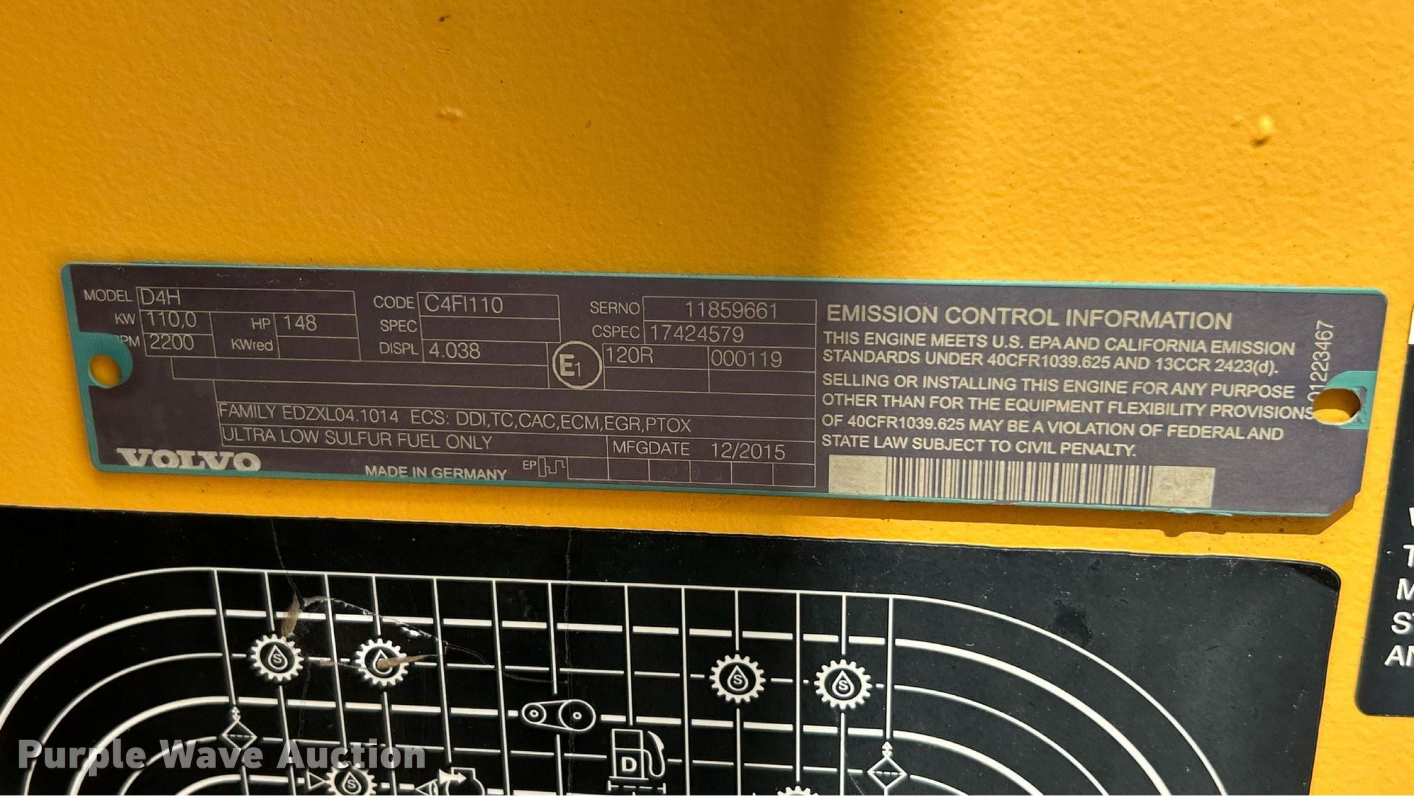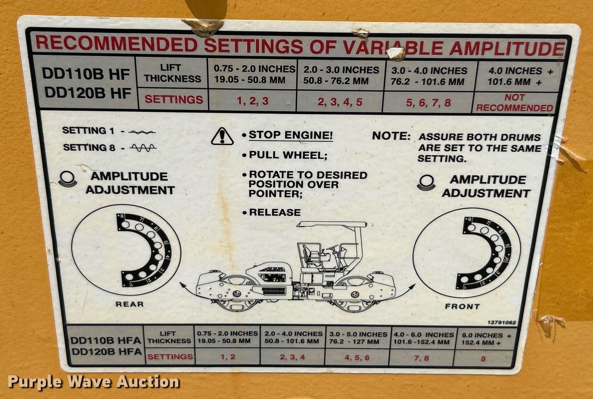 2016 Volvo DD120B double drum roller. Hours: 2,094 on meter, Serial: VCED120BT0S287144. Engine Volvo, Displacement: 4.038L, Cylinders: 6, Fuel type: Diesel. Transmission Hydrostatic, Two speed travel. Operators station OROPS. Features Drum: Smooth, Vibratory system: Double, Independent drum controls, Front drum Width: 78.5", Diameter: 55", Rear drum Width: 78.5", Diameter: 55", Drum scrapers: Front, Rear, Water spray applicator: Front, Rear, Electronics Compaction measuring system, Make: Volvo. CMW Equipment. Bridgeton, MO 63044