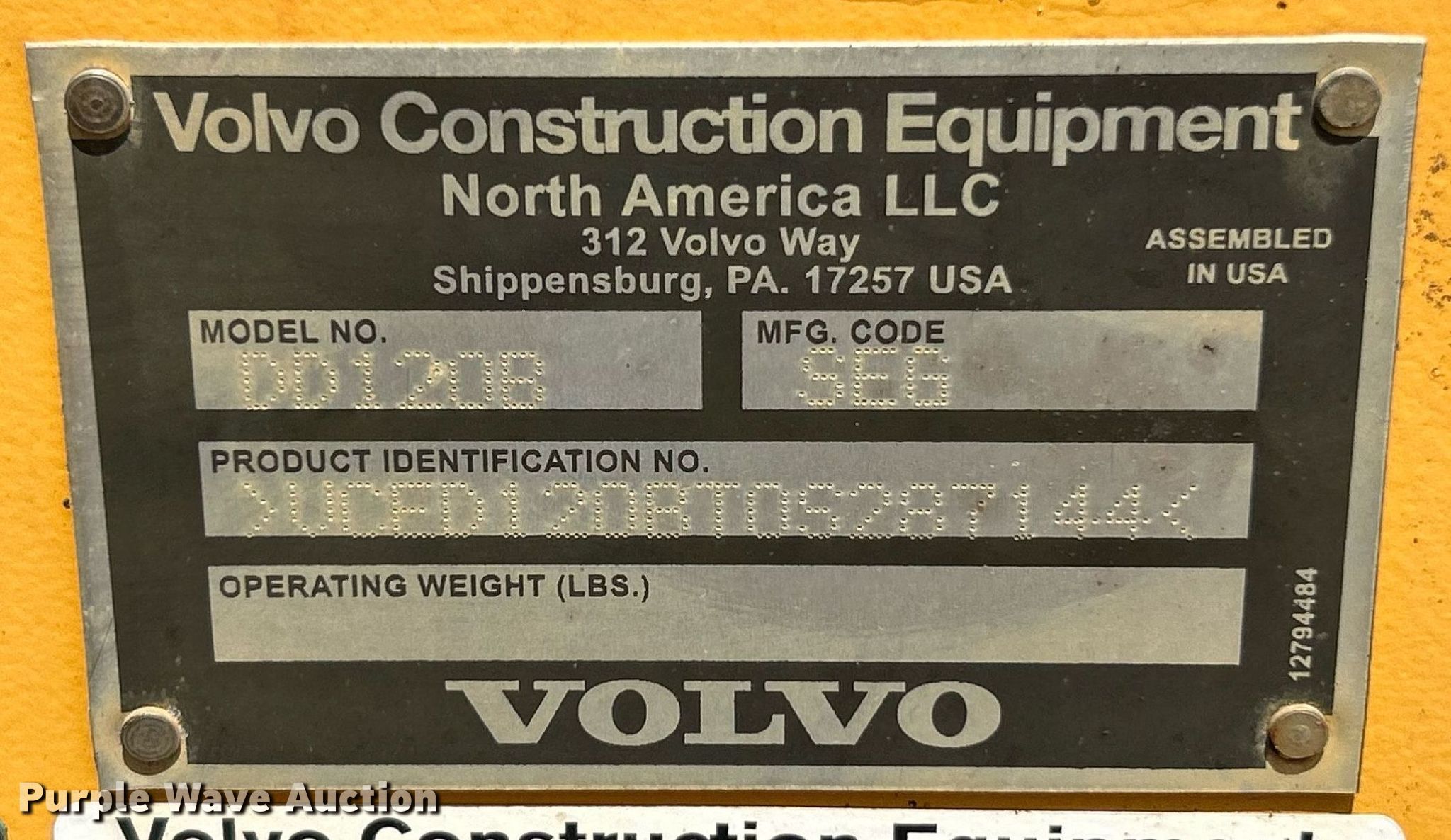 Purple Wave is selling a used Double Drum Roller Compactor in Missouri. This item is a 2016 Volvo DD120B double drum roller with the following: Hours: 2,094 on meter, Serial: VCED120BT0S287144