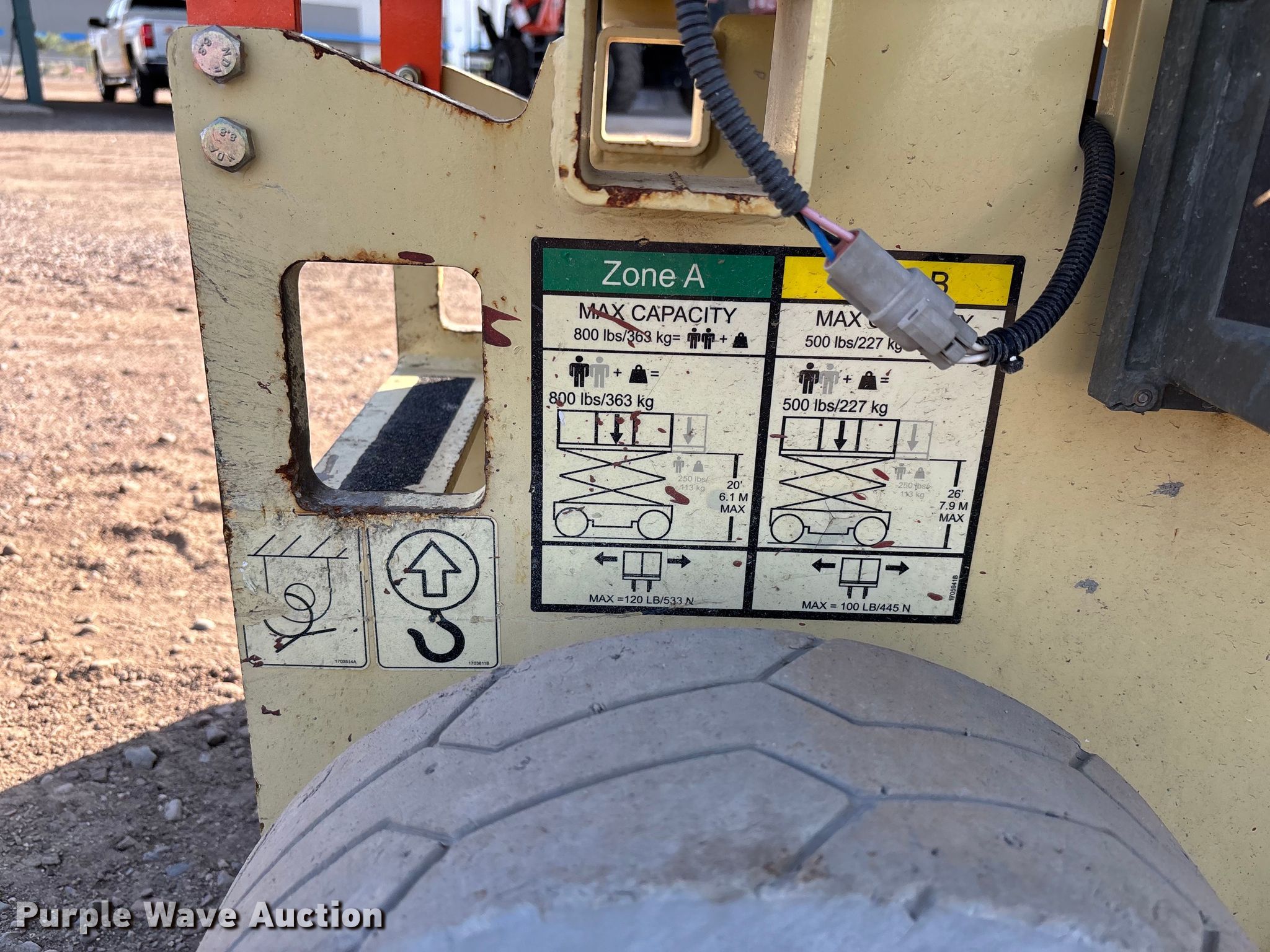 2016 JLG 2632 ES scissor lift. Hours: 336 on meter, Serial: 0200252529, Unit #: 151609. Electric Motor Volts: 24. Features Maximum lift capacity: 500 lbs, Maximum lift height: 25', AC power outlet, Controls: Remote Control, Ground, Platform extensions: Manual. Tires Tire size: 406X12.5, Non-marking. Sunstate. Peoria, AZ 85345