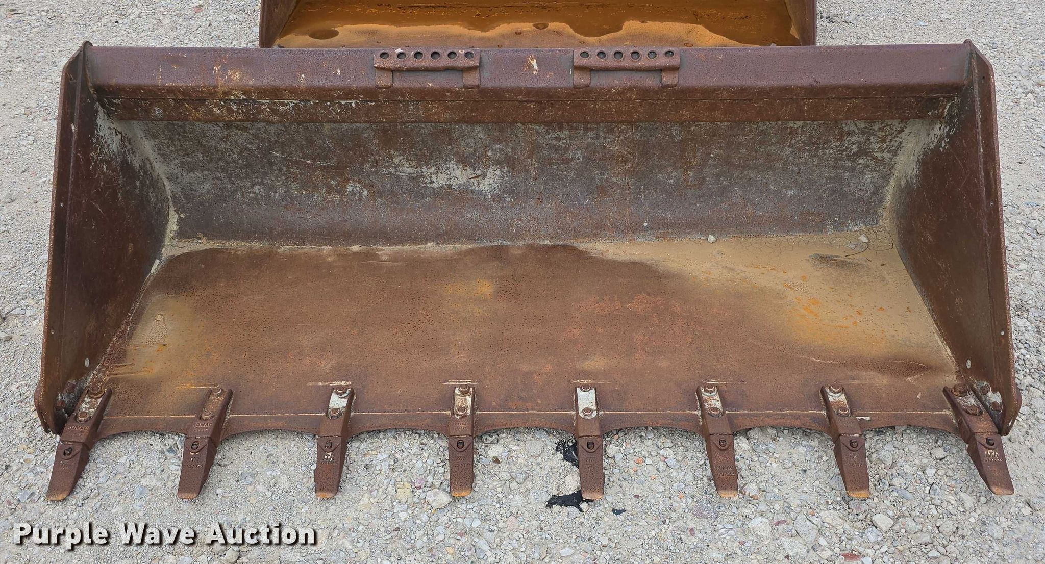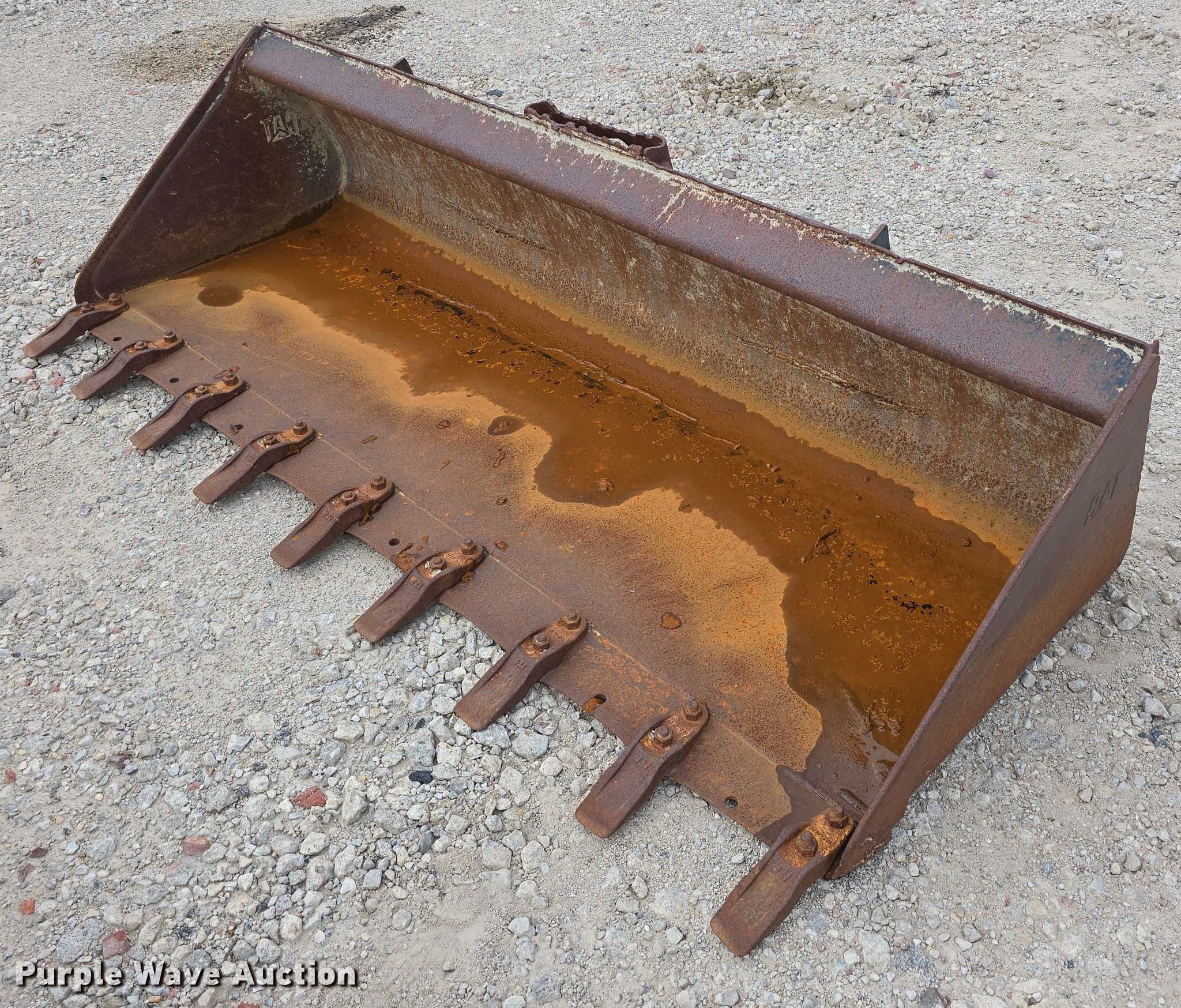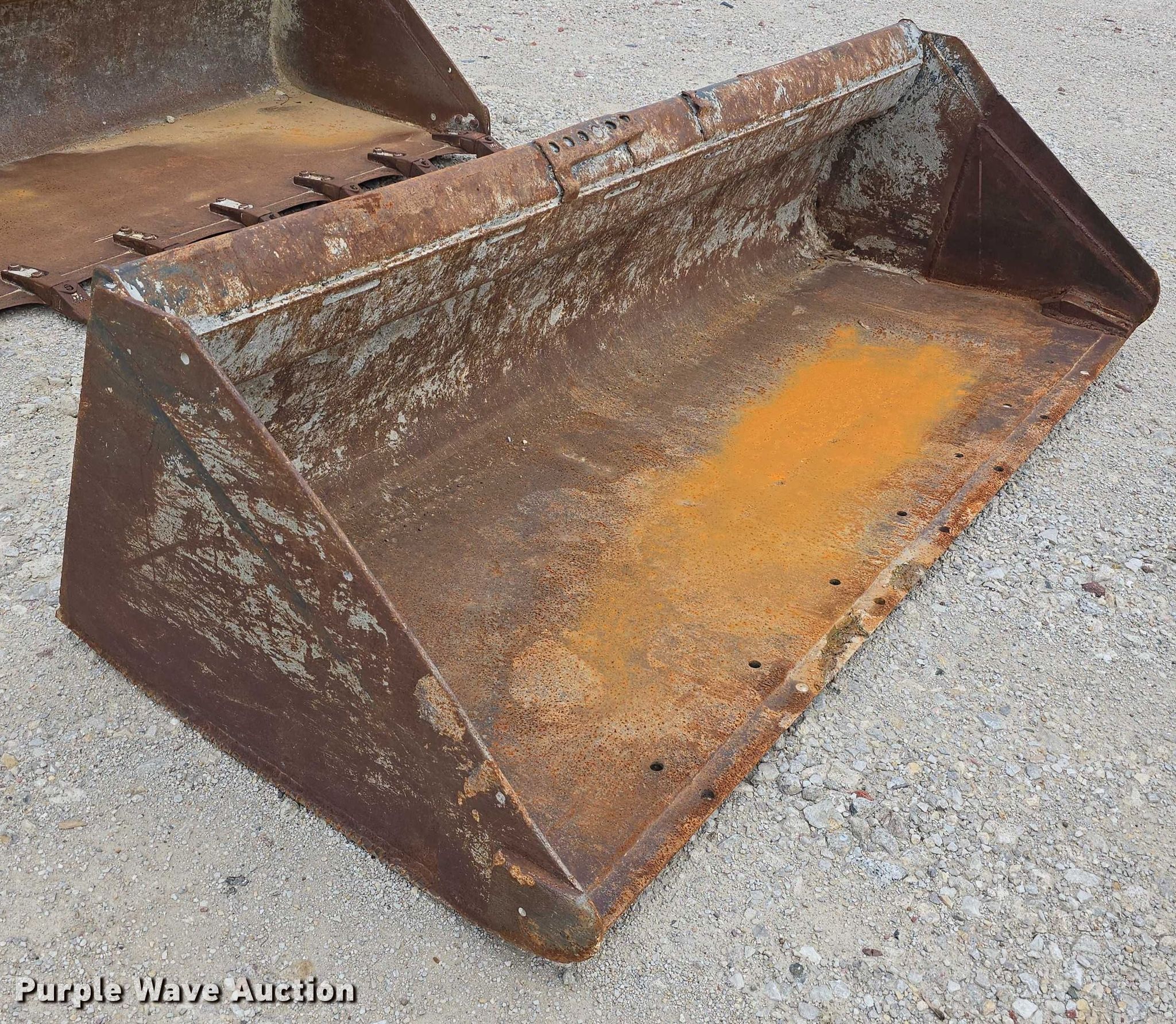 Purple Wave is selling a used Skid Steer Attach. in Iowa. This item is a 4 skid steer buckets with the following: Bucket, Caterpillar, Width: 79", Teeth: 9, Low profile, Bucket, Bobcat, Width: 80", Teeth: 8, Bucket, Bobcat, Width: 86", Cutting edge: Weld-on, Bucket, Bobcat, Width: 85", Cutting edge: Bolt-on
