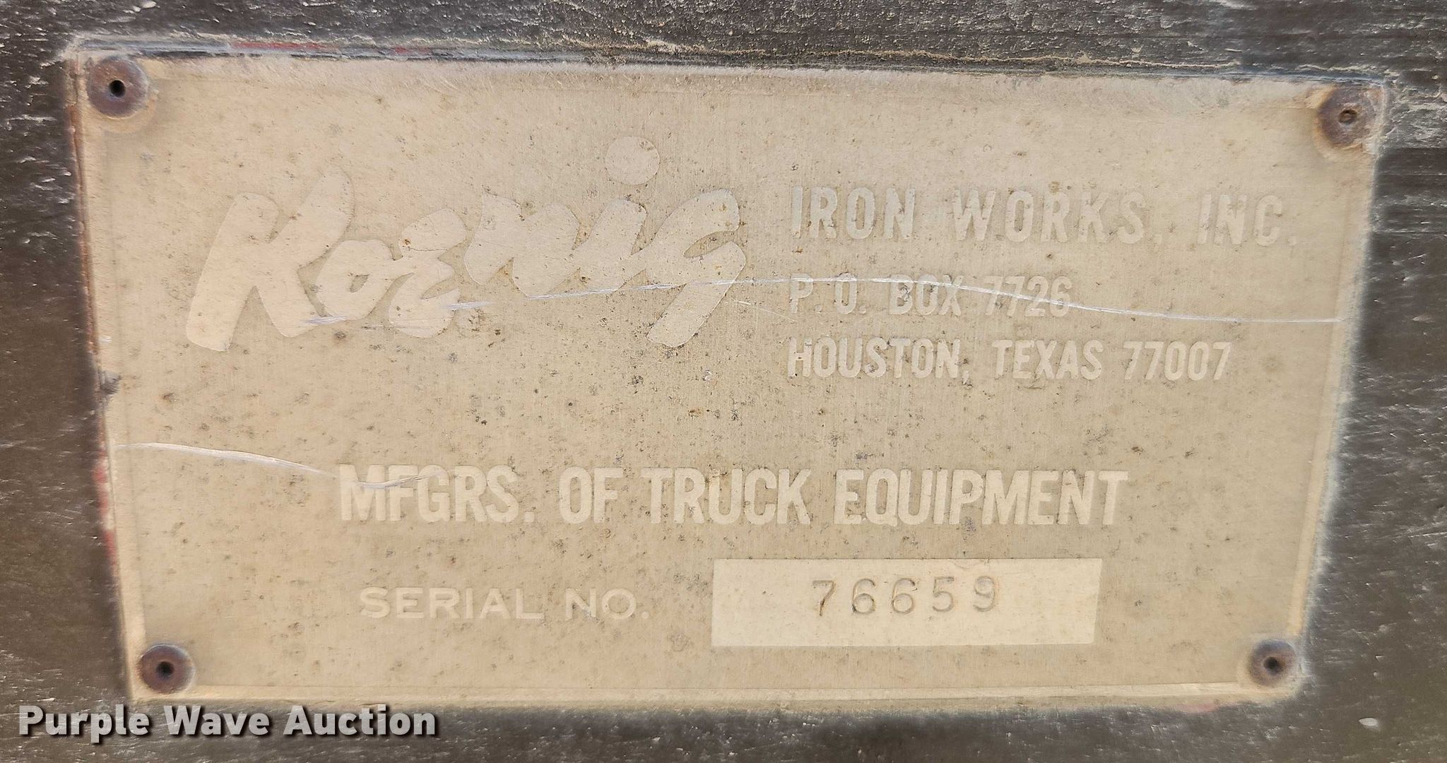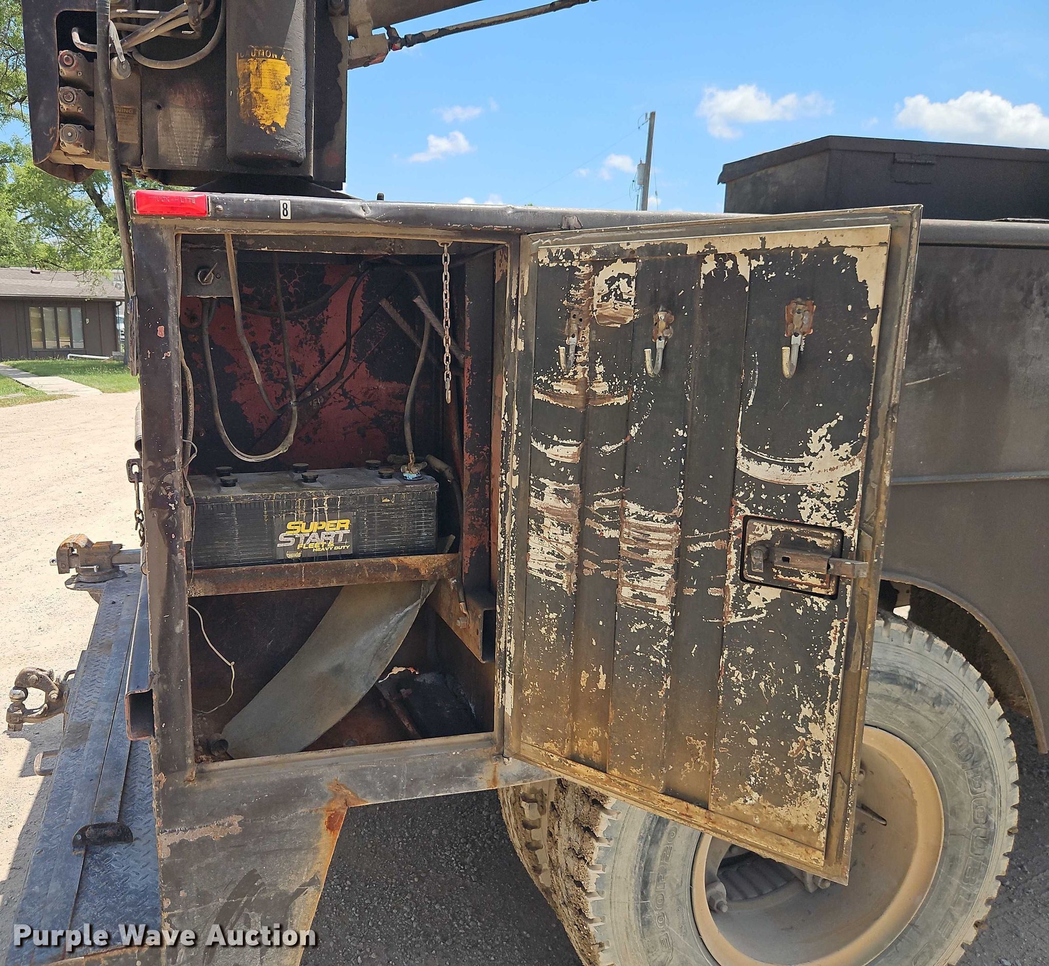 1985 Ford F700 utility / service truck. Miles: 241,540 on odometer, Hours: 7,504 on meter, VIN: 1FDNF70H7FVA17016. Engine Displacement: 6.1L, Cylinders: 8, Fuel type: Gas. Transmission Manual, Speed: 10, plus 2. Chassis Axles: Single, Suspension: Spring, Brakes: Hydraulic, GVWR: 24,500 lbs, Wheelbase: 153". Interior Heat. Features Bed Koenig, 12' L x 96" W, Torch bottle rack, Crane Auto Crane. Tires Size: 9.00R20. Notes Crane issues. Missouri title. Title distribution may be delayed up to 14 days from verification of funds. Great Plains Drilling, Inc.. Kansas City, MO 64145