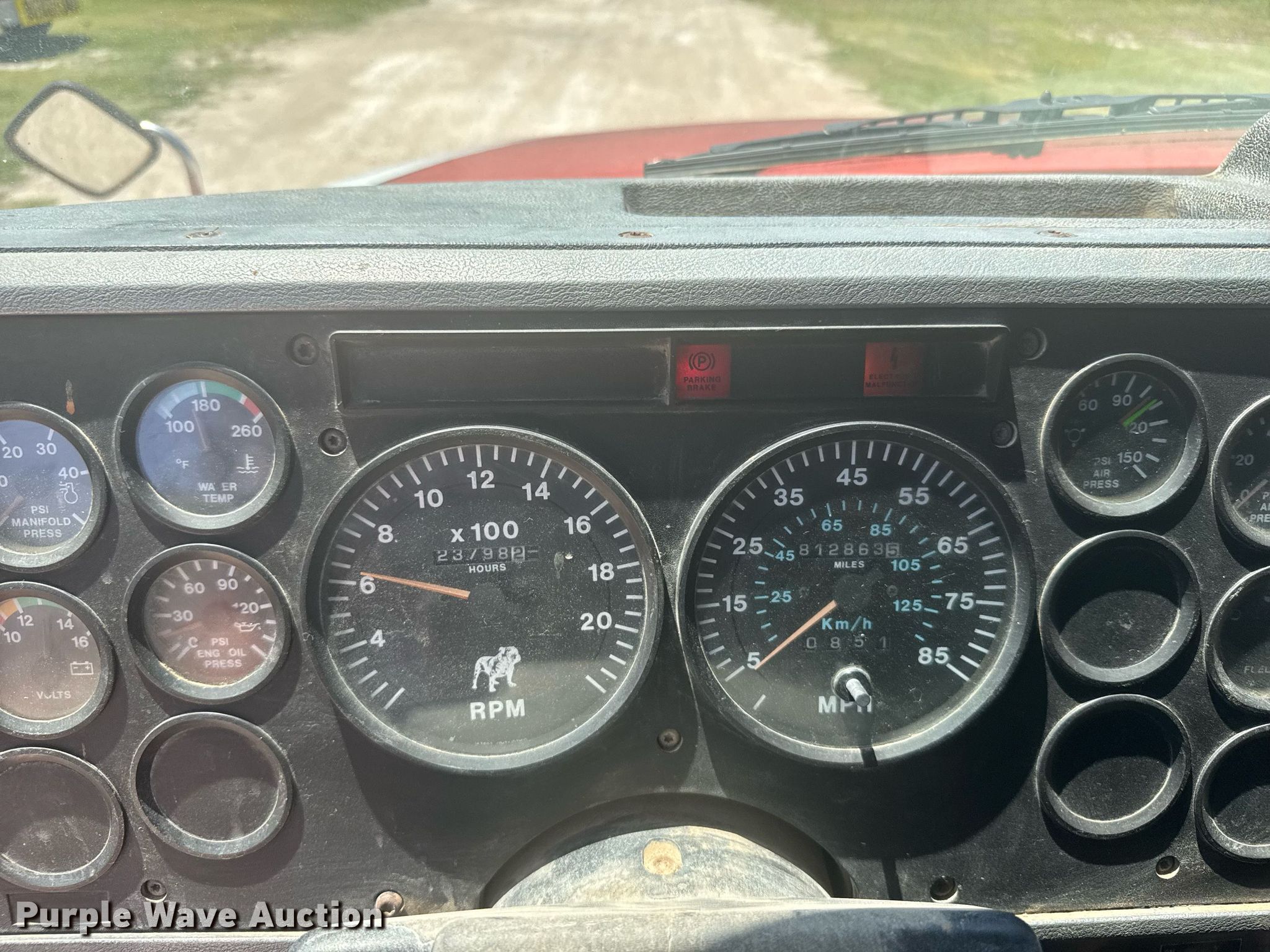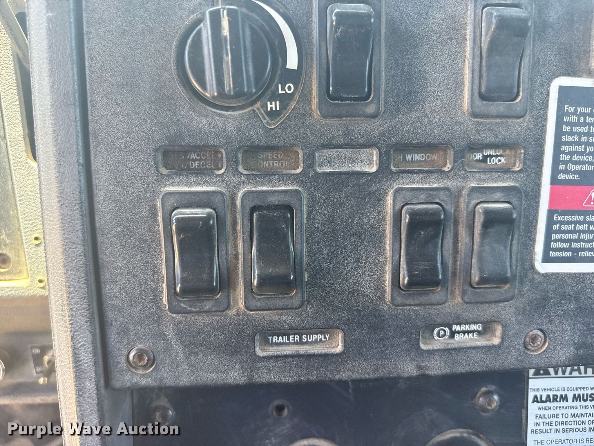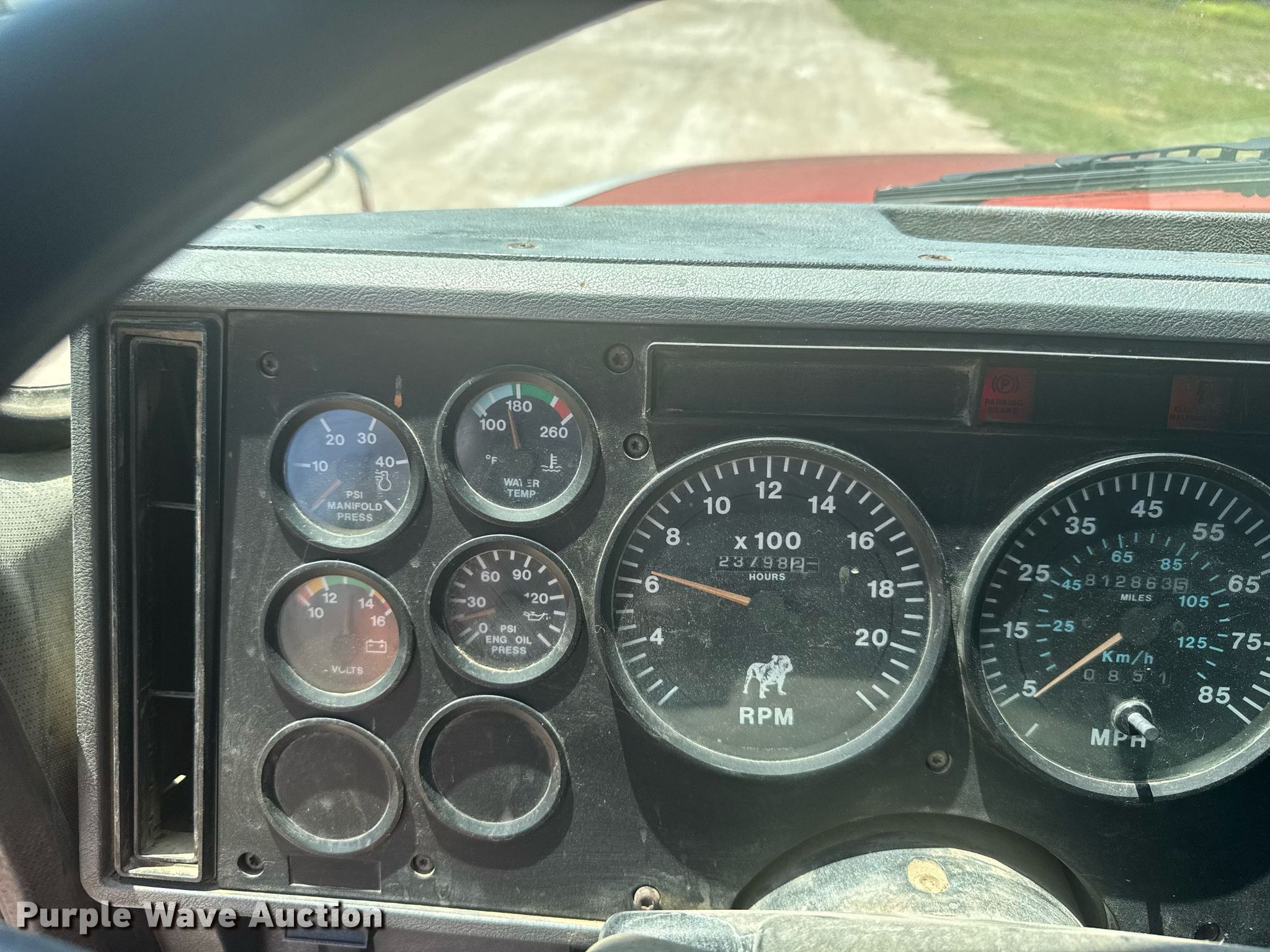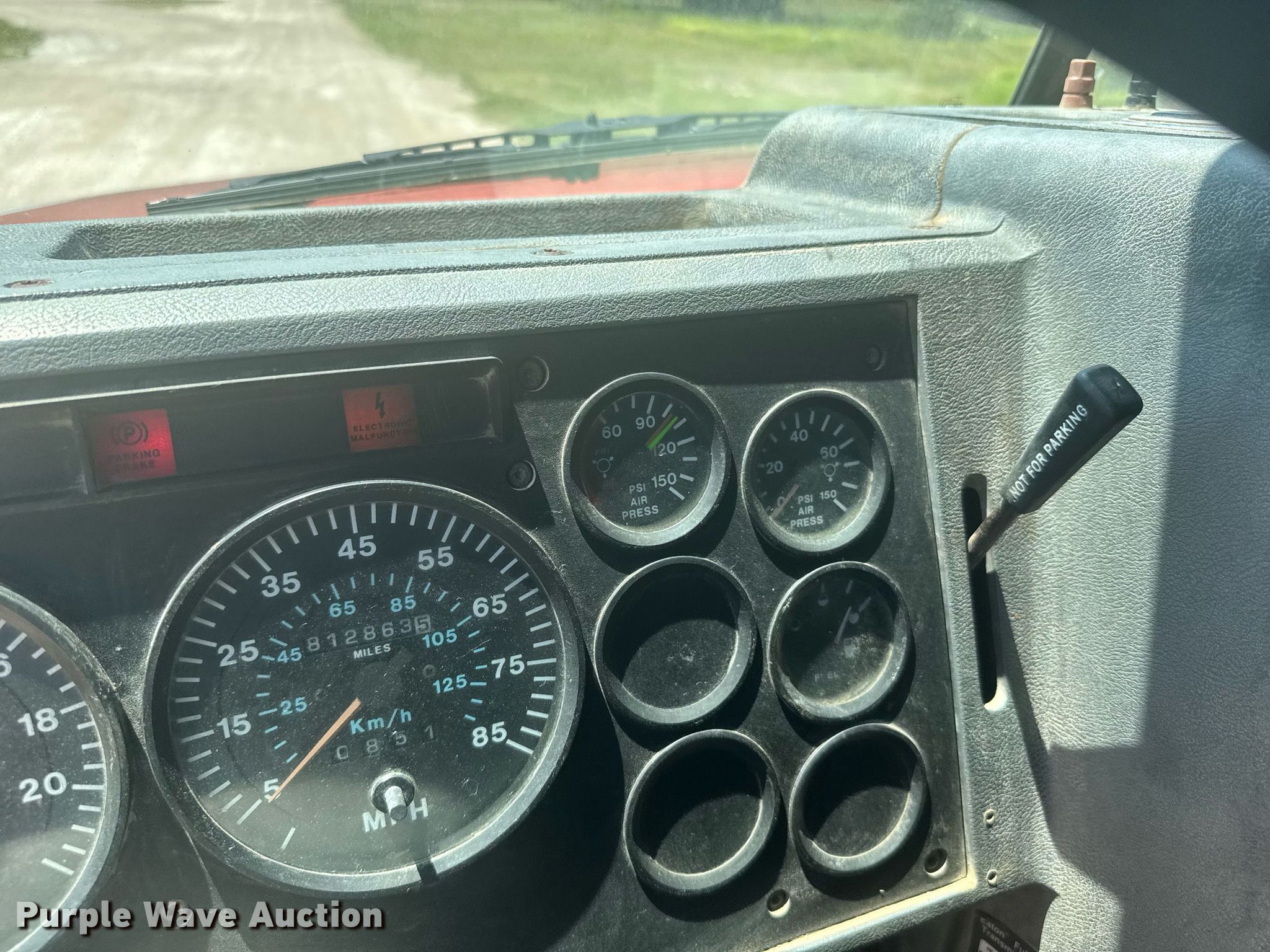 1998 Mack CH613 dump truck. Miles: 812,864 on odometer, Hours: 23,798 on meter, VIN: 1M1AA12Y1WW093031. Engine Mack E7-330/350, Serial: 8C3176, Displacement: 12.0L, Cylinders: 6, Fuel type: Diesel, HP: 330, Engine brake. Transmission Eaton Fuller, Manual, Speed: 10. Chassis Axles: Tandem, Differential lock: Inter-axle, Suspension: Air Dump valves, Brakes: Air, PTO. Interior AC, Heat, Heated mirrors, Power passenger window, Cruise control. Features Dump bed Ox Bodies, Inc., 15' L x 96" W, Side height: 46", Side board height: 8", Bed type: Steel, Roll tarp, Ram: Single, End gate: Air operated. Tires Front: 315/80R22.5, Rear: 11R22.5. Notes Dash warning indicator: ABS, Electronic malfunction. Kansas title. Title distribution may be delayed up to 14 days from verification of funds. Midwestern Contractors. Hill City, KS 00000