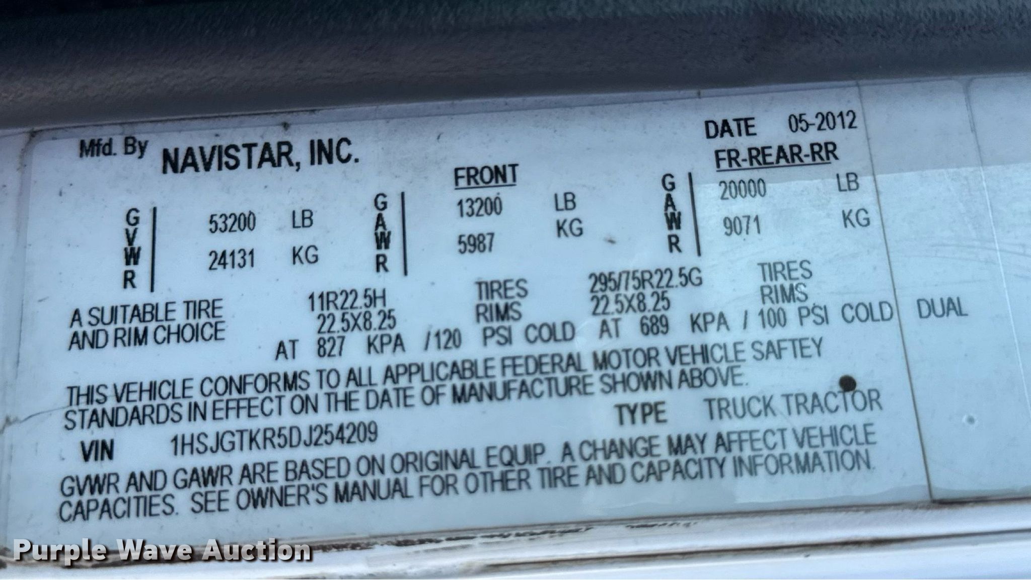 2013 Caterpillar CT660S semi truck. Miles: 286,833 on odometer, Hours: 3,902 on meter, VIN: 1HSJGTKR5DJ254209, Unit #: C-524. Engine Caterpillar CT13, Cylinders: 6, Fuel type: Diesel. Transmission Eaton Fuller 10 Speed, Manual. Chassis Axles: Tandem, Differential lock: Inter-axle, Full, Suspension: Air Dump valves, Brakes: Air, PTO, GVWR: 53,200 lbs. Interior AC, Heat, Heated mirrors, Power windows, Power locks, Cruise control, Air ride cab. Features Deck plate: Aluminum, Steel, Fifth wheel type: Air operated, Sliding, Fuel tank: Single. Tires Front: 275/80R24.5, Rear: 285/75R 24.5. Notes Dash warning indicator: Check engine, Dash warning indicator: Engine fault, Windshield chipped or cracked, Possible AC issues, may need charged, Drivers door mirror broken. New York title. Title distribution may be delayed up to 30 days from verification of funds. Jamaica, NY 11430