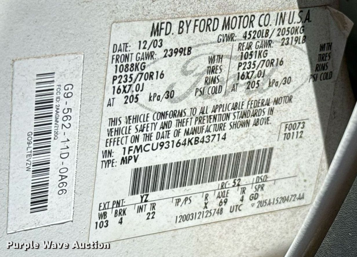 Purple Wave is selling a used Passenger Vehicle in Oklahoma. This item is a 2004 Ford Escape SUV with the following: Miles: 58,813 on odometer, VIN: 1FMCU93164KB43714
