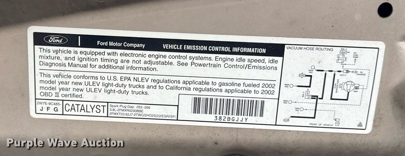 2002 Ford Windstar LX van. Miles: 119,692 on odometer, VIN: 2FMZA51452BB26595. Engine Displacement: 3.8L V6 OHV, Cylinders: 6, Fuel type: Gas. Transmission Automatic. Interior AC, Heat, Power windows, Power locks, Cruise control. Tires Size: 215/75R15. Notes Dash warning indicator: Check engine, ABS, Brake. Kansas title. Title distribution may be delayed up to 14 days from verification of funds. Kansas City Kansas Community College. Kansas City, KS 66102