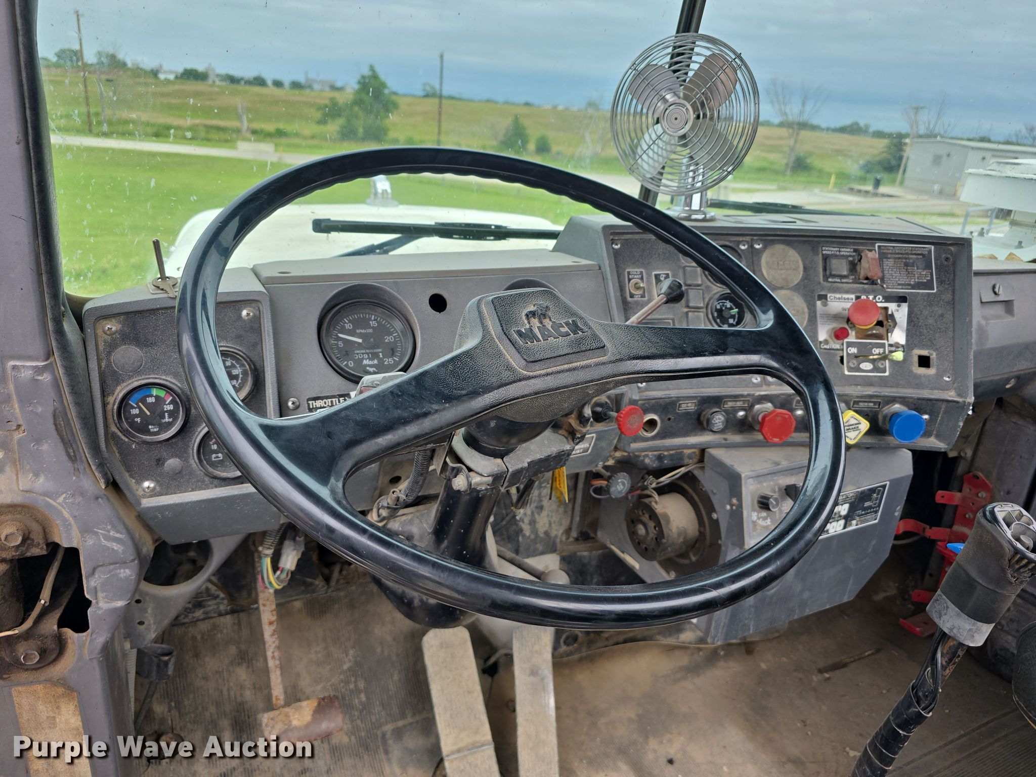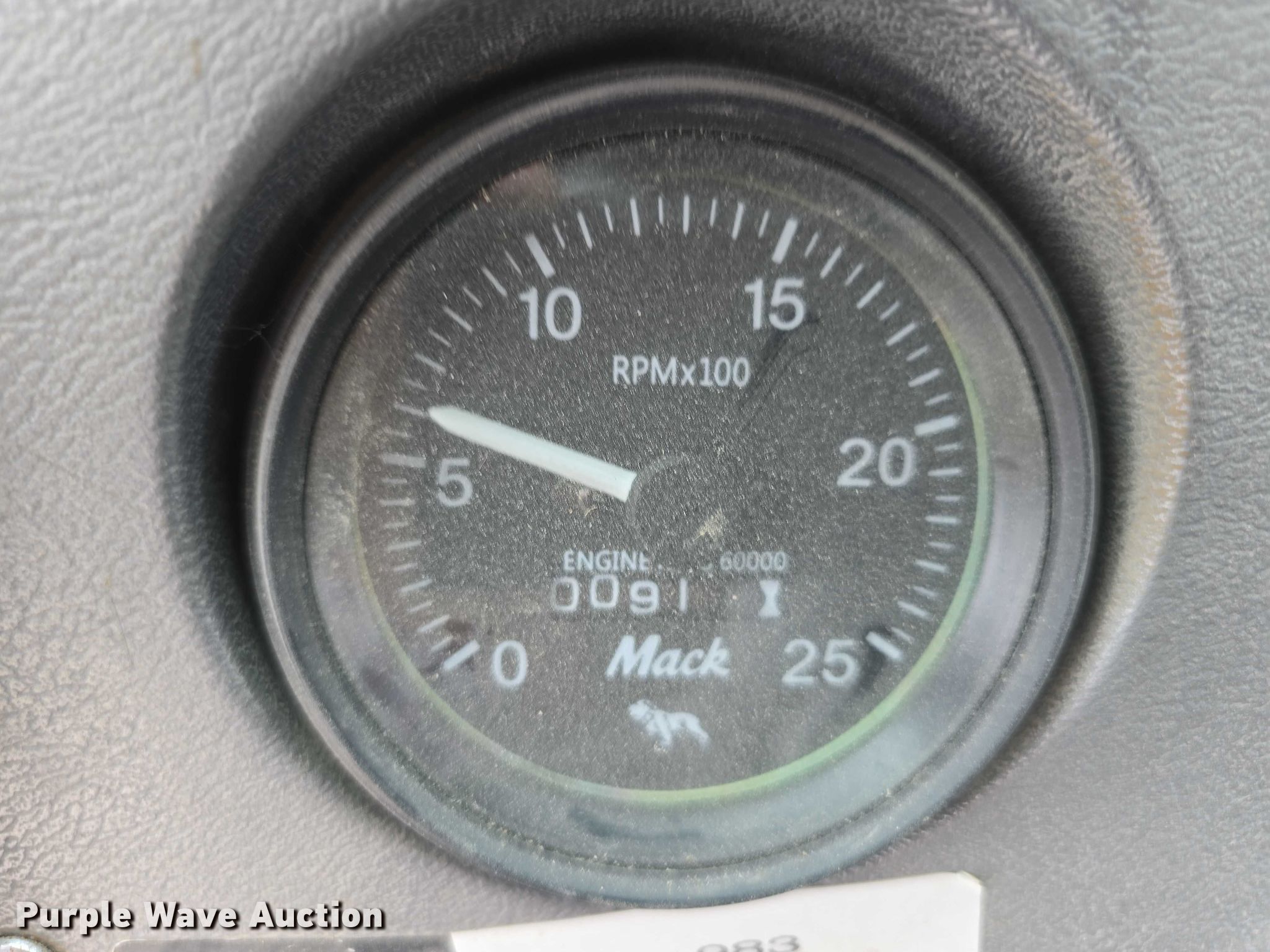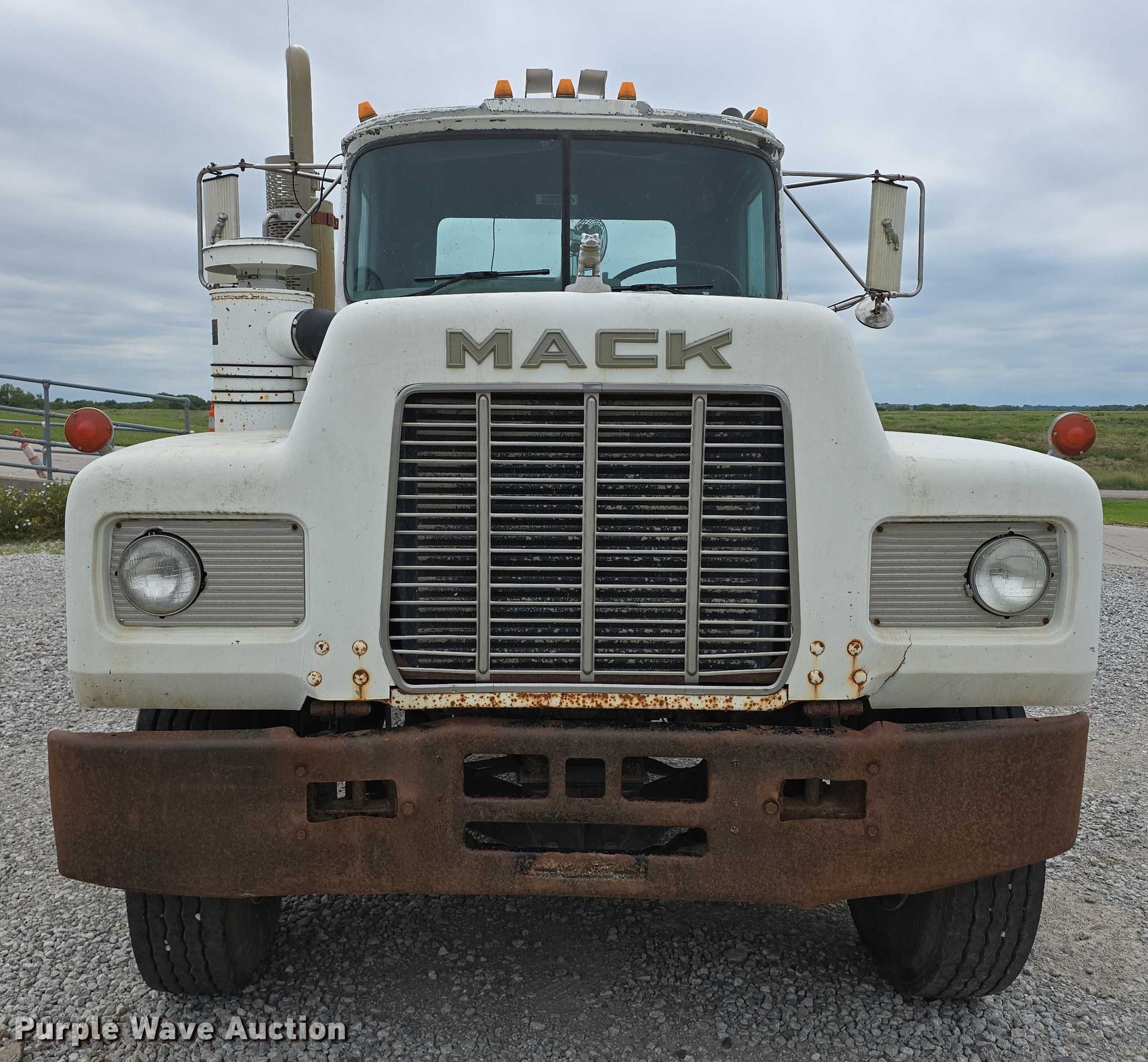 1990 Mack RD690S semi truck. Miles: 39,092 on odometer, Hours: 91 on meter, Actual hours unknown, VIN: 1M2P198Y0LM006870. Engine Mack, Cylinders: 6, Fuel type: Diesel. Transmission Mack Maxitorque, Manual, Speed: 6. Chassis Axles: Tandem, Suspension: Camelback, Brakes: Air, PTO, Wet kit. Interior Heat, Heated mirrors. Features Deck plate: Aluminum, Fifth wheel type: Air operated, Sliding, Fuel tank: Single. Tires Size: 11R22.5. Nebraska title. Title distribution may be delayed up to 30 days from verification of funds. LTU Solid Waste. Lincoln, NE 68504