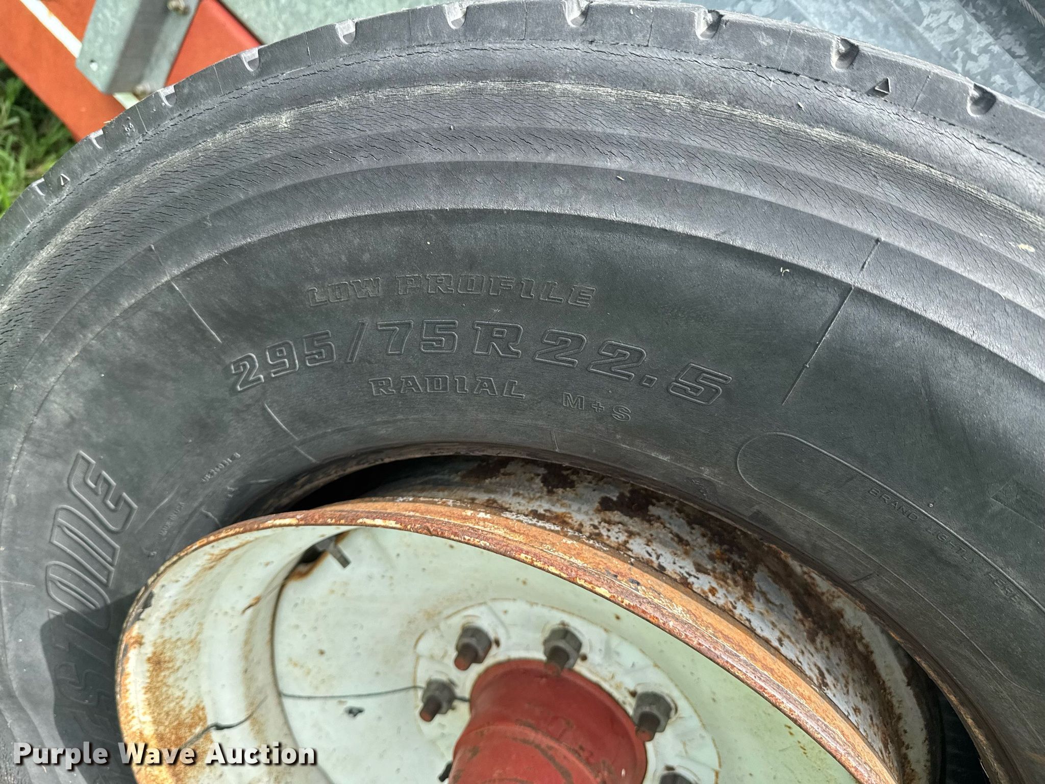 AGCO 3722 manure spreader. Serial: 261730. Features 12' 10" L x 72" W, Side height: 26", Chain driven floor, Rear beaters: Horizontal Quantity: 2, Rear applicator: Knife Width: 66", PTO: 540. Tires Size: 295/75R22.5. Connors State College. Warner, OK 74469