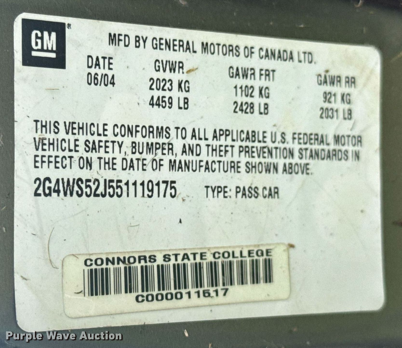 Purple Wave is selling a used Passenger Vehicle in Oklahoma. This item is a 2005 Buick Century with the following: Miles: Unknown, VIN: 2G4WS52J551119175