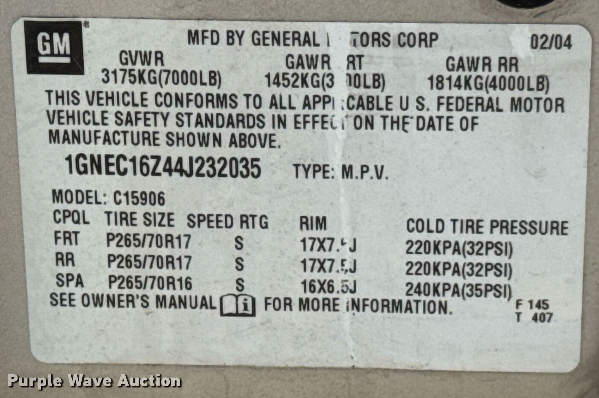 Purple Wave is selling a used Passenger Vehicle in Oklahoma. This item is a 2004 Chevrolet Suburban 1500 SUV with the following: Miles: 181,284 on odometer, VIN: 1GNEC16Z44J232035