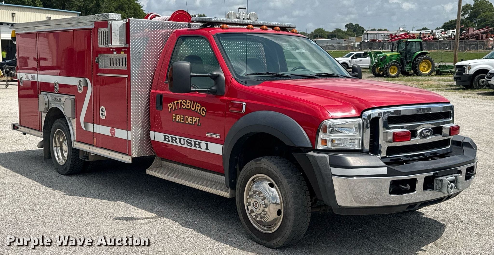 2006 Ford F550 pumper fire truck has sold in Pittsburg, Kansas for $31350. Item DU9376 sold on August 19th, 2025.