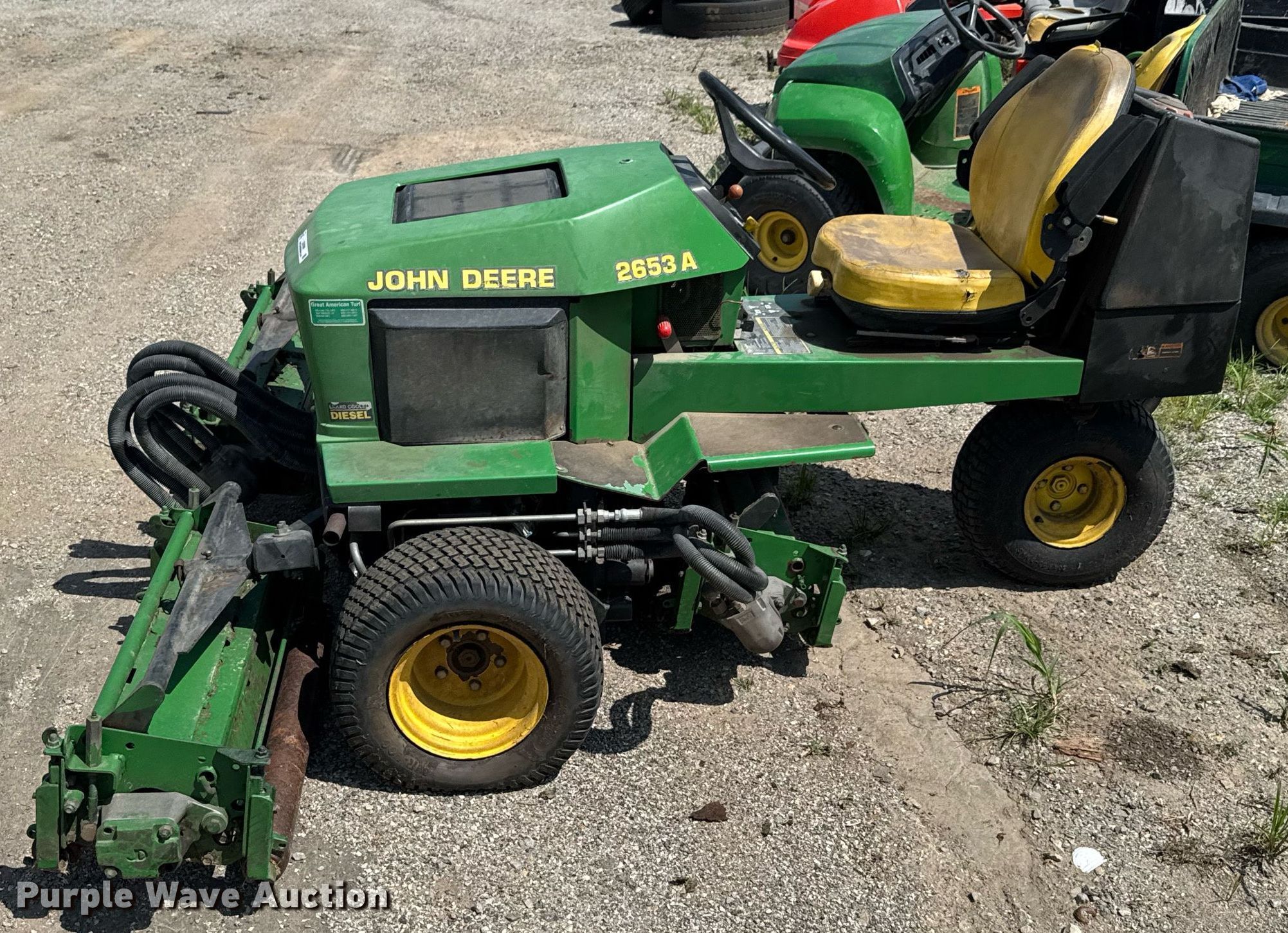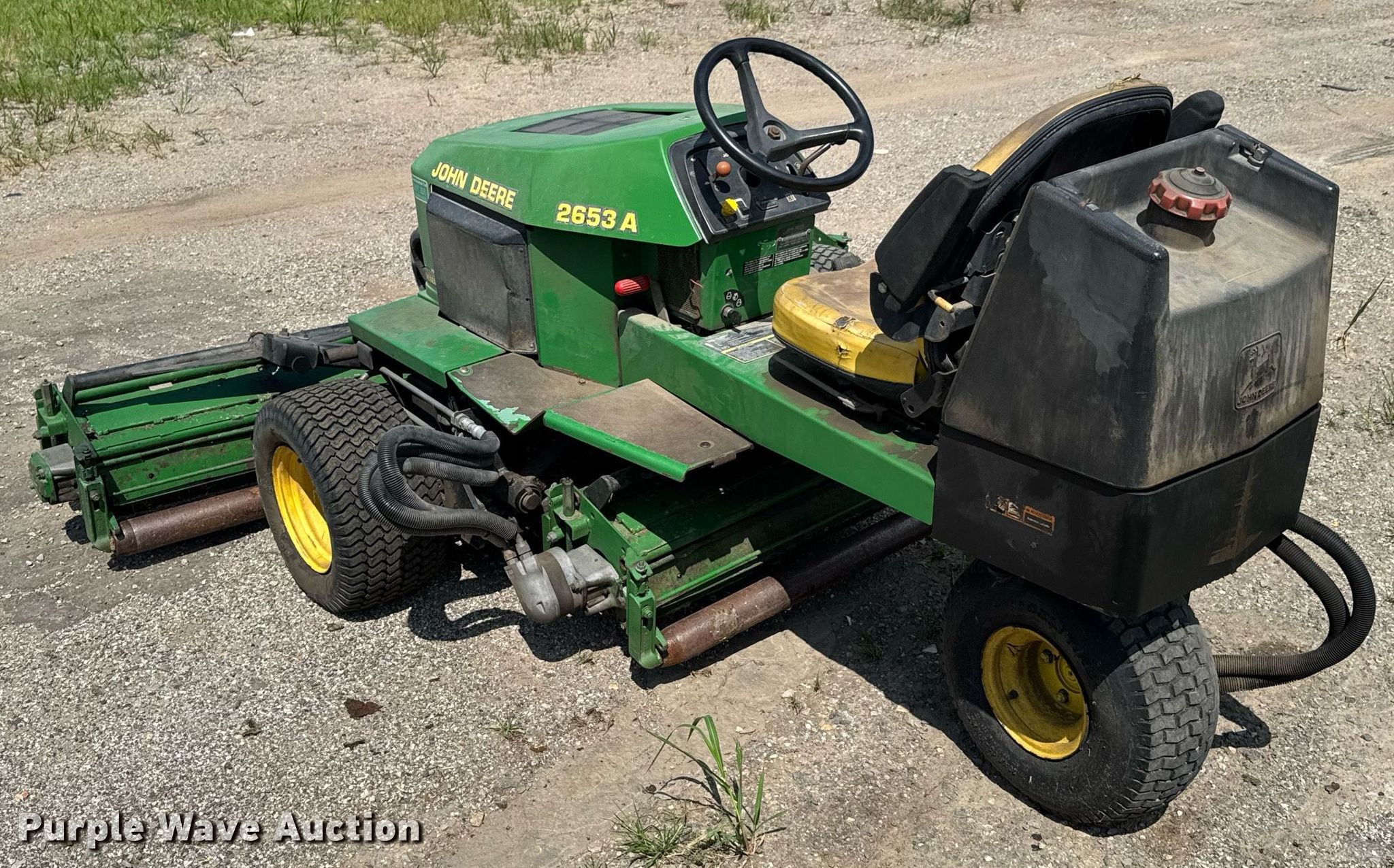 Purple Wave is selling a used Commercial Turf Mower in Kansas. This item is a 2000 John Deere 2653A reel mower with the following: Cutting width: 84", Serial: TC2653D081290