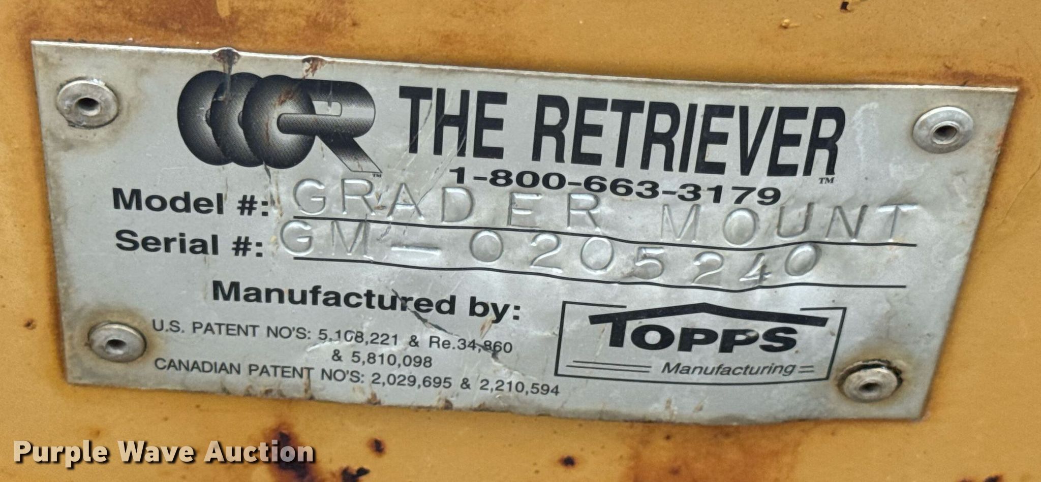 Purple Wave is selling a used Motor Grader Attach. in Missouri. This item is a Topps motor grader reclaimer with the following: Serial: GM-0205240