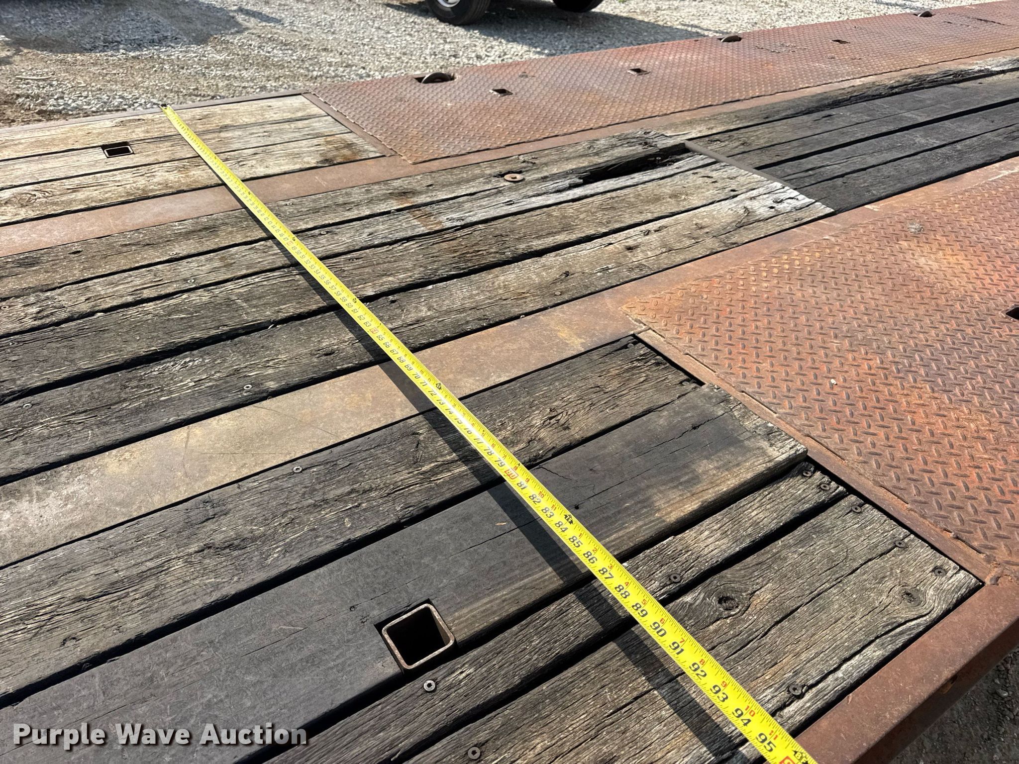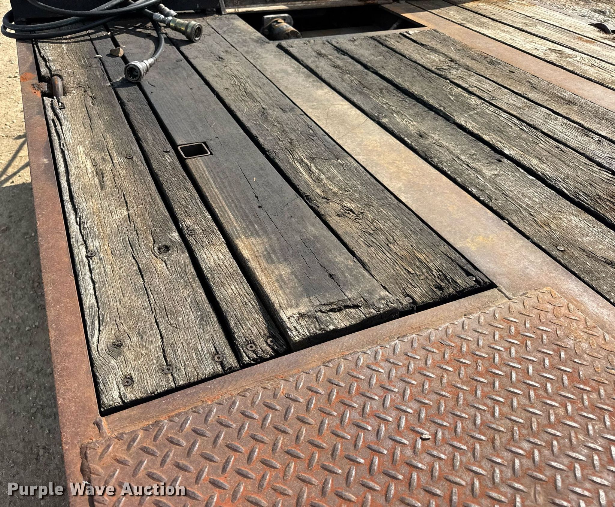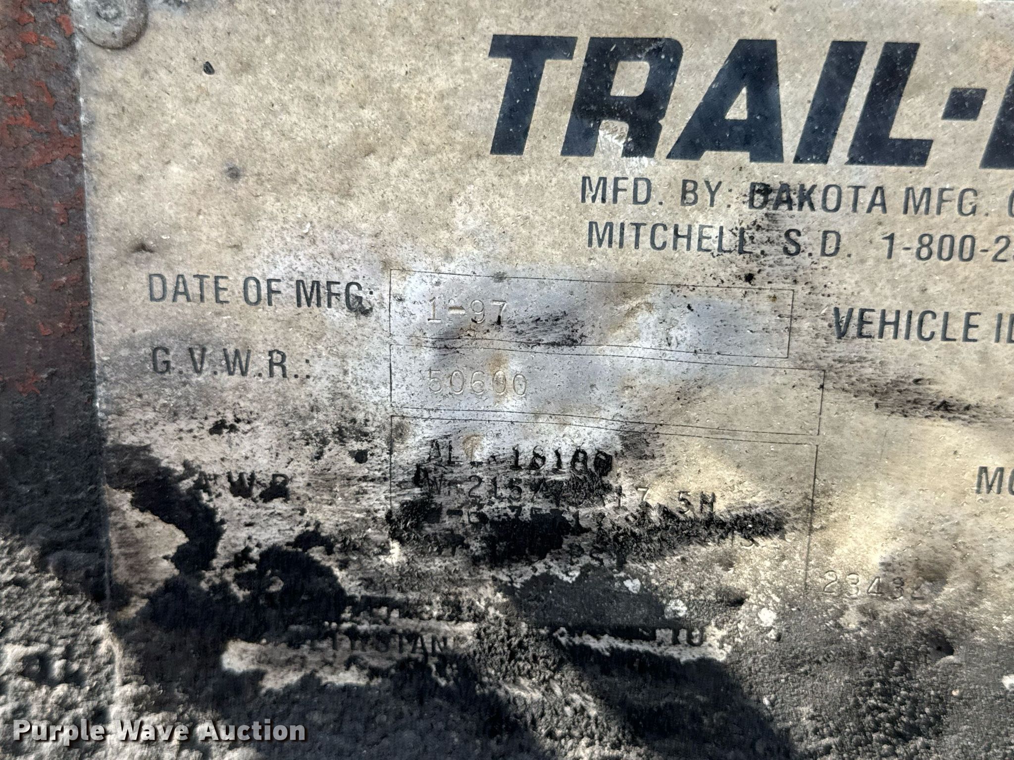 1997 Dakota PDLX20TC31 tilt deck equipment trailer. VIN: 1DA12TSN2VM012837, Unit #: G8334. Dimensions Overall Length: 36' 10", Width: 96", Deck Length: 30' 10", Width: 96", Hydraulic tail length: 16". Features Deck type: Steel, Wood, Outriggers: Swing-out Board size: 6", Winch. Chassis Hitch: Pintle, Landing gear: Single, Suspension: Spring, Brakes: Air, Axles: Tandem, GVWR: 50,600 lbs. Tires Steel wheels, Size: 215/75R17.5. Notes Deck board damaged, Non-operational landing gear, Unknown operating condition. Missouri title. Title distribution may be delayed up to 14 days from verification of funds. Missouri Department of Transportation. New Bloomfield, MO 65063