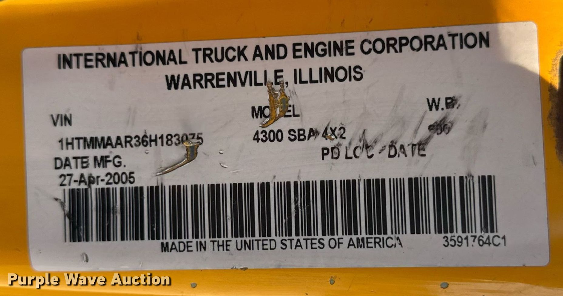 Purple Wave is selling a used Bucket Truck in Missouri. This item is a 2006 International 4300 forestry bucket truck with the following: Miles: 135,072 on odometer, Hours: 8,548 on meter, VIN: 1HTMMAAR36H183075, Unit #: G9069