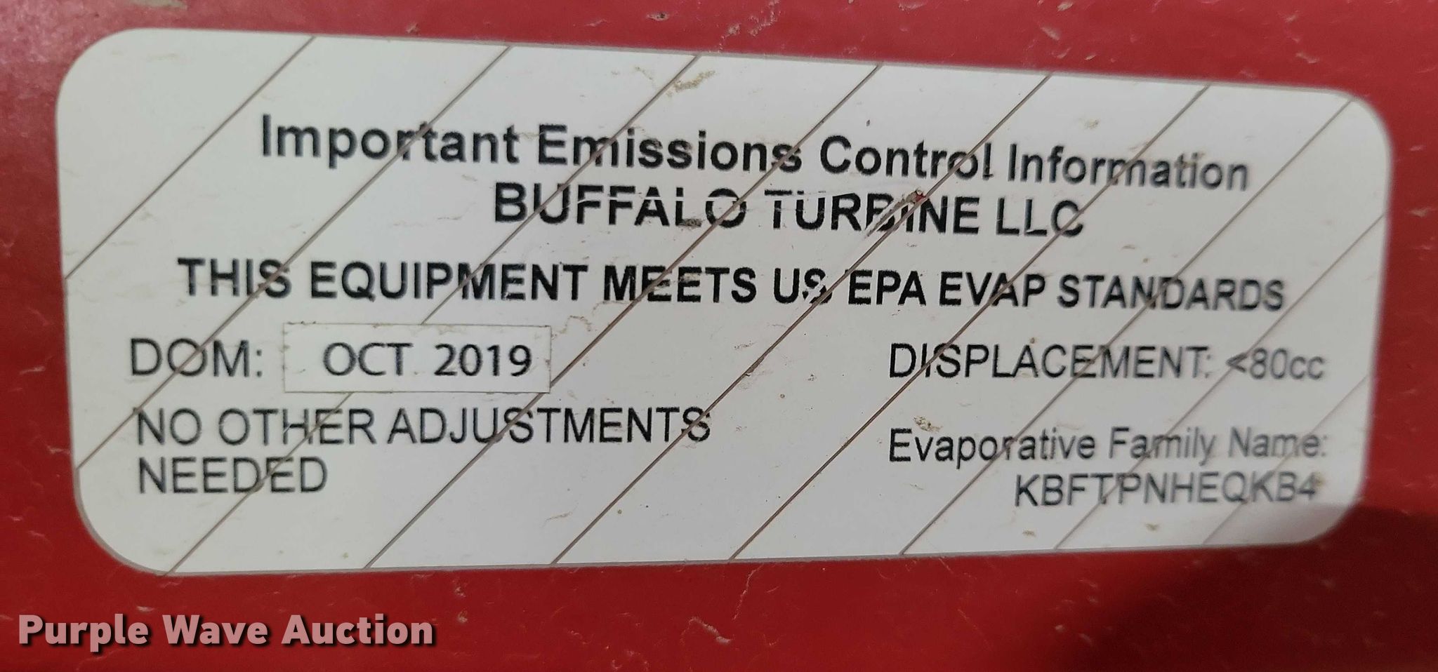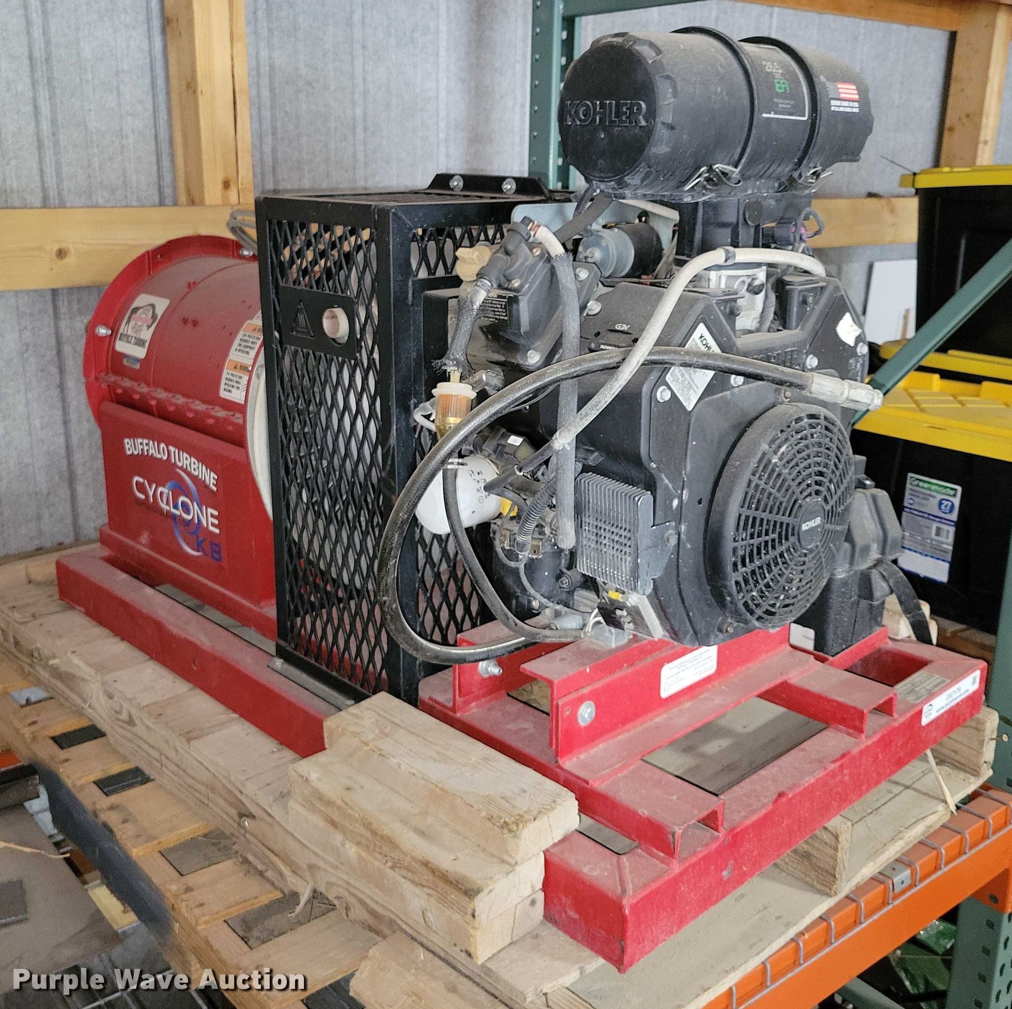 Purple Wave is selling a used Portable Heater or Fan in Iowa. This item is a Buffalo Turbine BT-CKB5FFI fan with the following: Kohler ECH749, Serial: 4826104361, Displacement: 747 cc, Cylinders: 2, Fuel type: Gas, HP: 26.5
