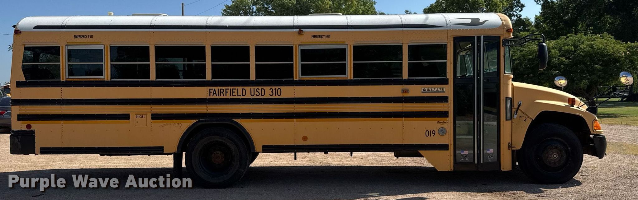 Purple Wave is selling a used Bus in Kansas. This item is a 2008 Blue Bird BB Conventional school bus with the following: Miles: 153,016 on odometer, Hours: 5,901 on meter, VIN: 1BAKCCKH88F247063, Unit #: 019