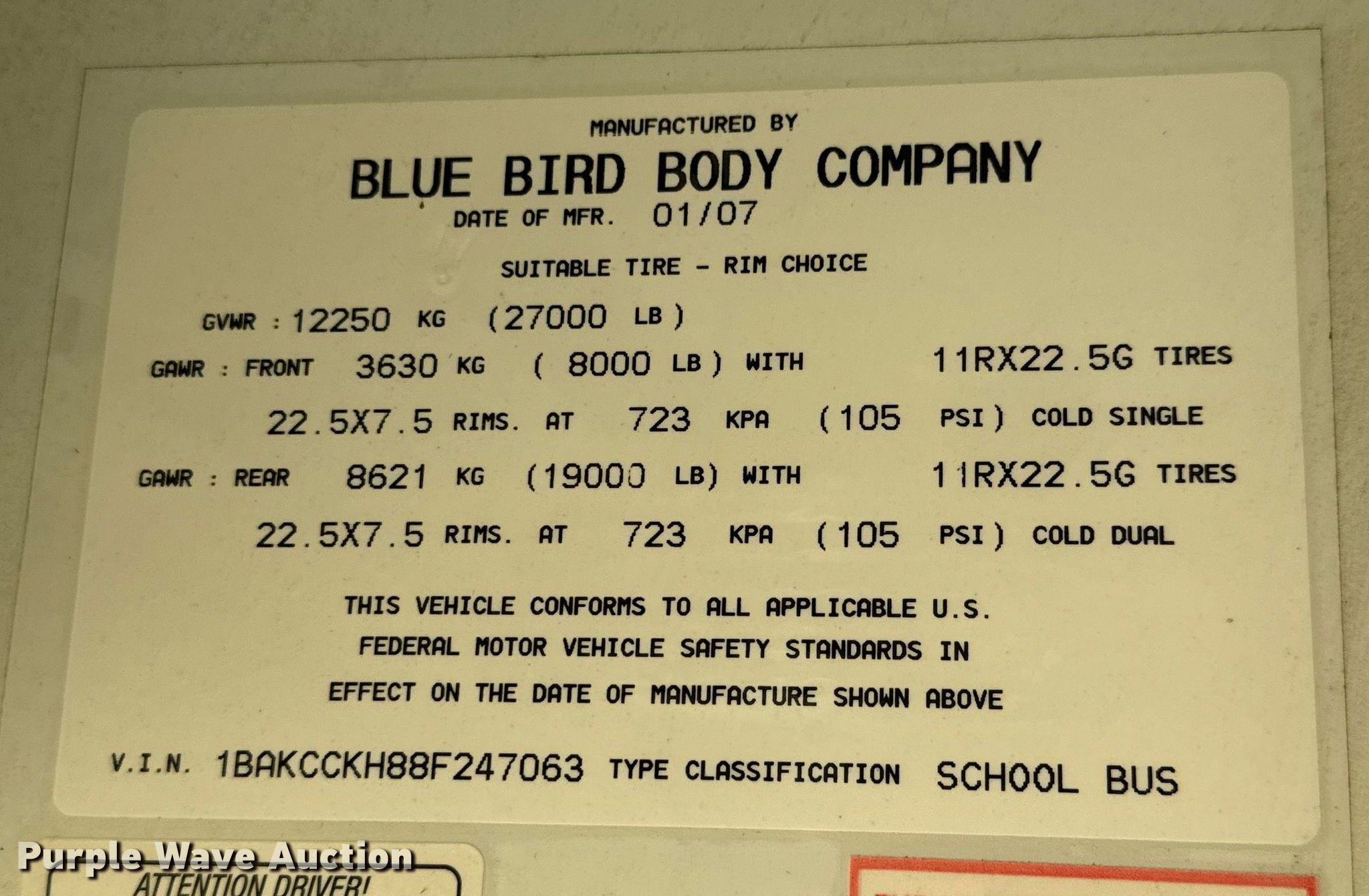• VIN: 1BAKCCKH88F247063